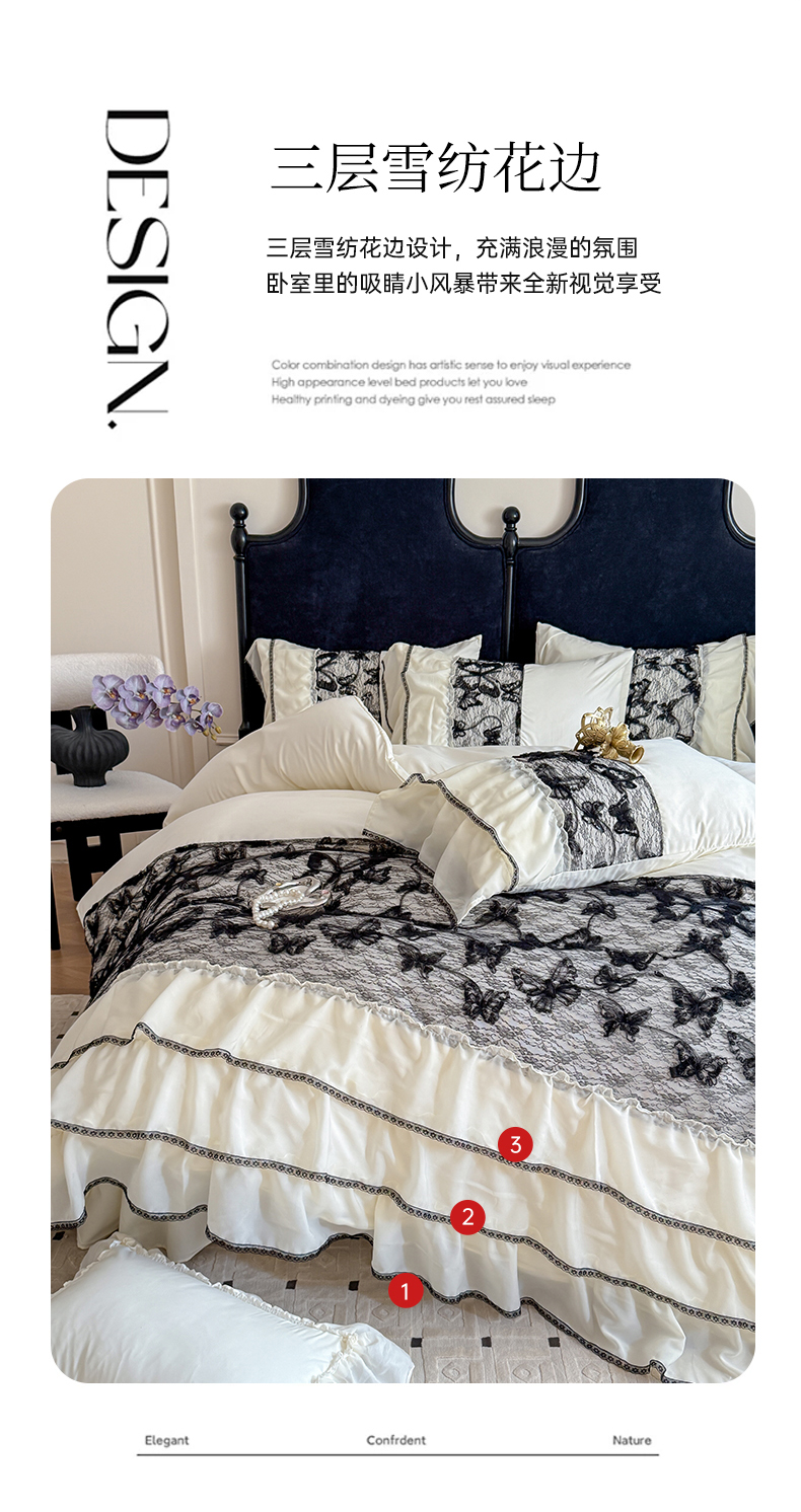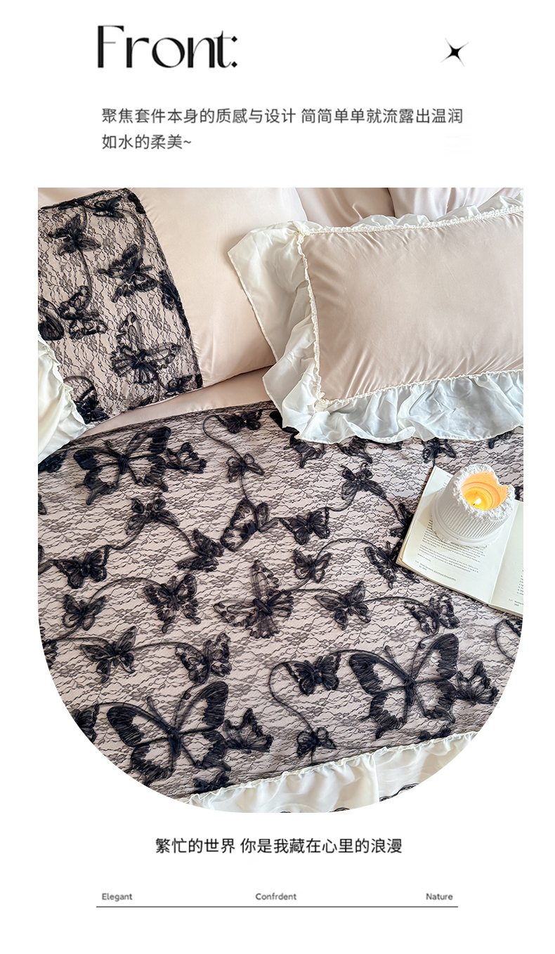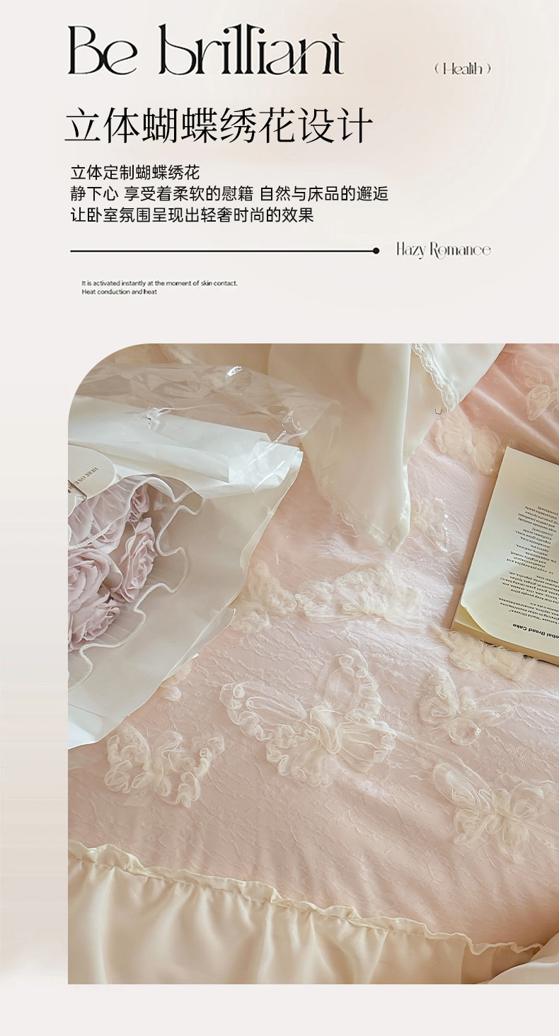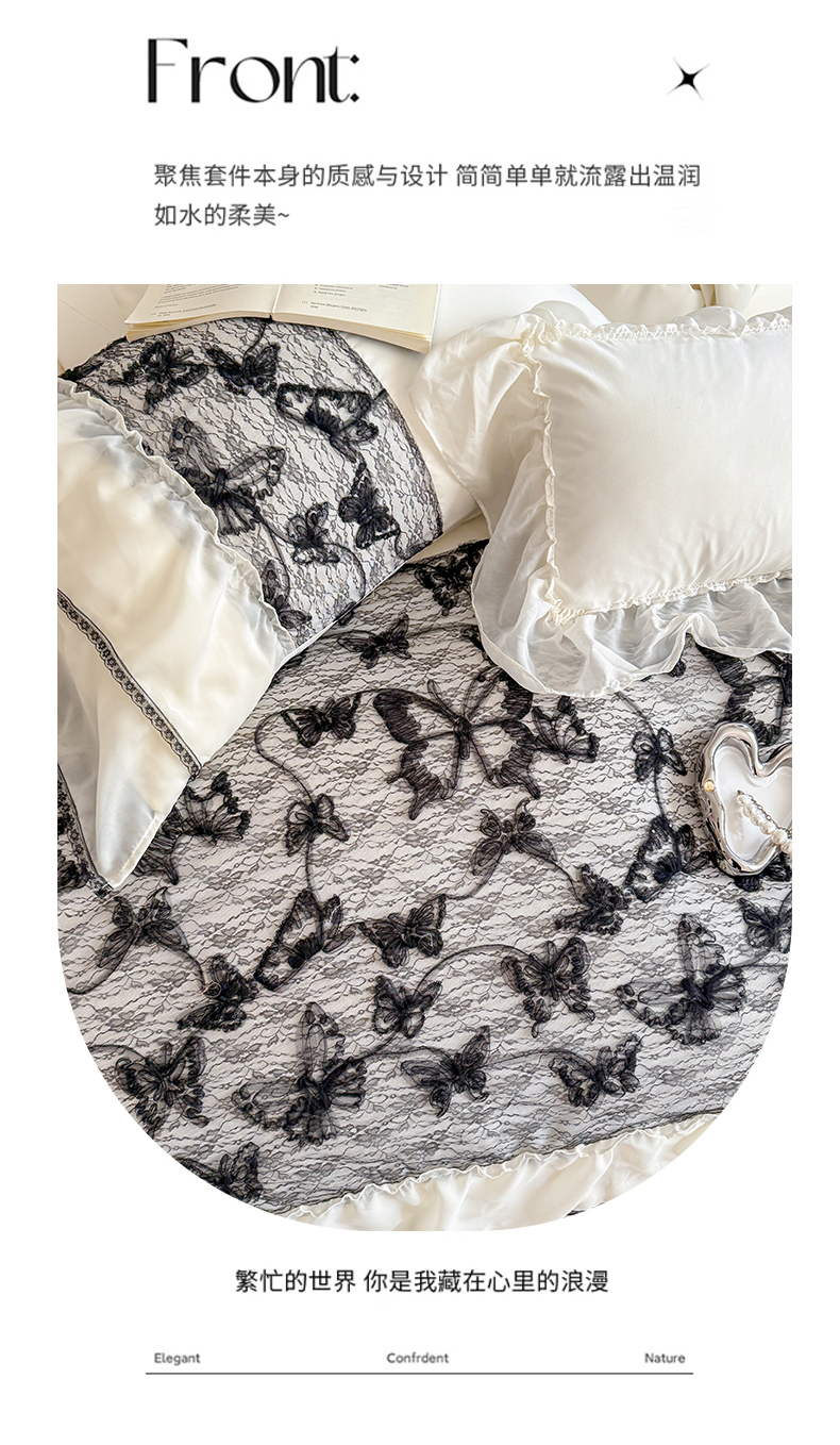 商品名称:(总)吾欢心2025新款蝴蝶梦立体定制蝴蝶加三层雪纺花边系列四件套