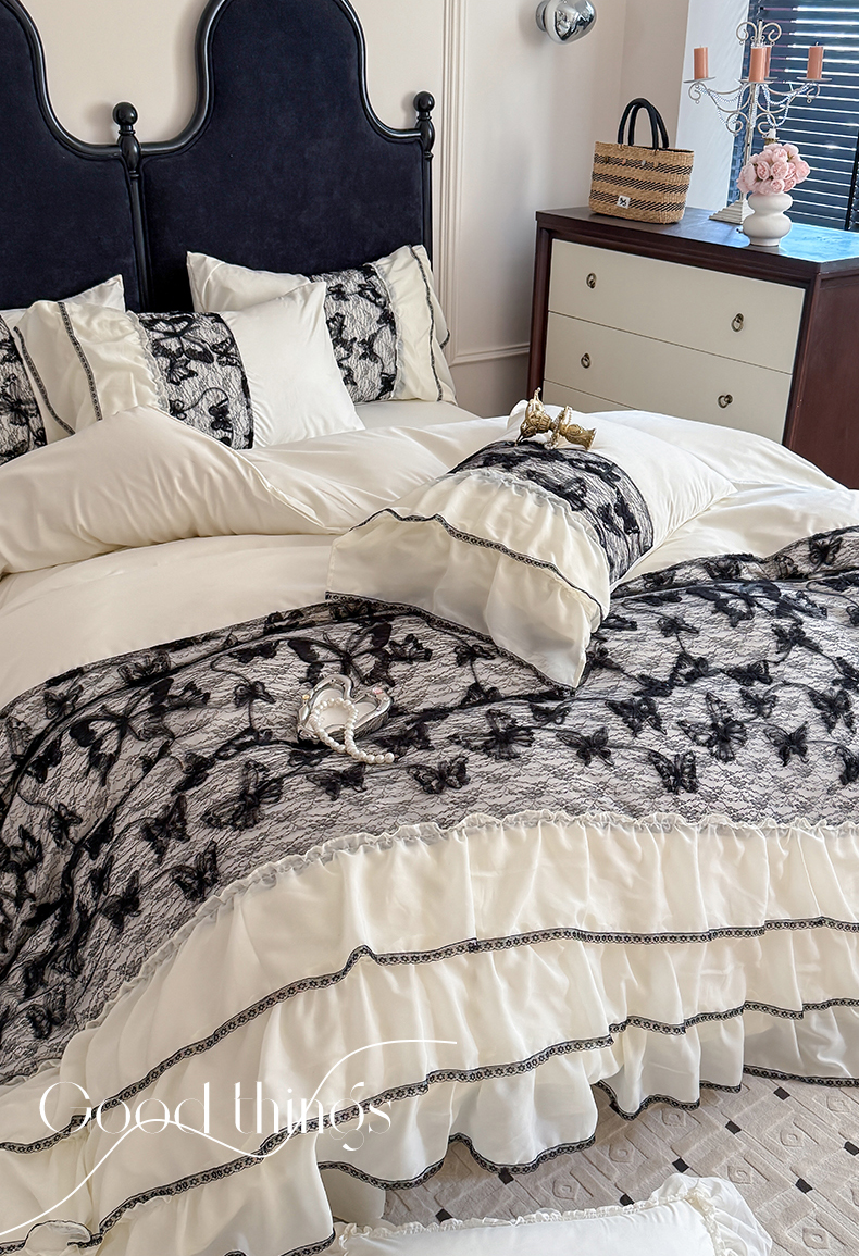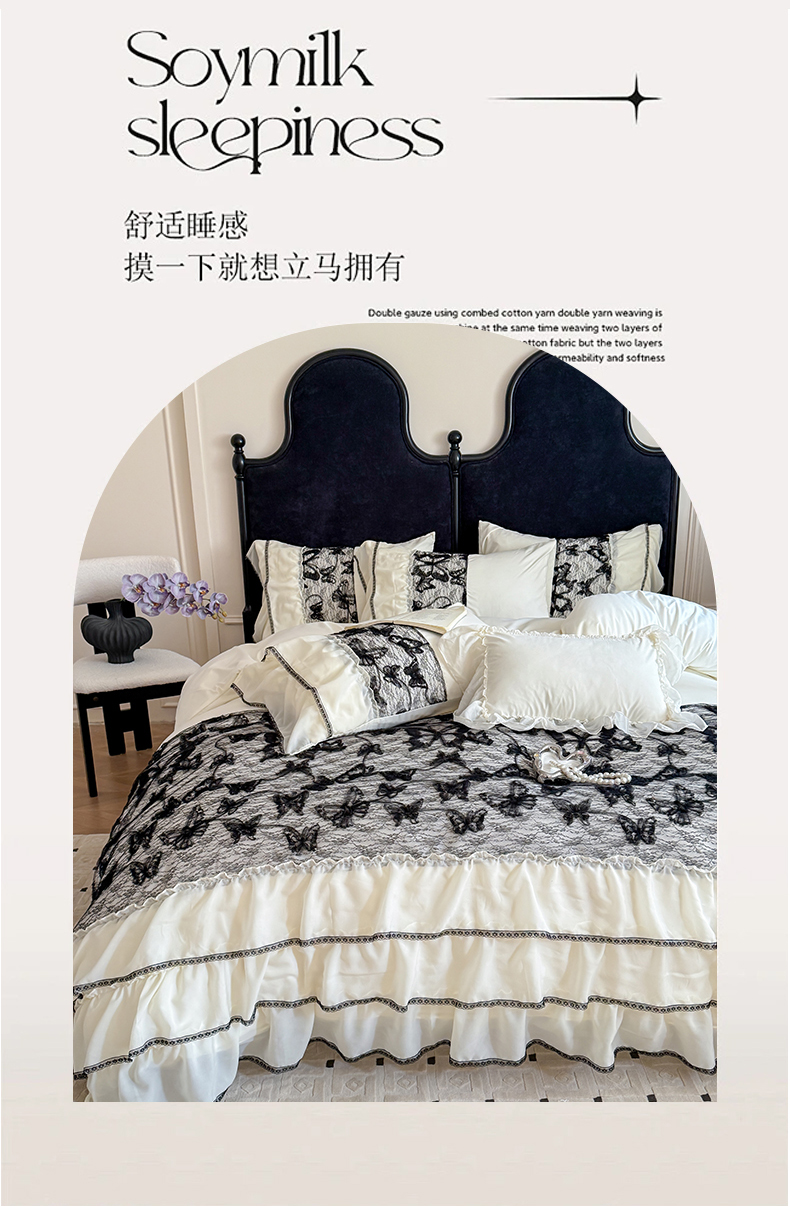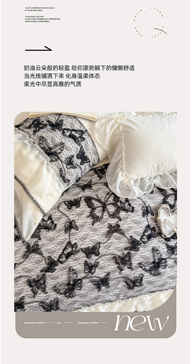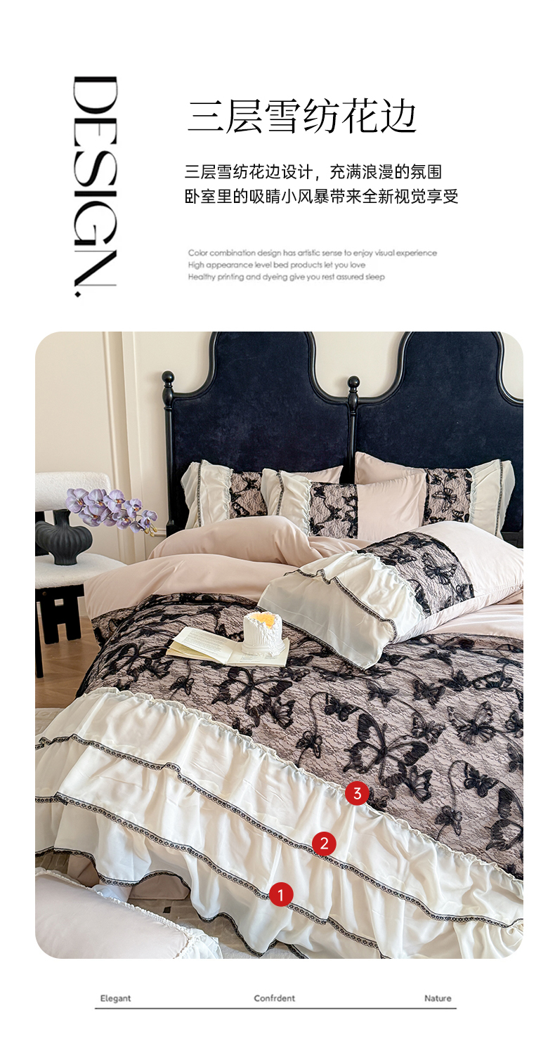商品名称:(总)吾欢心2025新款蝴蝶梦立体定制蝴蝶加三层雪纺花边系列四件套