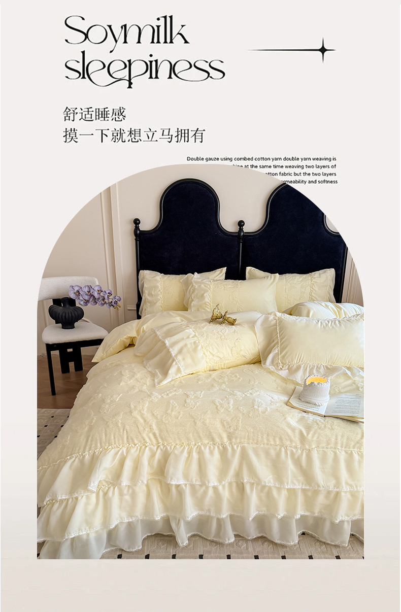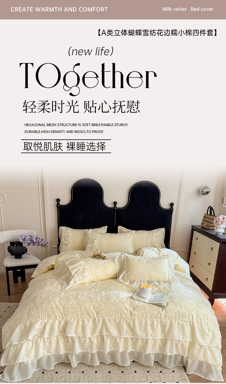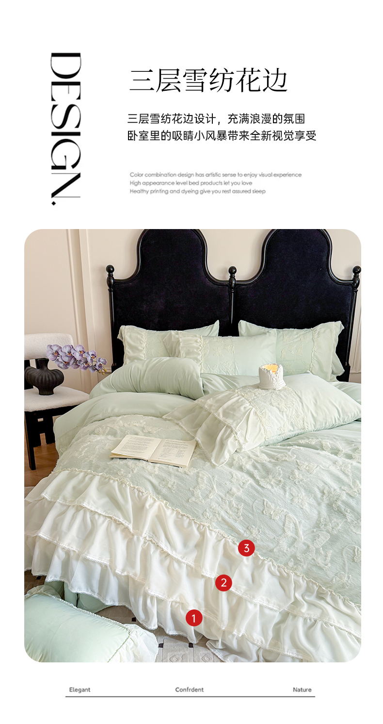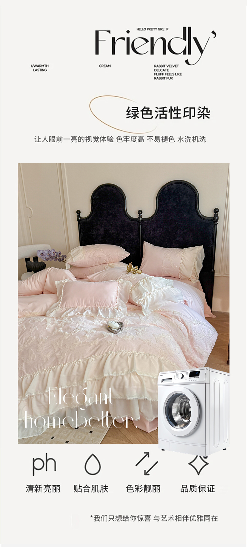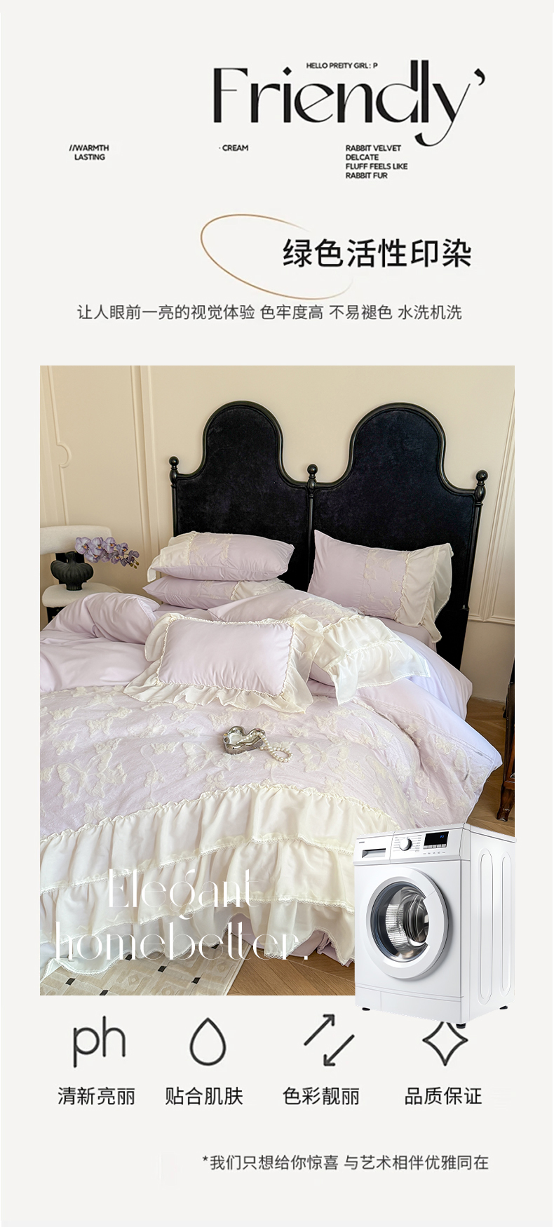 (总)吾欢心 2025秋冬新款加厚雕花绒婴儿绒安娜贝尔系列法式双层花边四件套,安娜贝尔白,安娜贝尔粉,安娜贝尔咖,安娜贝尔蓝,安娜贝尔绿,安娜贝尔紫