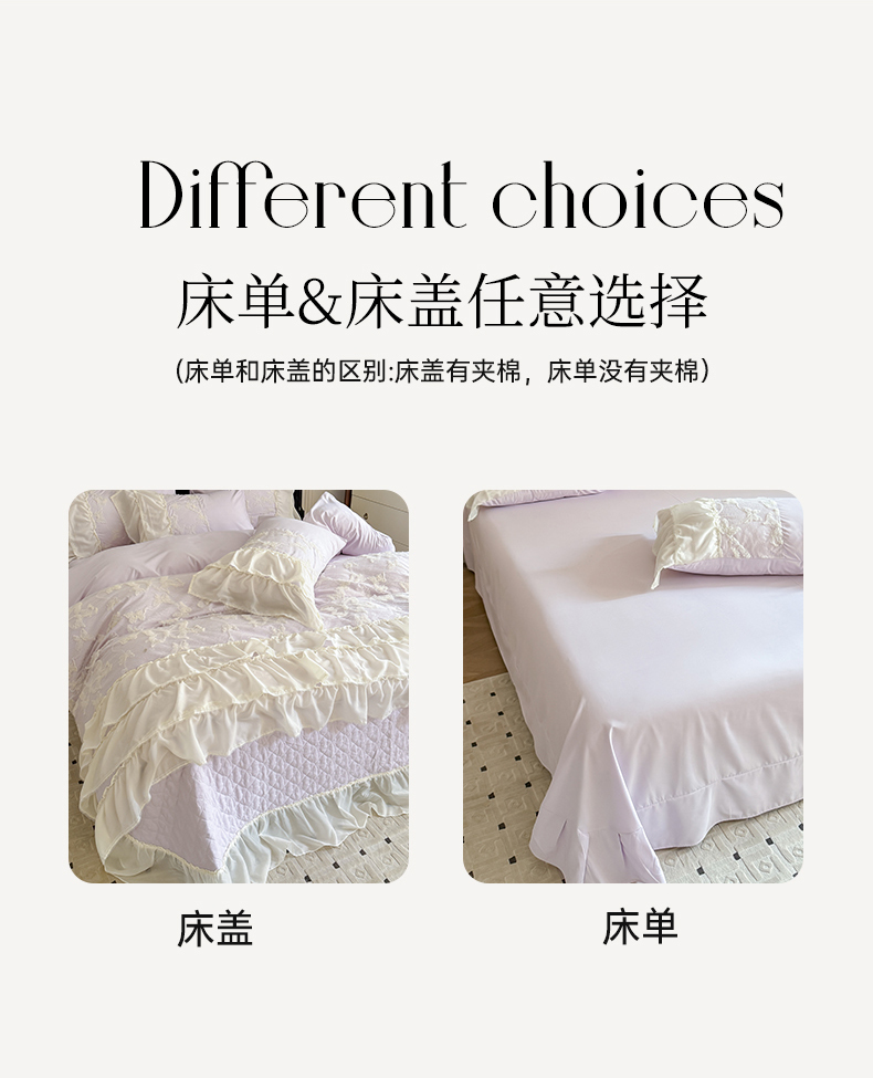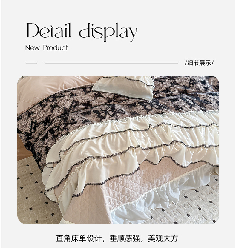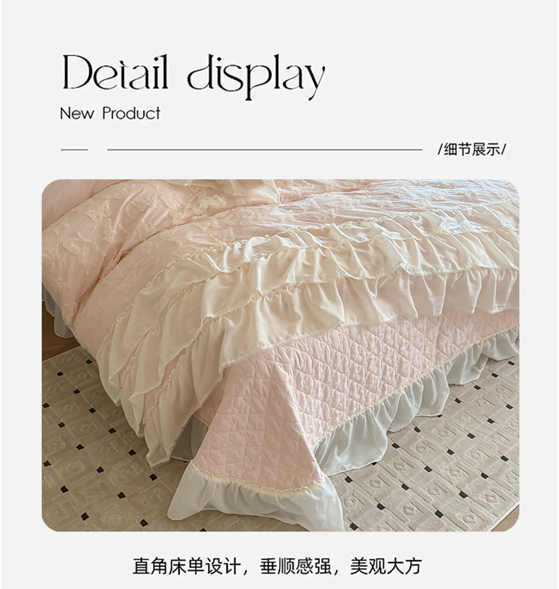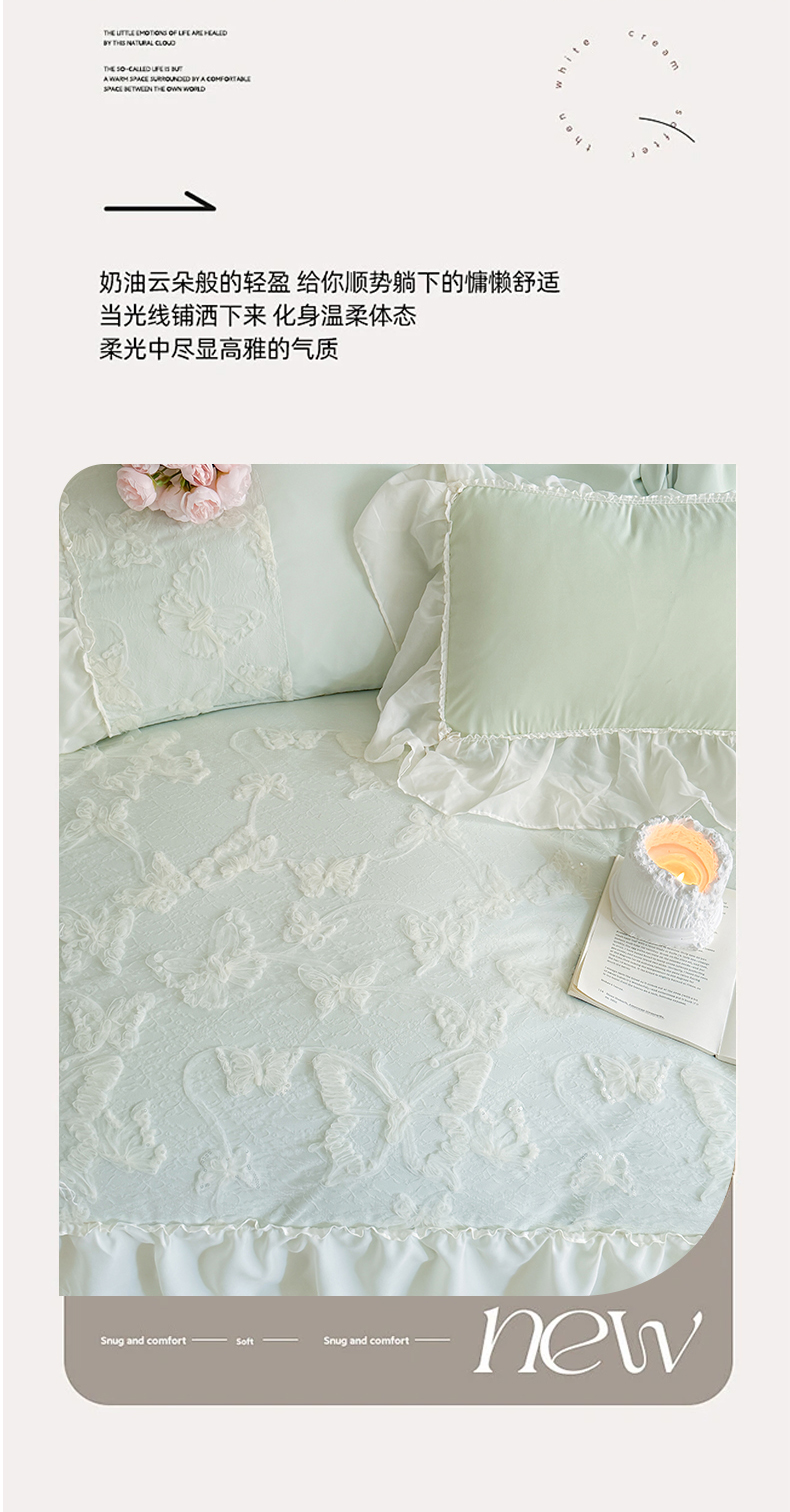 (总)吾欢心 2025新款公主风雪纺边四季通用夹棉床盖,床盖白,床盖粉,床盖黄,床盖咖,床盖绿,床盖抹茶绿,床盖紫