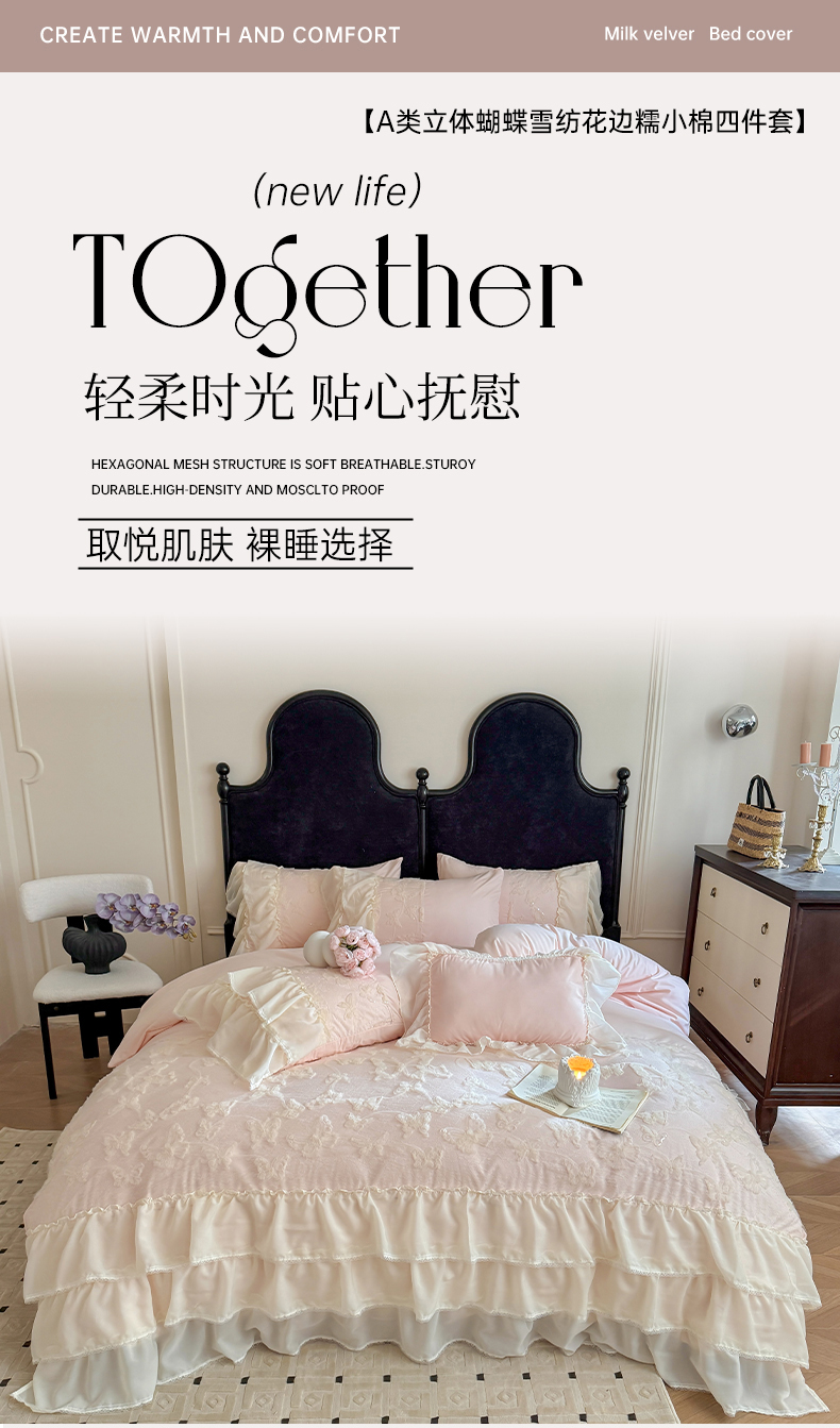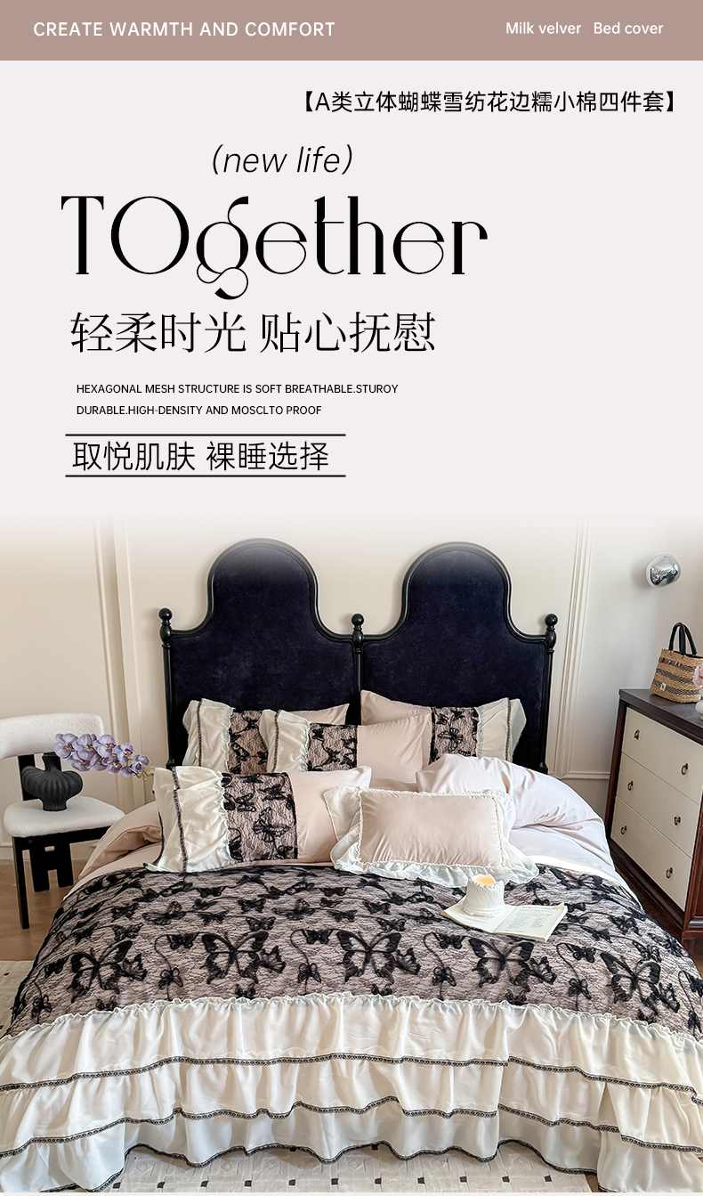 (总)吾欢心 2025新款法式蕾丝款加厚皮草绒四件套,艾莉薇,蝴蝶结,美拉德,梦幻蝶舞,莫奈香颂,索菲亚