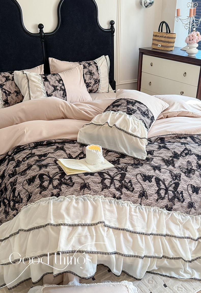 (总)吾欢心2025新款蝴蝶梦立体定制蝴蝶加三层雪纺花边系列四件套