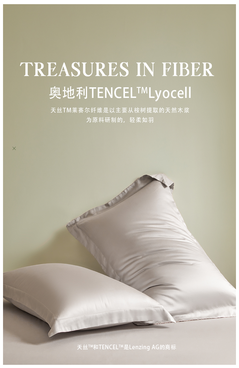 商品名称:618家纺 2025新款60S100支兰精天丝单品-枕套 天丝椰子灰