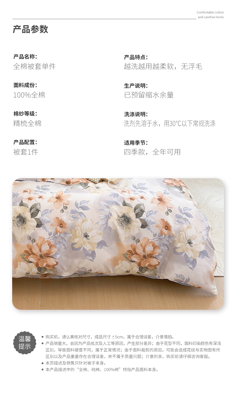 商品名称:元元被芯 2025新款40支13372全棉印花全棉被套 梦湘