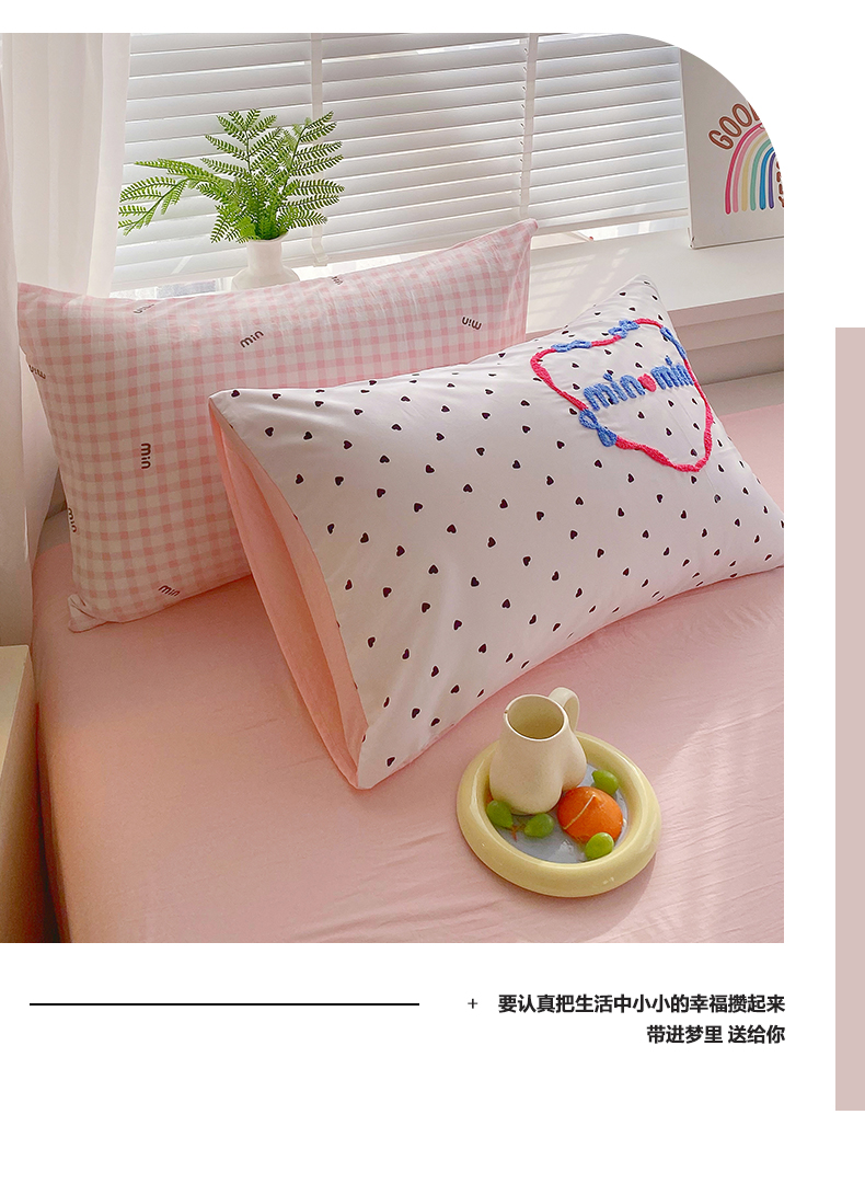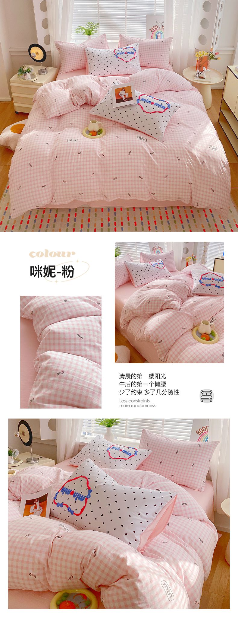 商品名称:大麦乐田2025新款四季亲肤可爱柔软毛巾绣四件套-彩格乐园系列 咪妮 粉