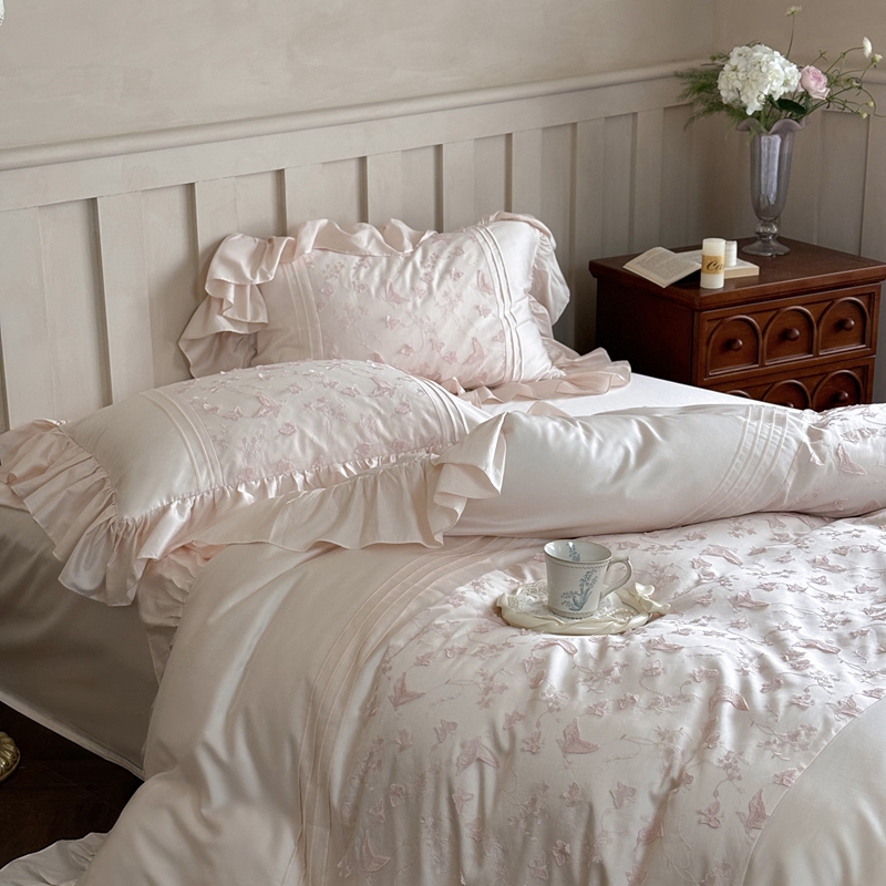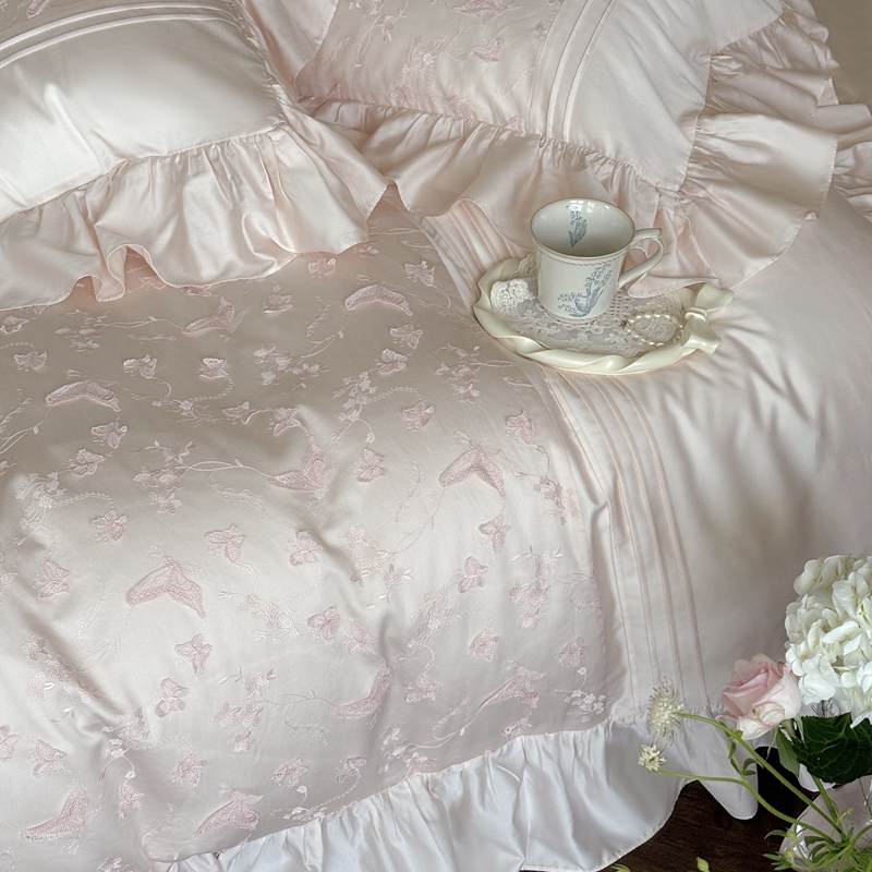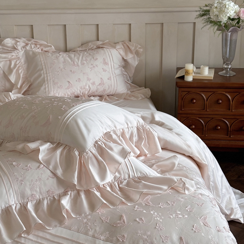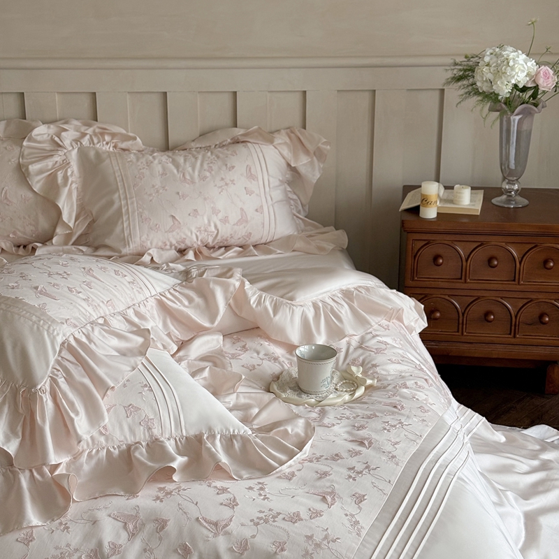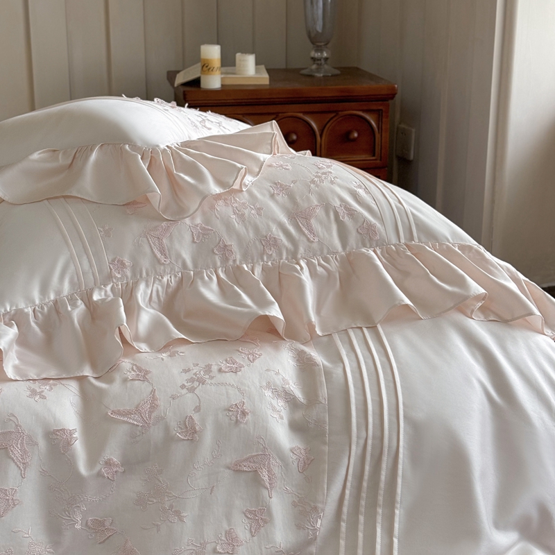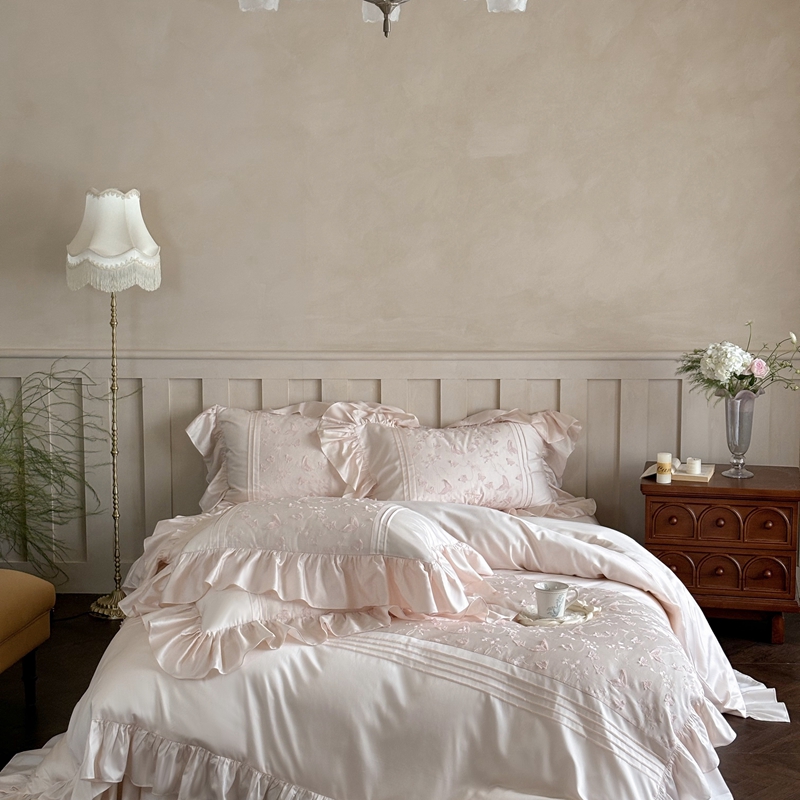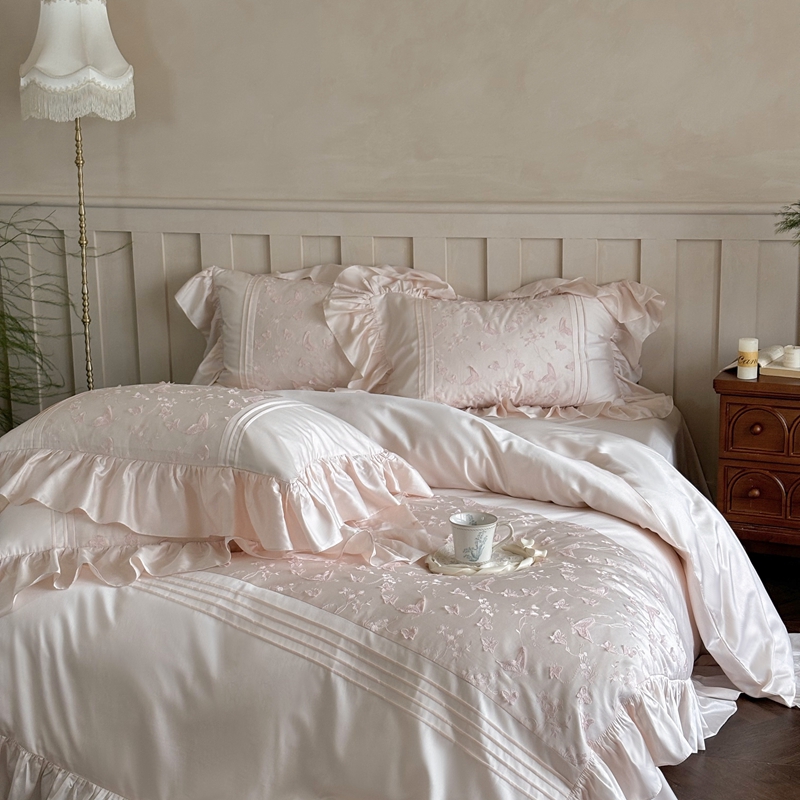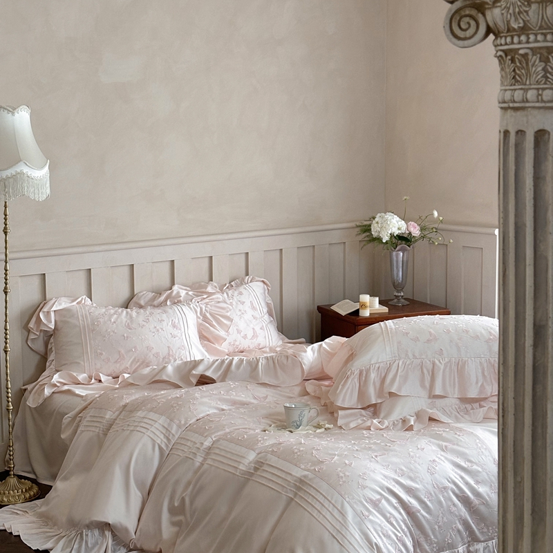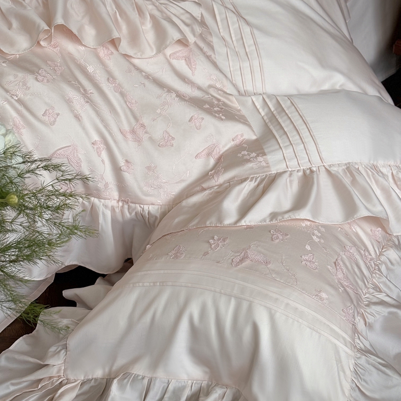 (总)佳汐蓝家纺 2025新款全棉刺绣花边四件套-妮娅,妮娅-粉色,妮娅-米白色,妮娅-香槟色,妮娅-紫色