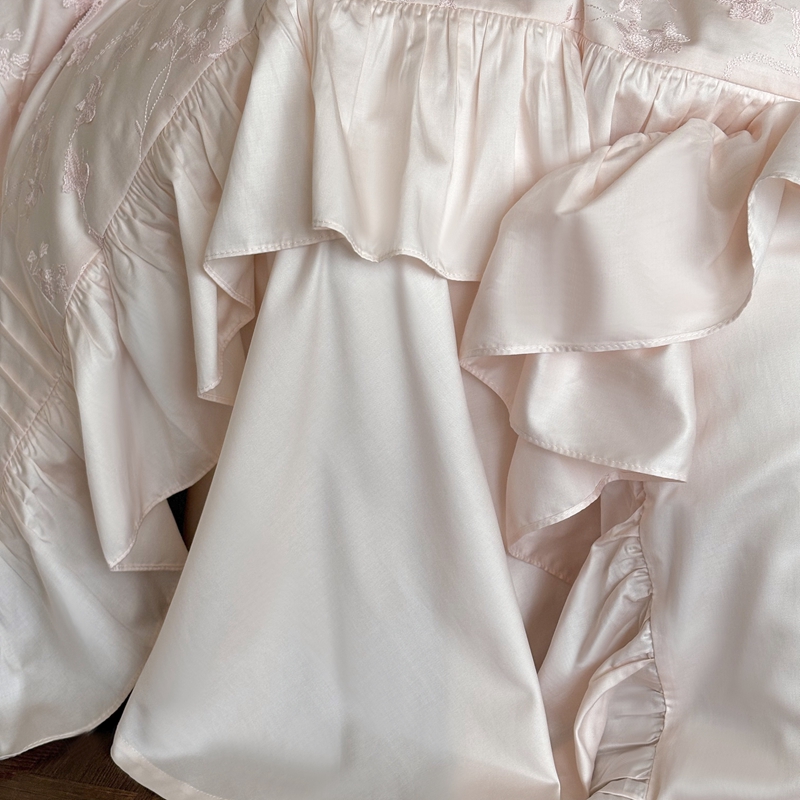 (总)佳汐蓝 2025春夏新品双层皱皱纱刺绣+荷叶边四件套--花与浔,奶白,天蓝
