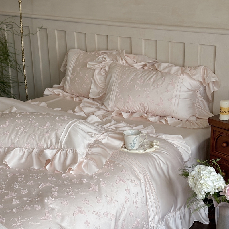 佳汐蓝家纺 2025新款天丝棉四件套-花芷蝶 粉色