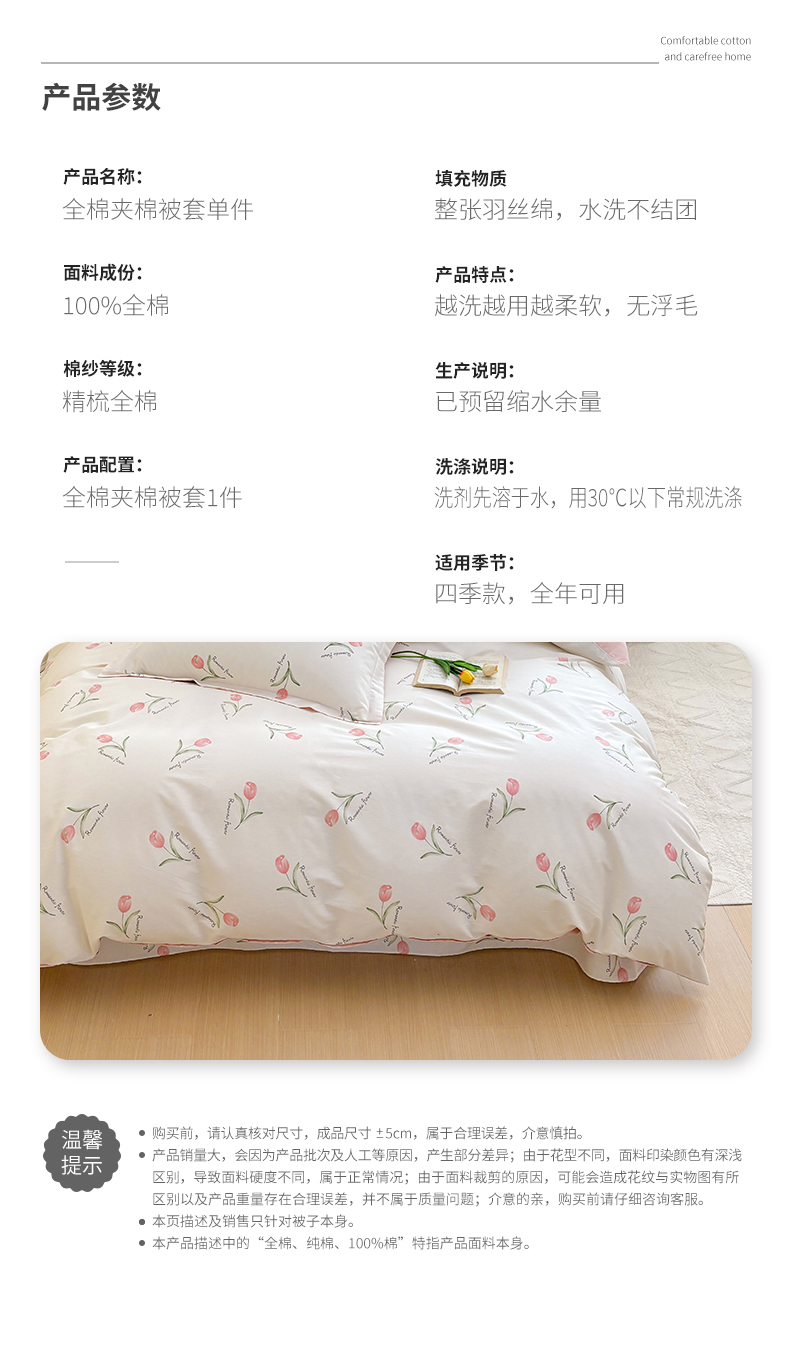 商品名称:元元被芯 2025新款40支13372全棉印花全棉隐藏式夹棉被套 亦语