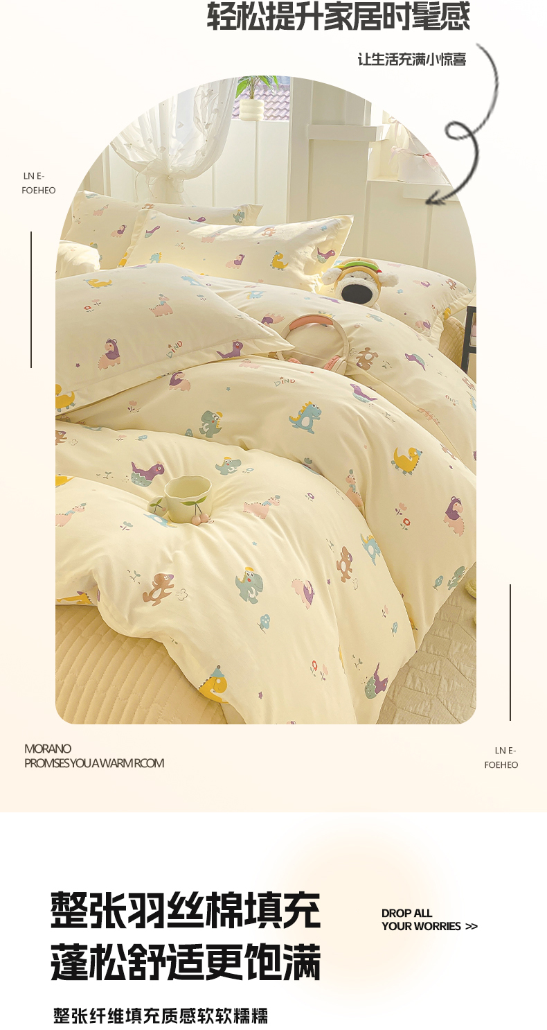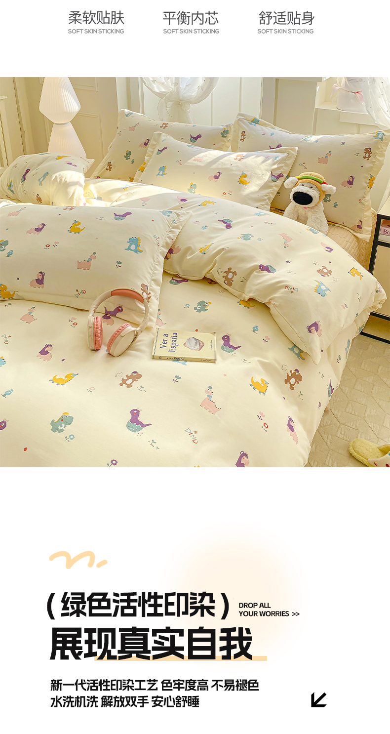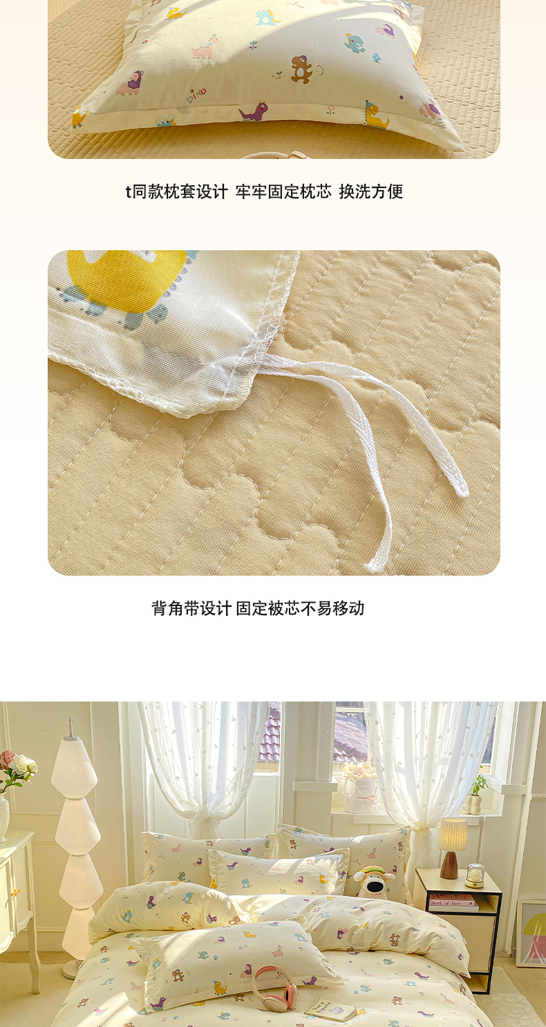 商品名称:梦莱斯 2025直播爆款公主风A类针织棉床盖四件套AA版被套 乐趣恐龙