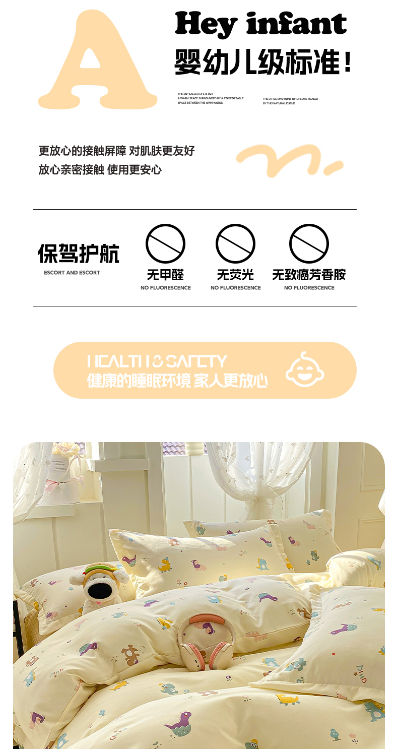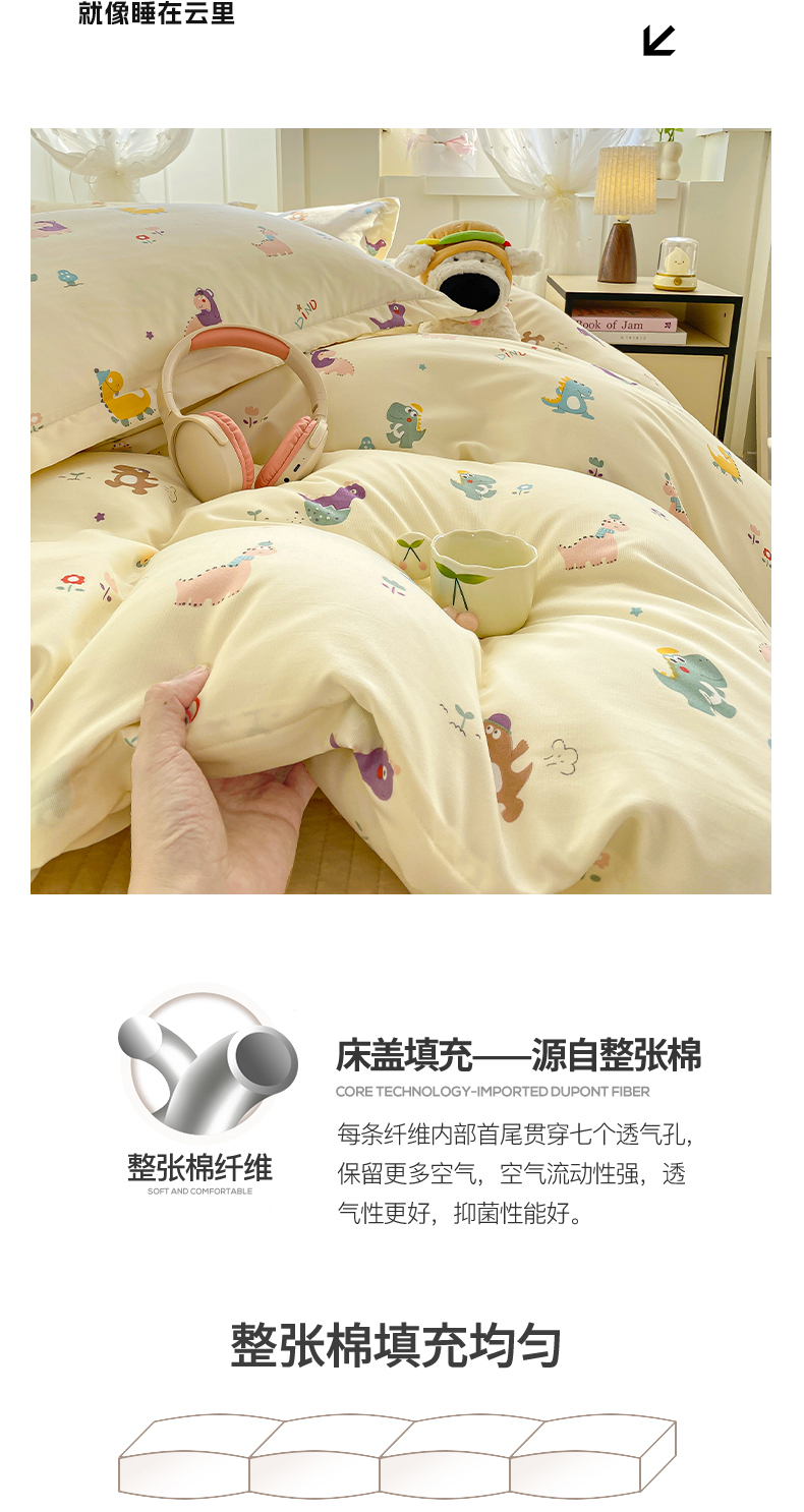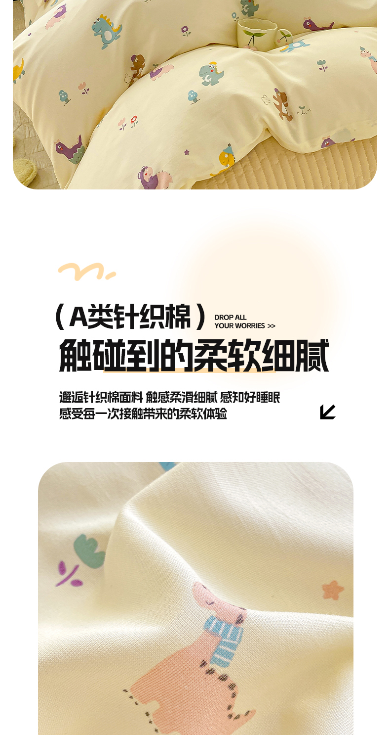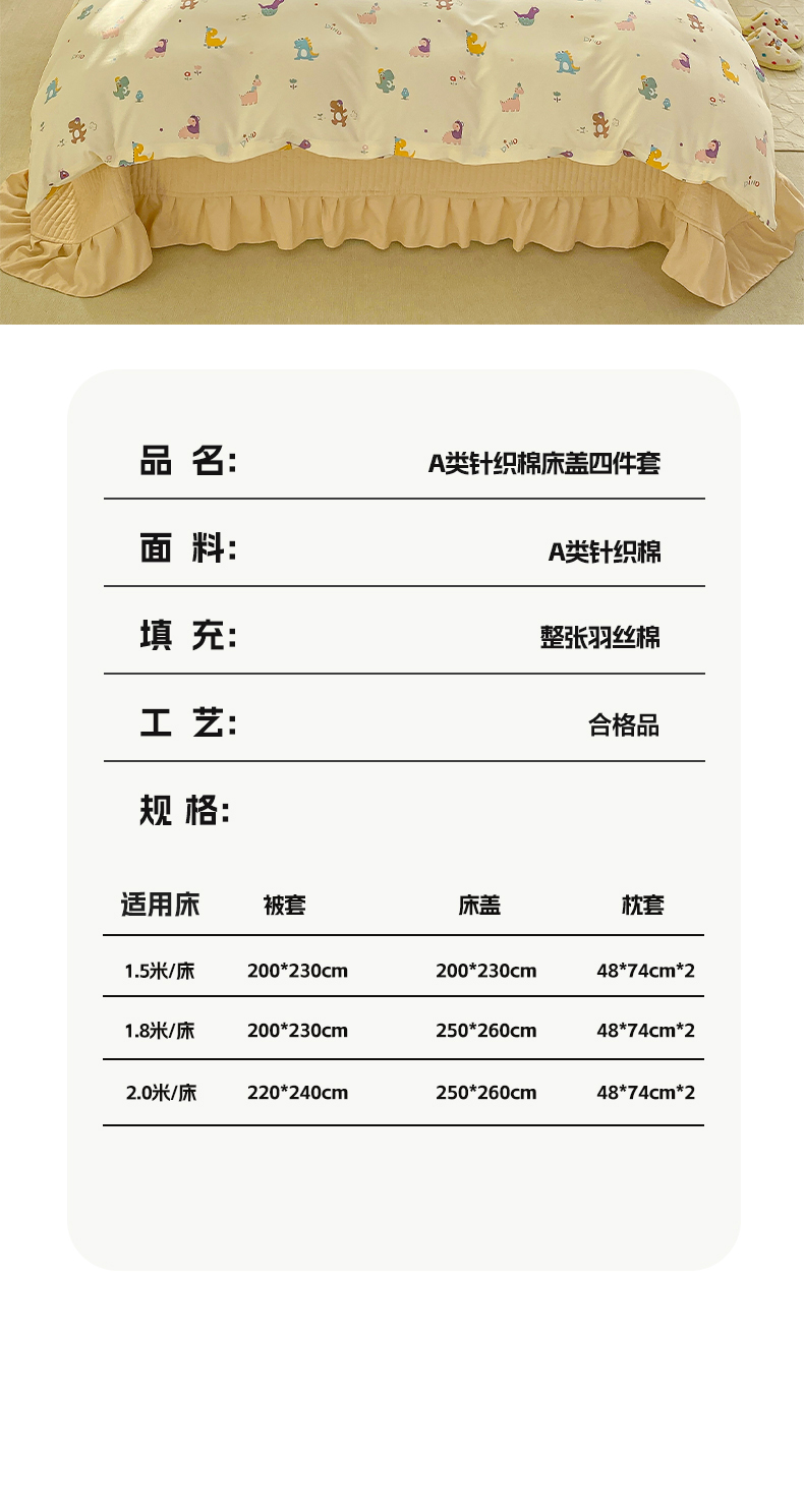 商品名称:梦莱斯 2025直播爆款公主风A类针织棉床盖四件套AA版被套 乐趣恐龙