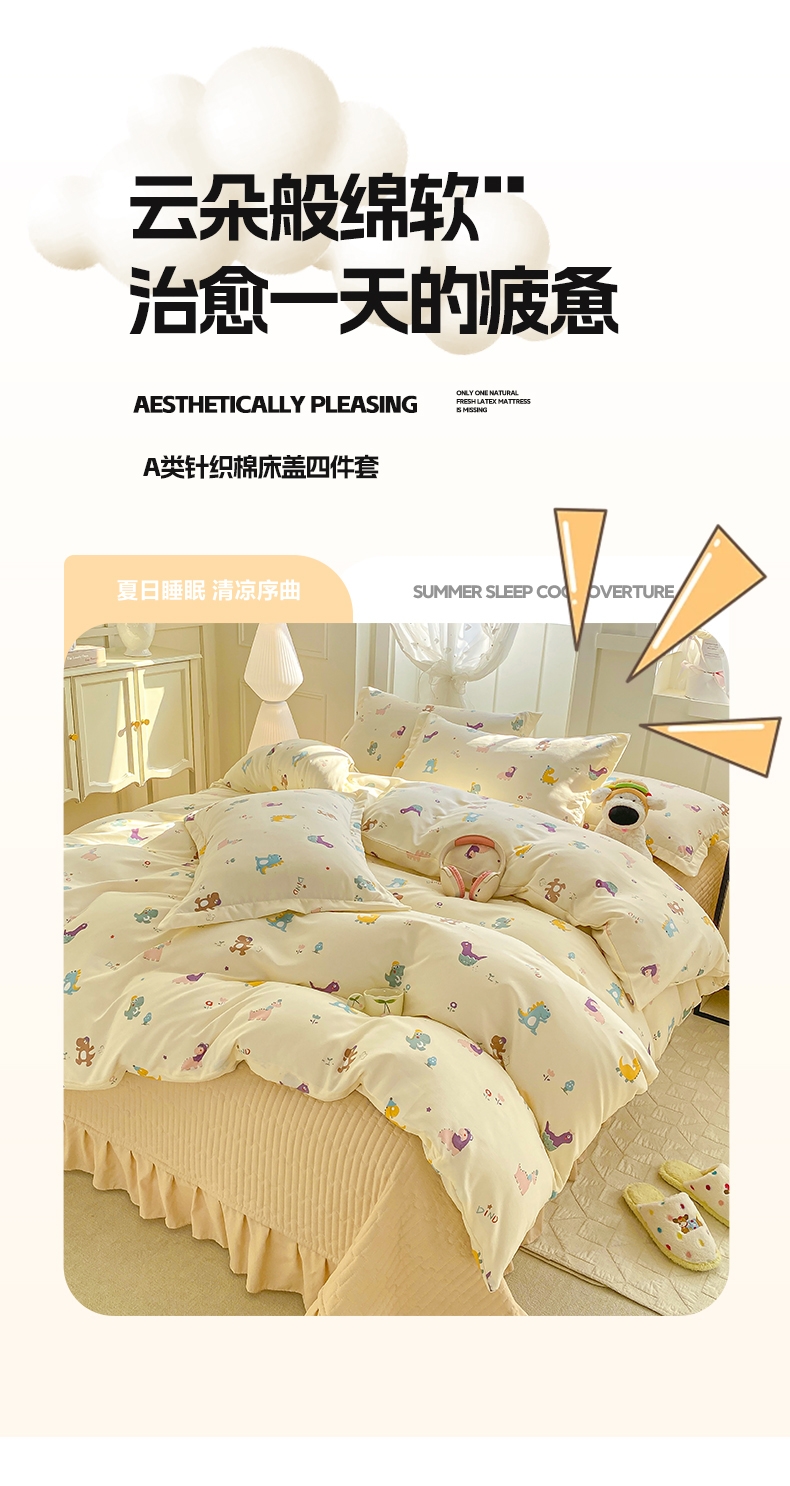 梦莱斯 2025直播爆款公主风A类针织棉床盖四件套AA版被套 乐趣恐龙