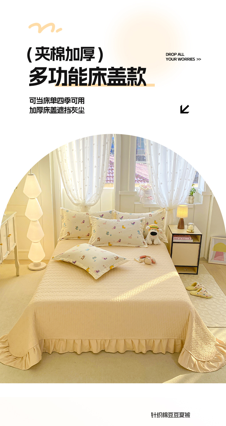 (总)梦莱斯2025新款皱皱棉学生款床盖三件套,波点粉,波点黄,波点咖,波点蓝,波点紫,法式少女,花海绿,简夕米,蓝格子,罗格先生咖,罗格先生蓝,迷你格灰,迷你格米,珊瑚海粉,水墨嫣然,往事黄,往事咖,至尚
