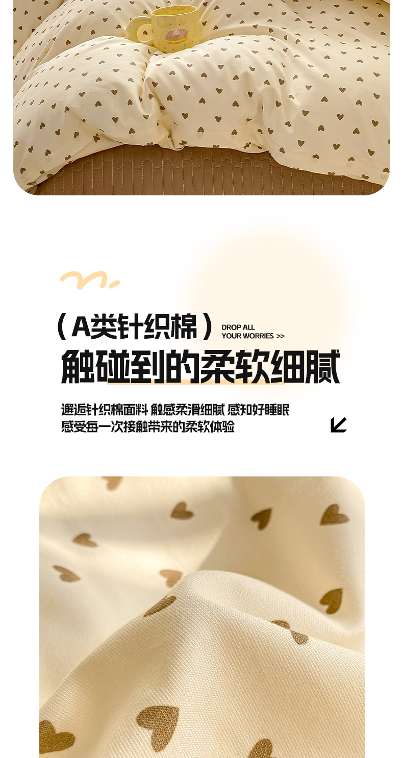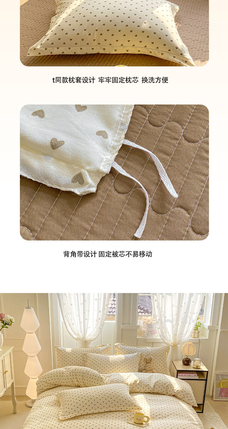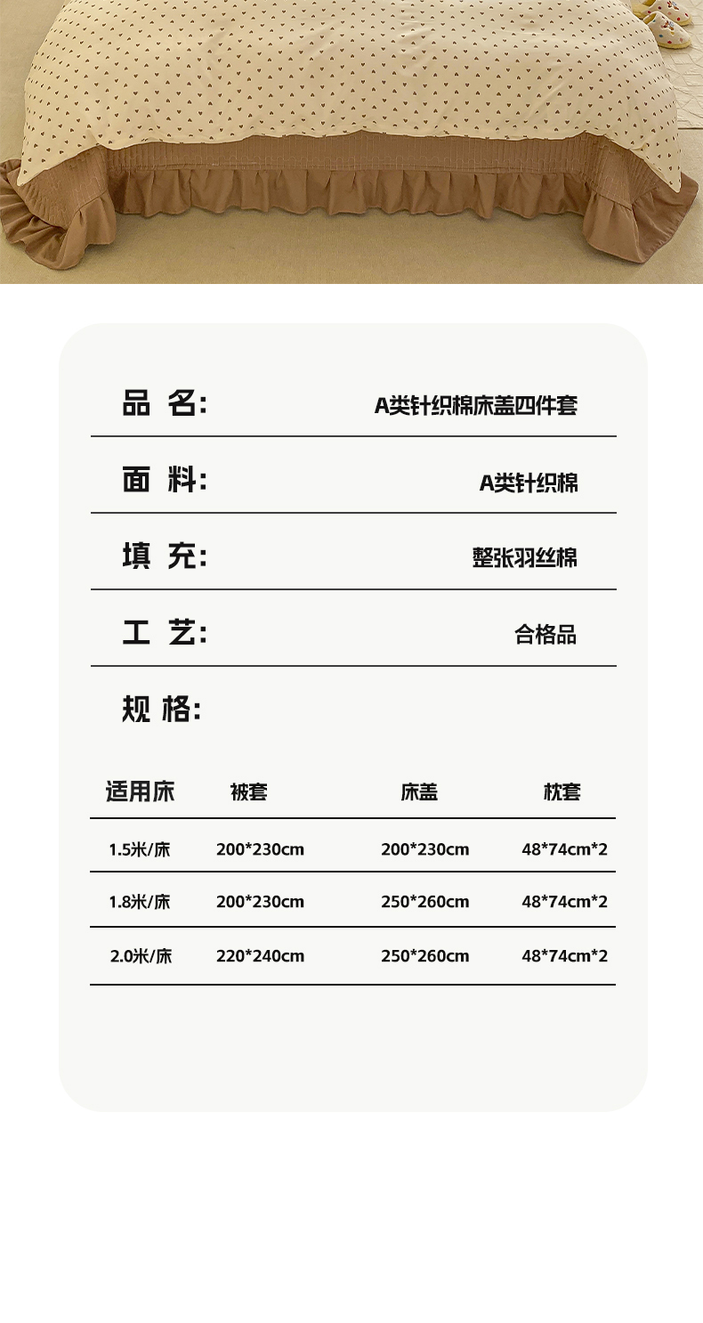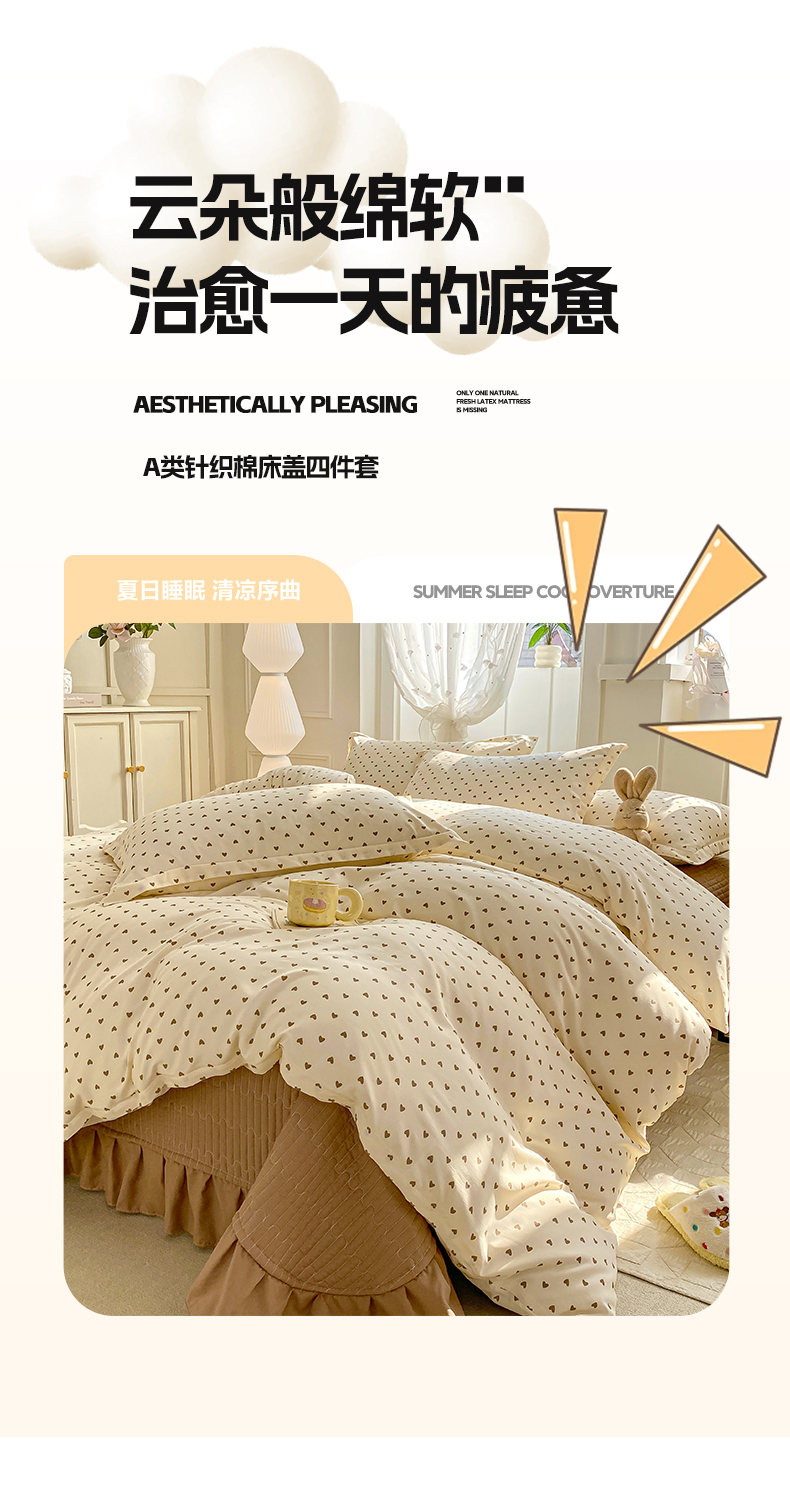 商品名称:梦莱斯 2025直播爆款公主风A类针织棉床盖四件套AA版被套 甜甜心事