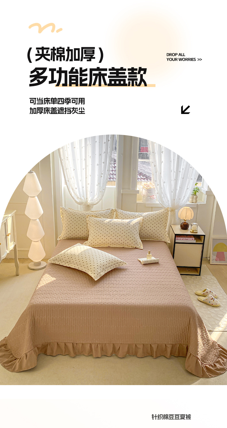 (总)梦莱斯2025新款皱皱棉学生款床盖三件套,波点粉,波点黄,波点咖,波点蓝,波点紫,法式少女,花海绿,简夕米,蓝格子,罗格先生咖,罗格先生蓝,迷你格灰,迷你格米,珊瑚海粉,水墨嫣然,往事黄,往事咖,至尚