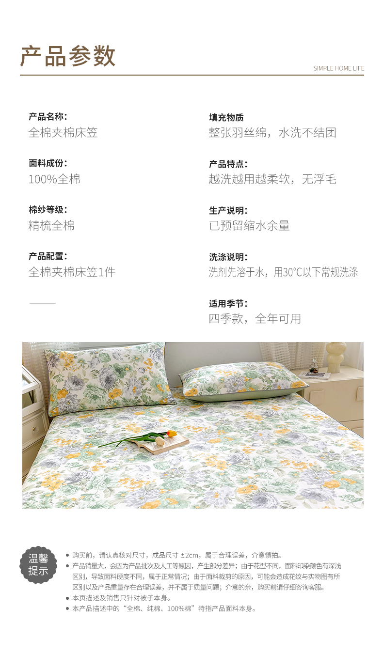 商品名称:元元被芯 2025新款40支13372全棉印花全棉隐藏式夹棉床笠 硕果