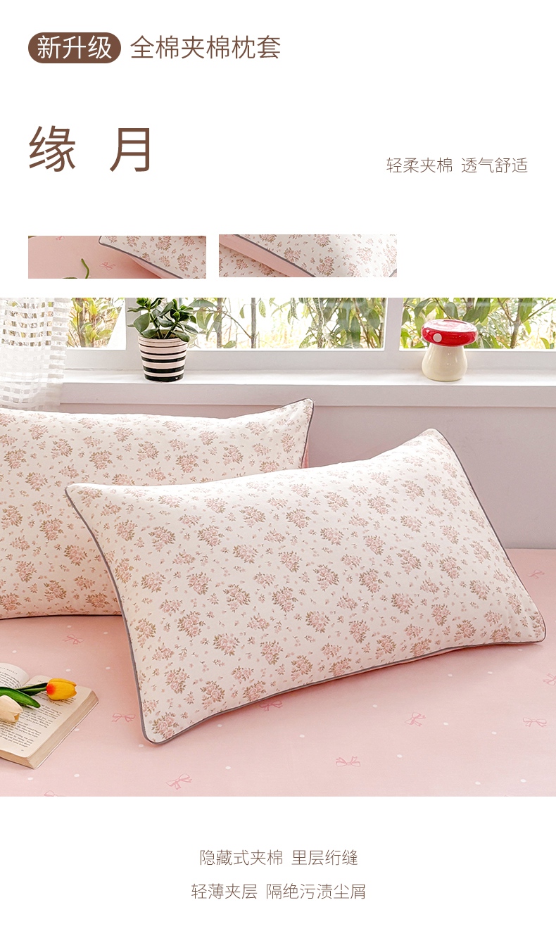 商品名称:元元被芯 2025新款40支13372全棉印花全棉隐藏式夹棉枕套 颂雅