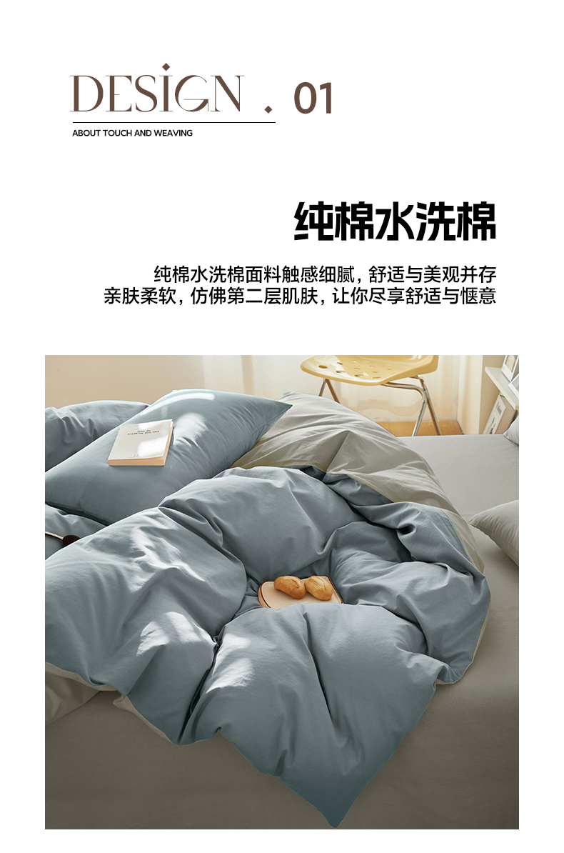 • 91家纺网 家纺一手货源 找家纺 寐绸家纺 2025新款纯棉水洗棉双拼单被套(自然光) 礁石灰+毛毯灰