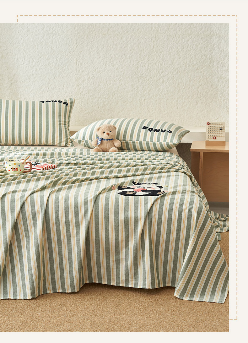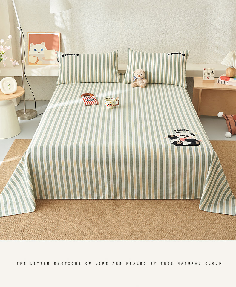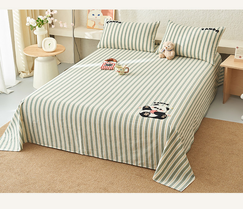 寐绸家纺 2025新款纯棉色织水洗棉竖条单床单 水洗棉竖条床单-竹条绿