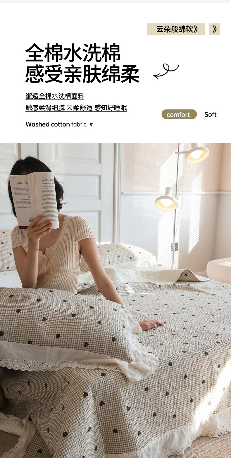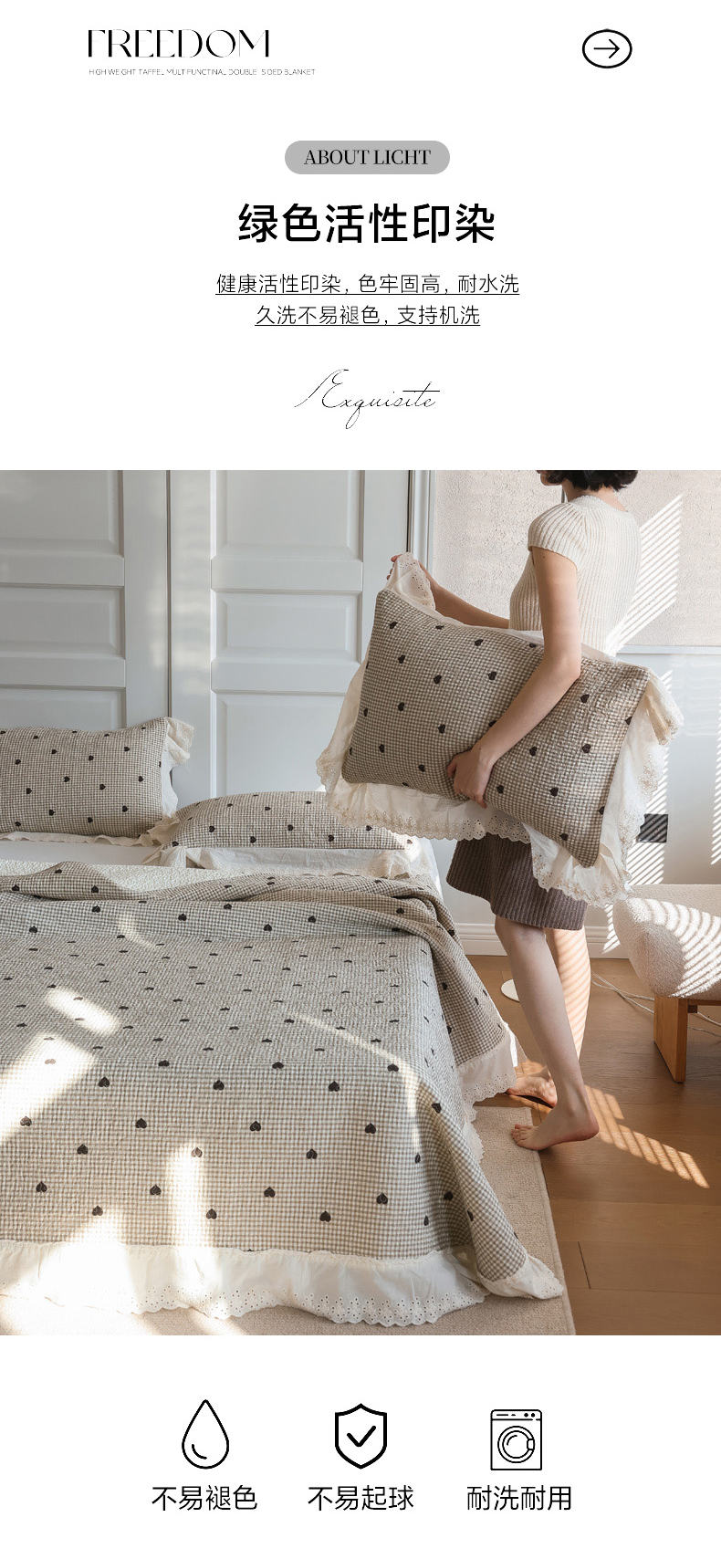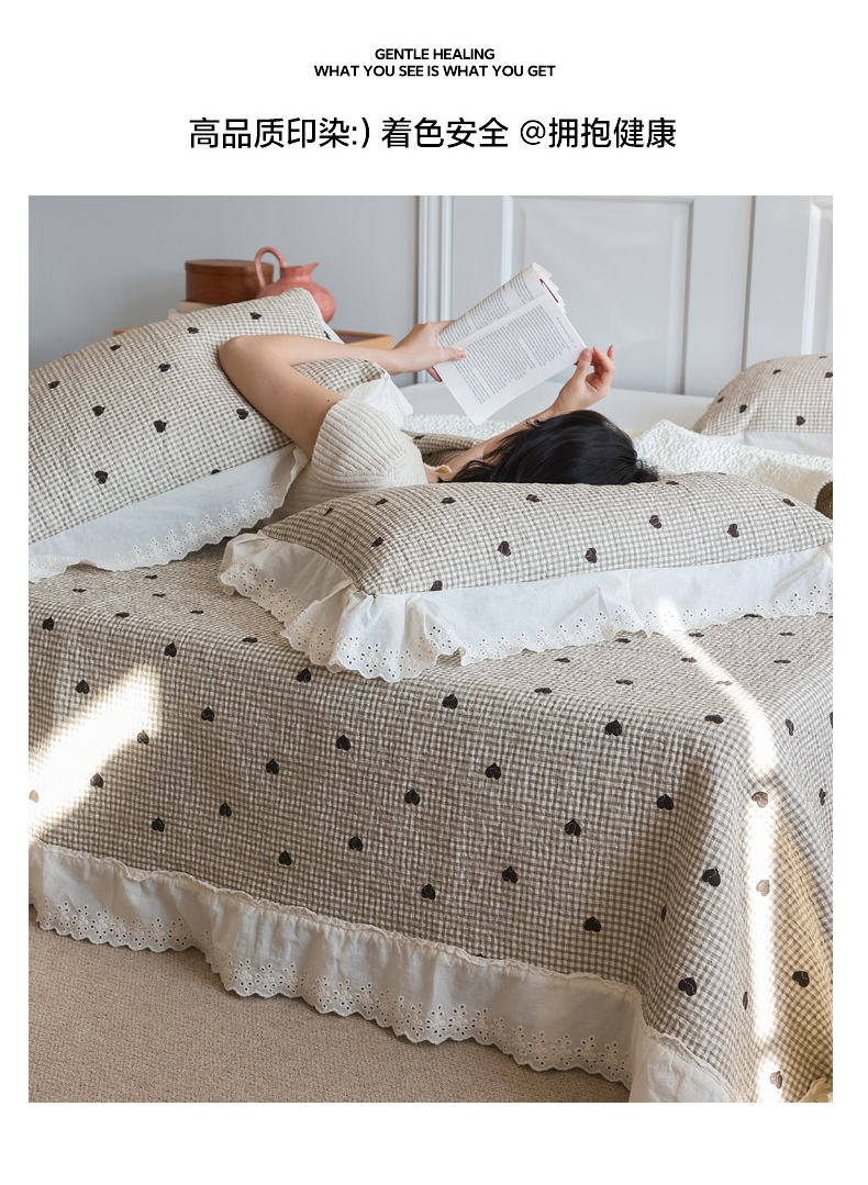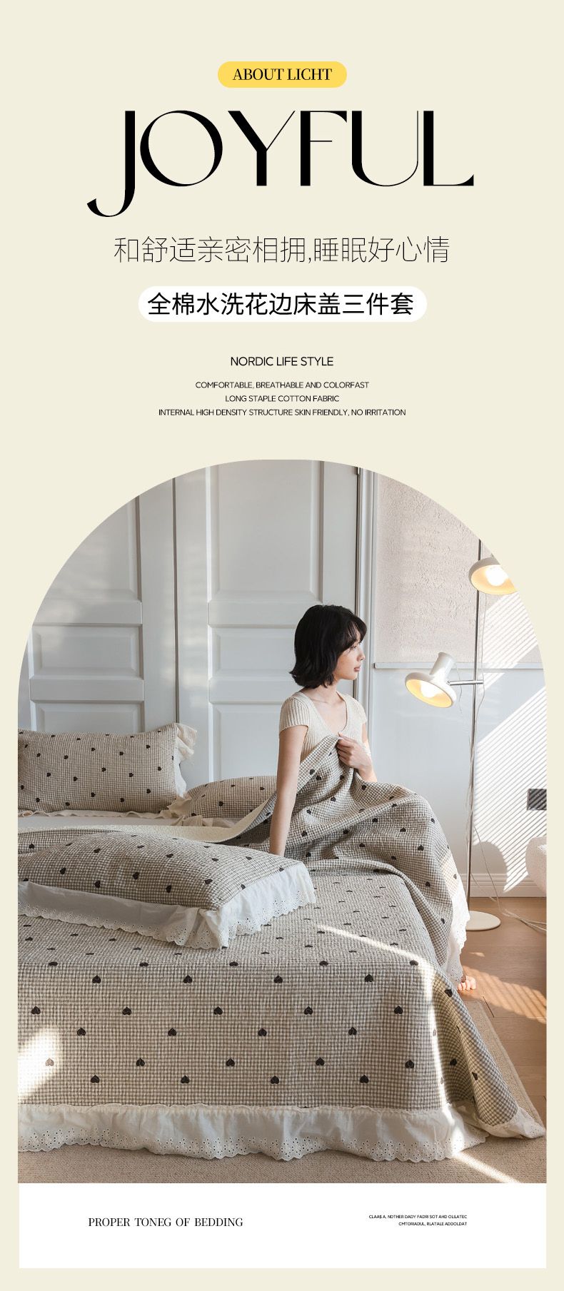 万盛家纺 2025新款全棉水洗花边床盖三件套 守护甜心
