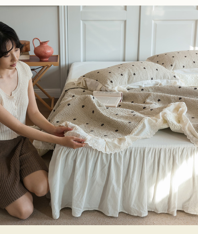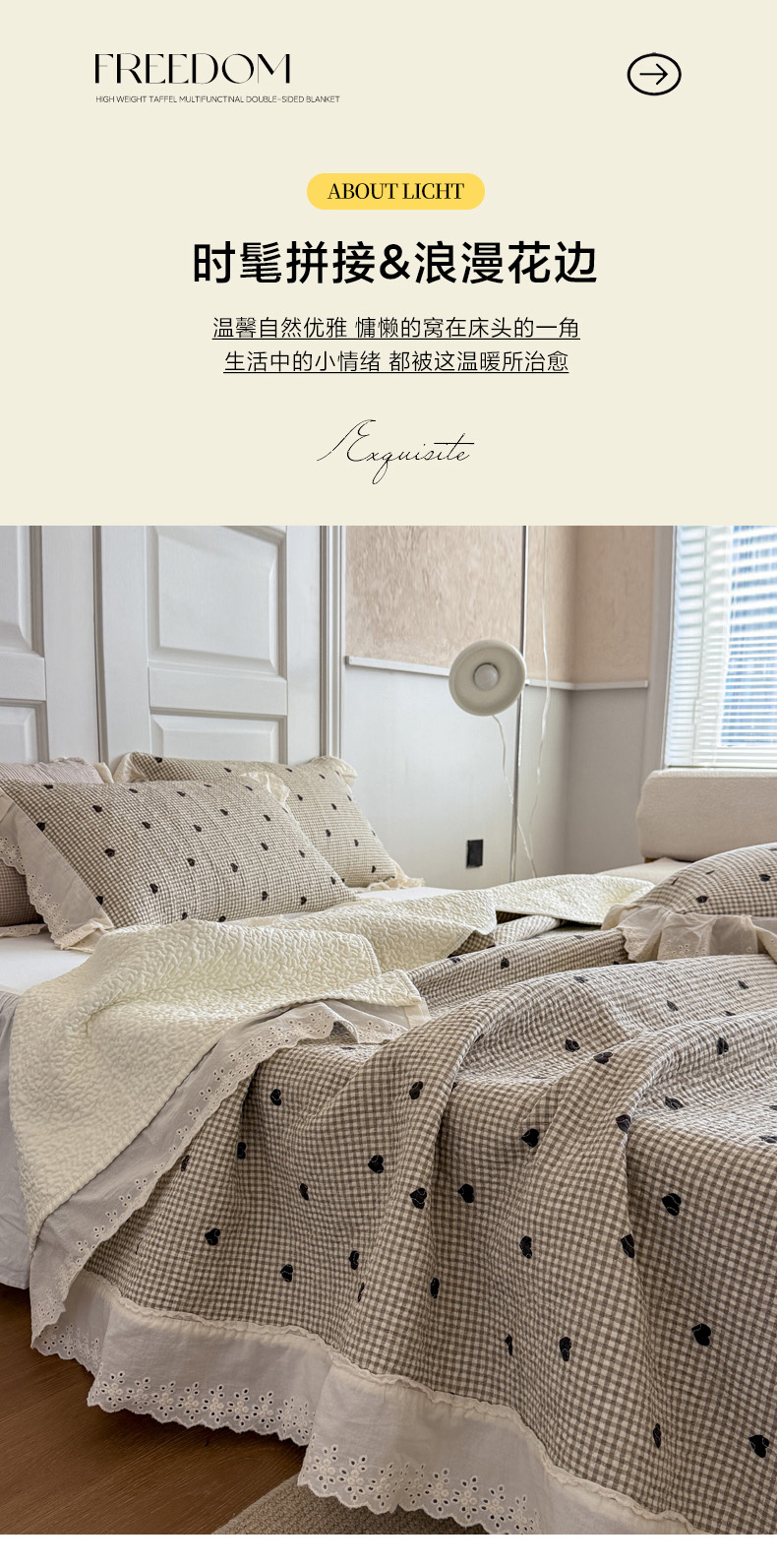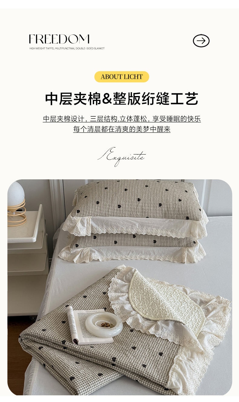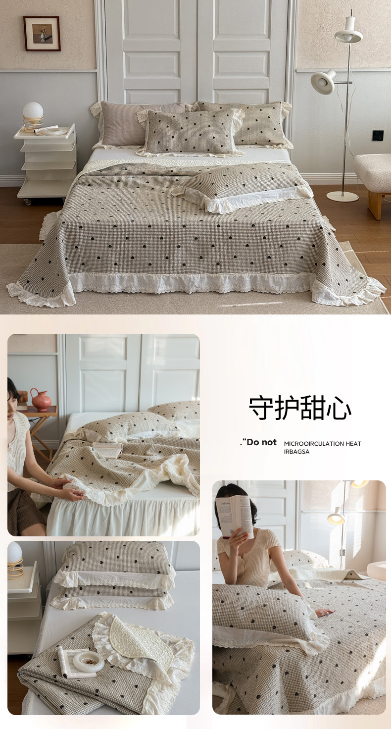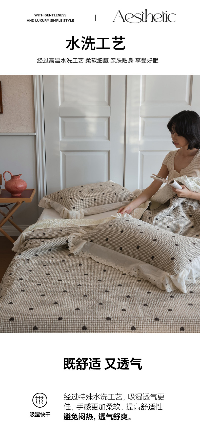万盛家纺 2025新款全棉水洗花边床盖三件套 守护甜心