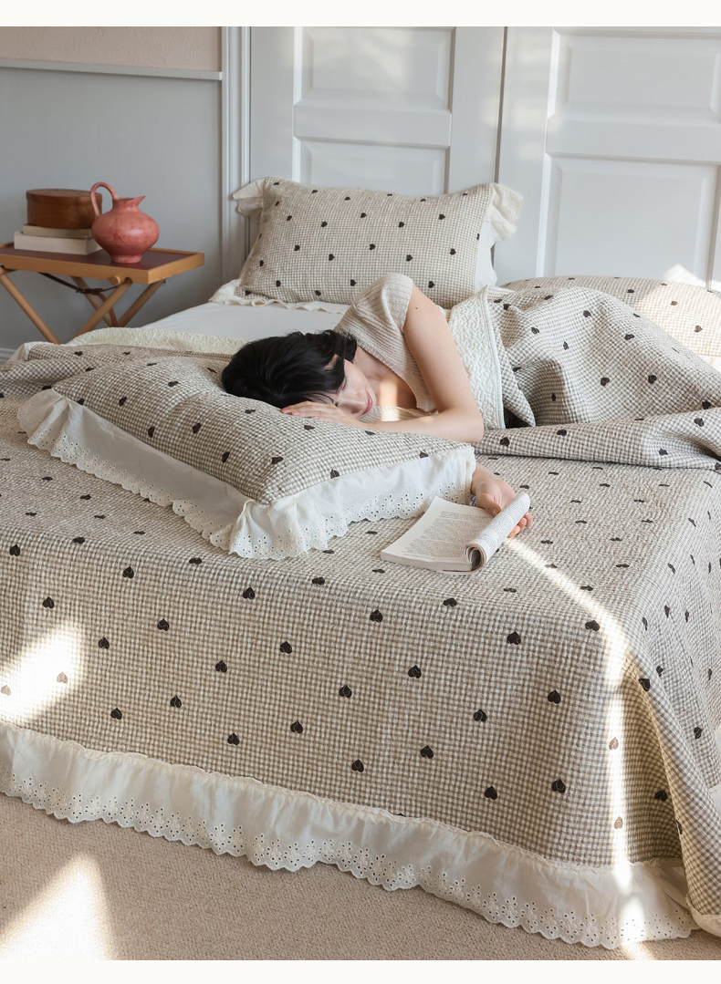 商品名称:万盛家纺 2025新款全棉水洗花边床盖三件套 守护甜心