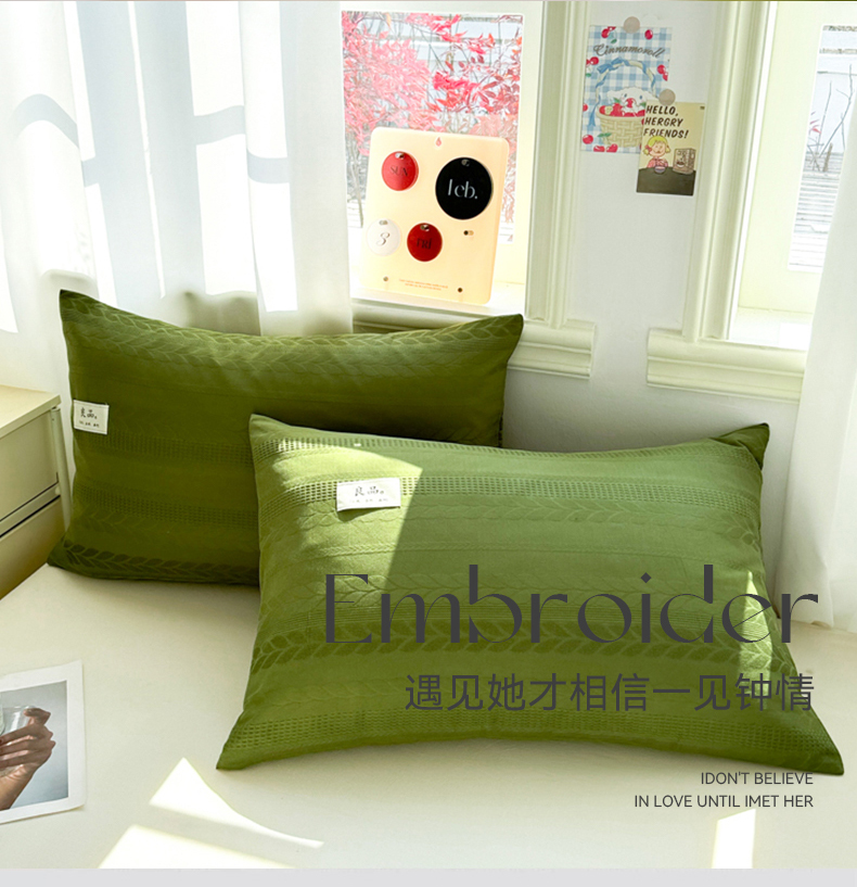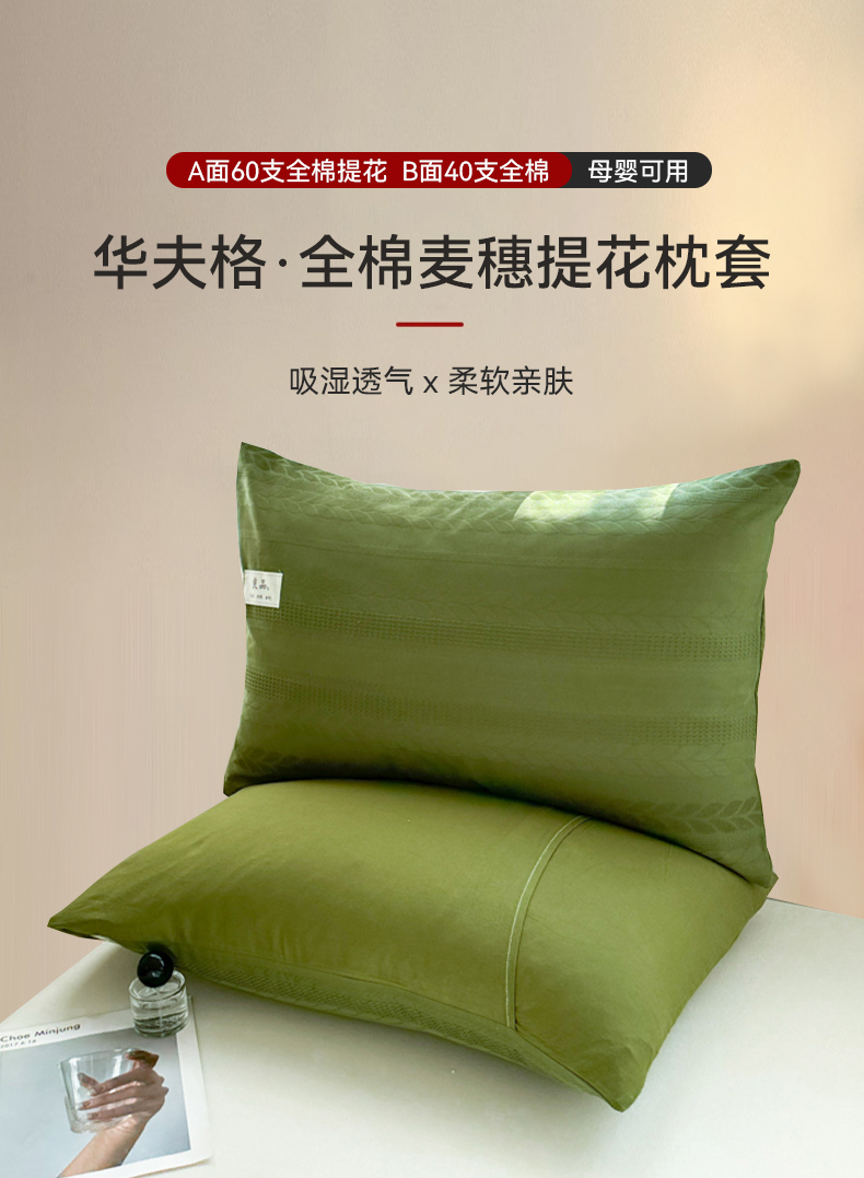商品名称:眠博士 2025新款全棉华夫格麦穗枕套 华夫格枕套-麦穗军绿