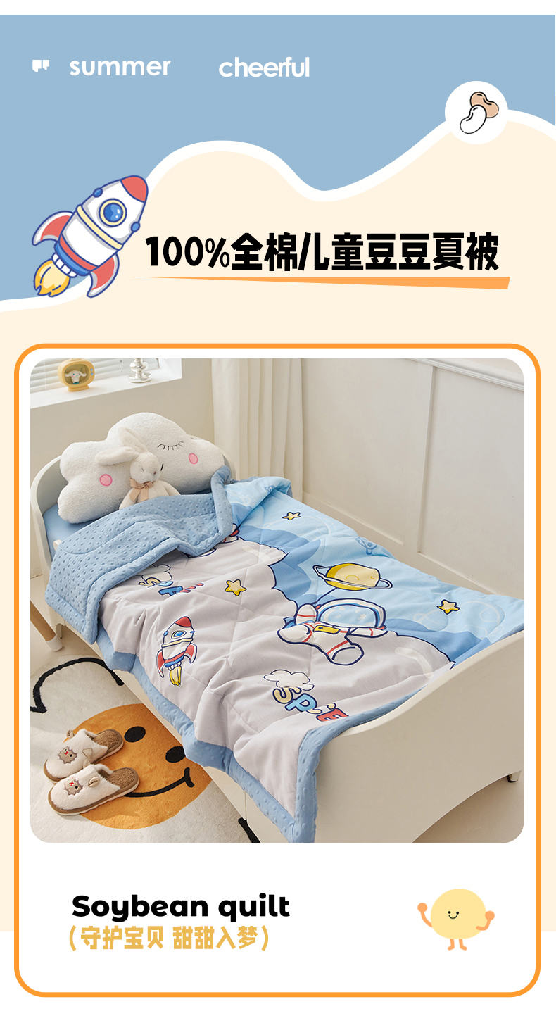 商品名称:暖阳 2025新款全棉儿童豆豆夏被 豆豆-探索星球