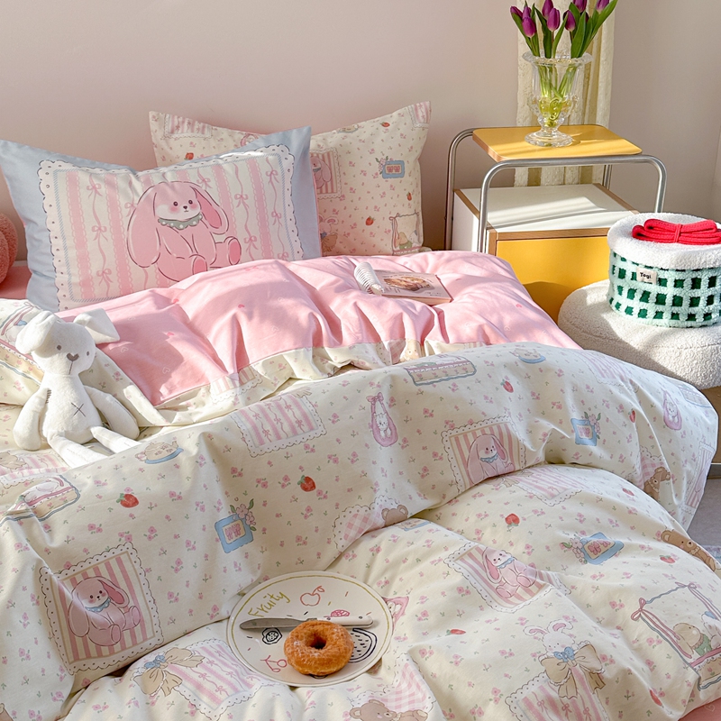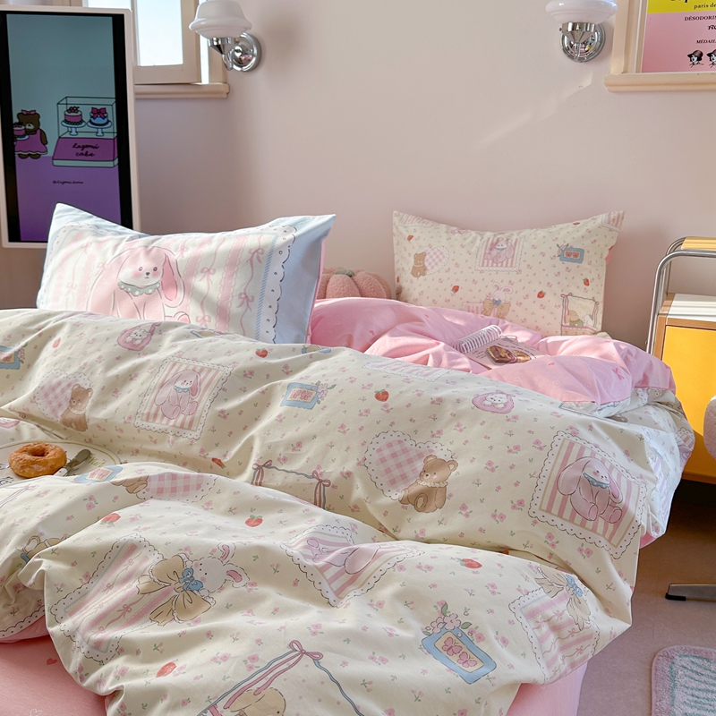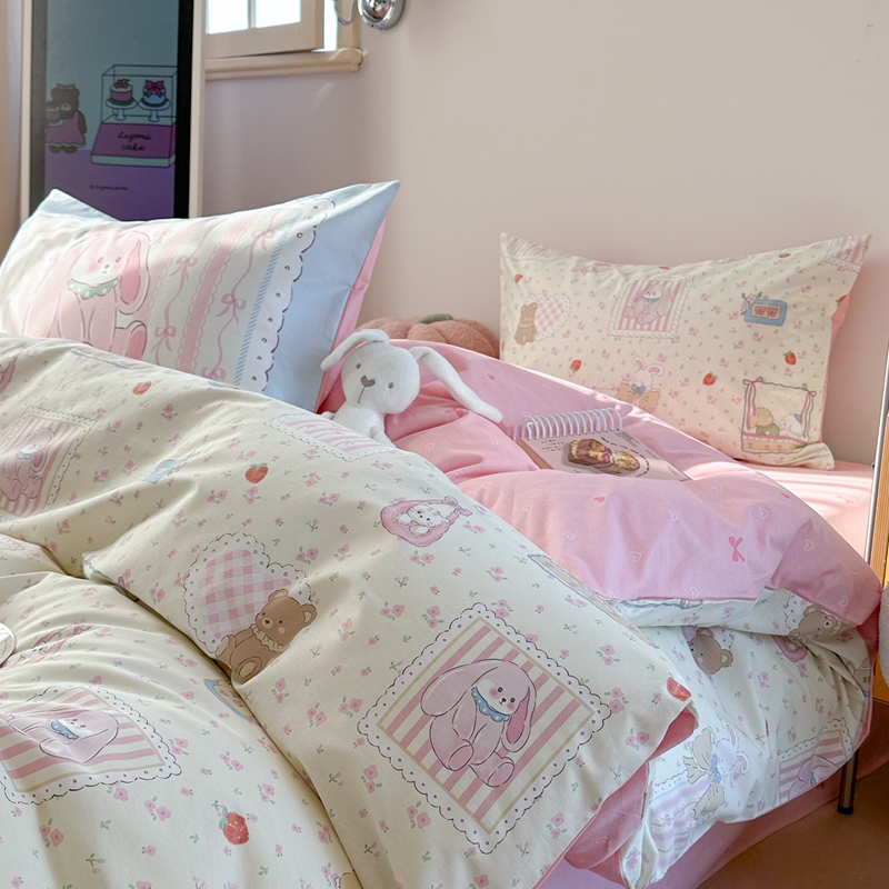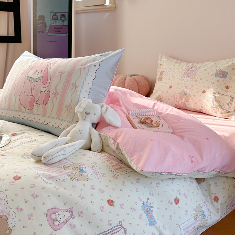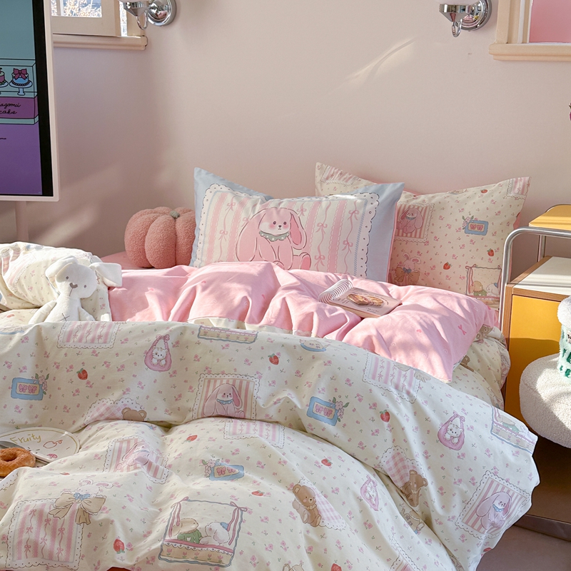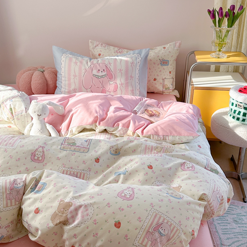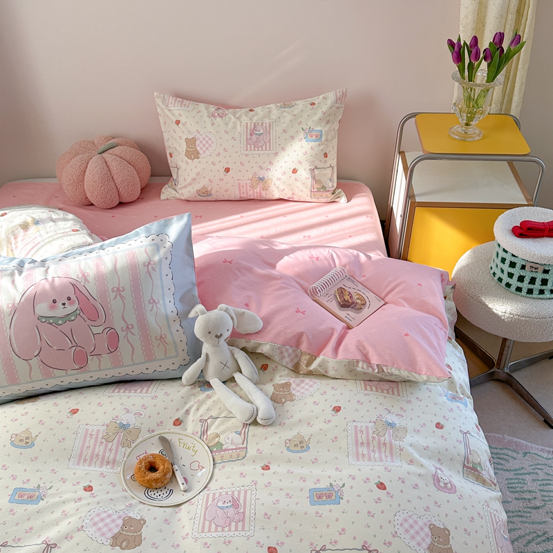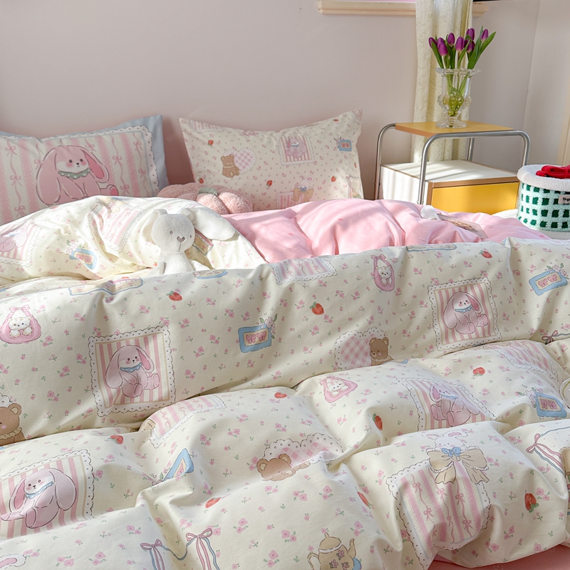 时年家纺 2025新款全棉数码趣味系列3.0 四件套 软萌小兔