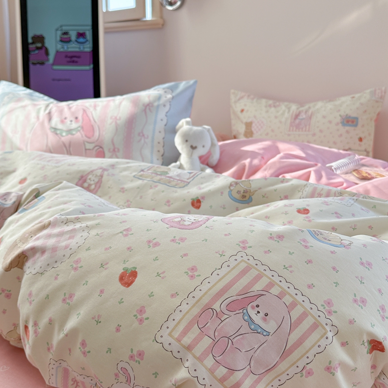 商品名称:时年家纺 2025新款全棉数码趣味系列3.0 四件套 软萌小兔