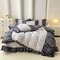 晨晨 2025春夏新款针织双层纱韩版床盖四件套 萱花-灰