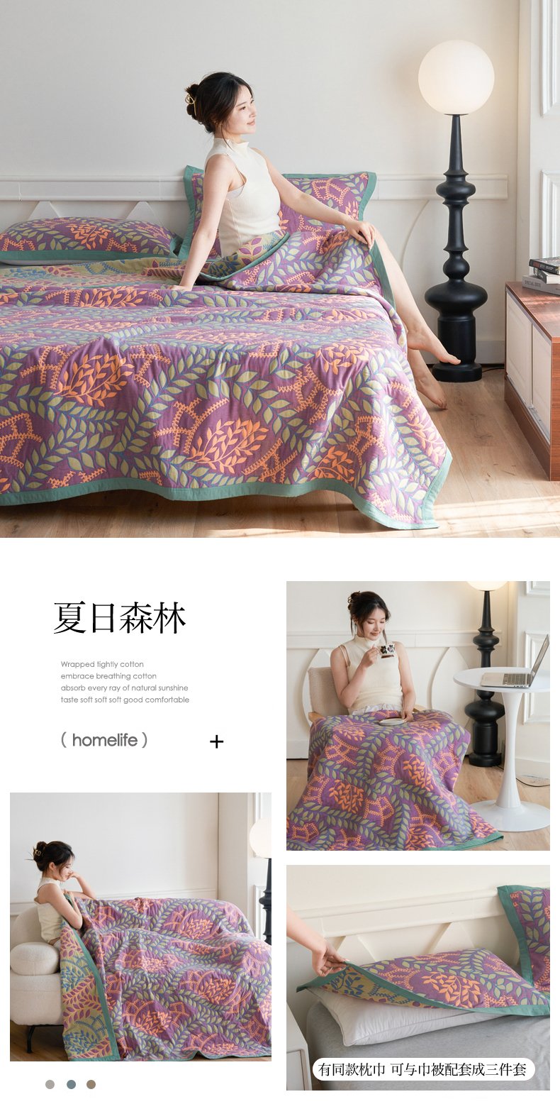 (总)棠薇家纺 2025新款全棉彩纱双层纱夏被三层纱多功能毛巾被纱布毯细纱床盖,叶见倾心,彩色仙贝,拉夏尔,舞动银杏,金枝玉叶