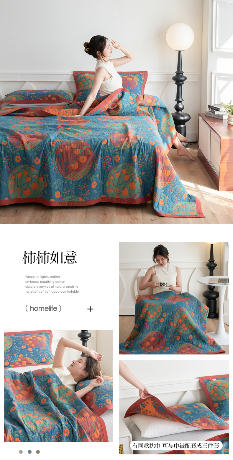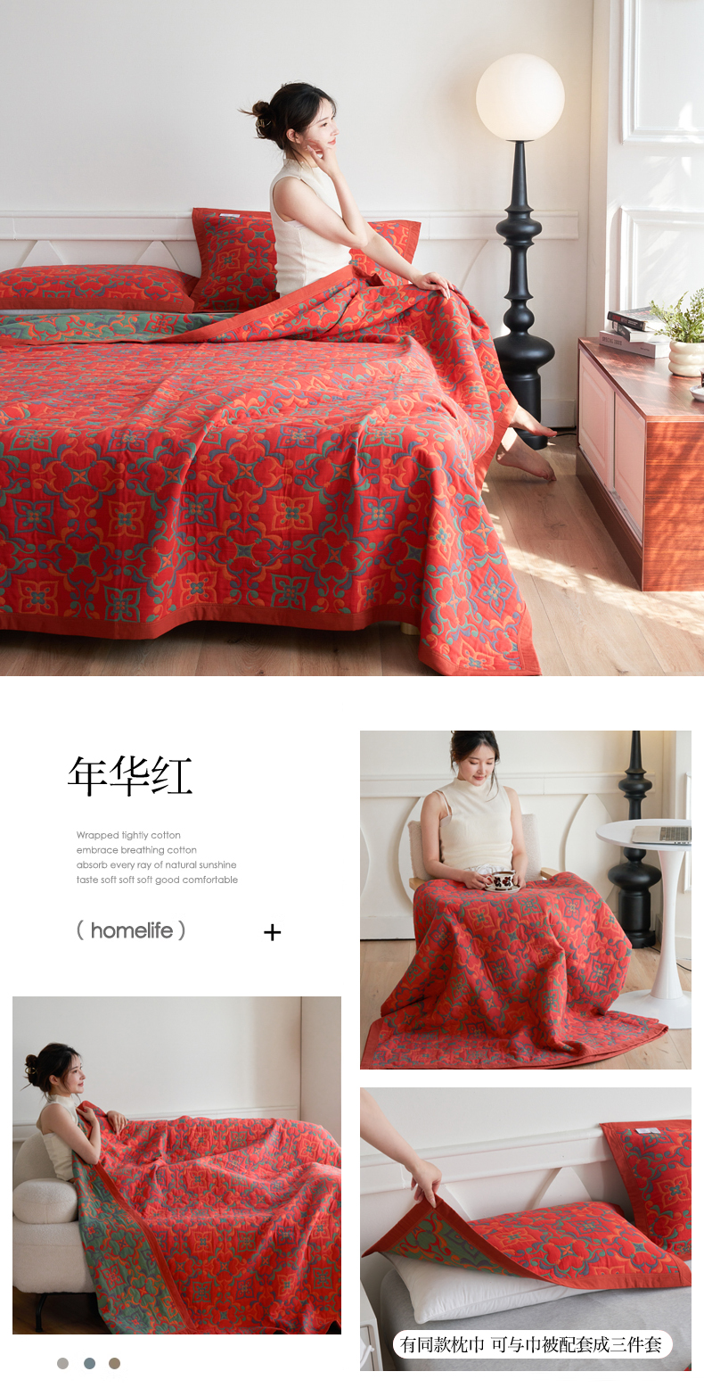 (总)棠薇家纺 2025新款爆款60S长绒棉厚百福字三层纱布毯 200x230cm 厚款60S百福毯,百福毯厚款