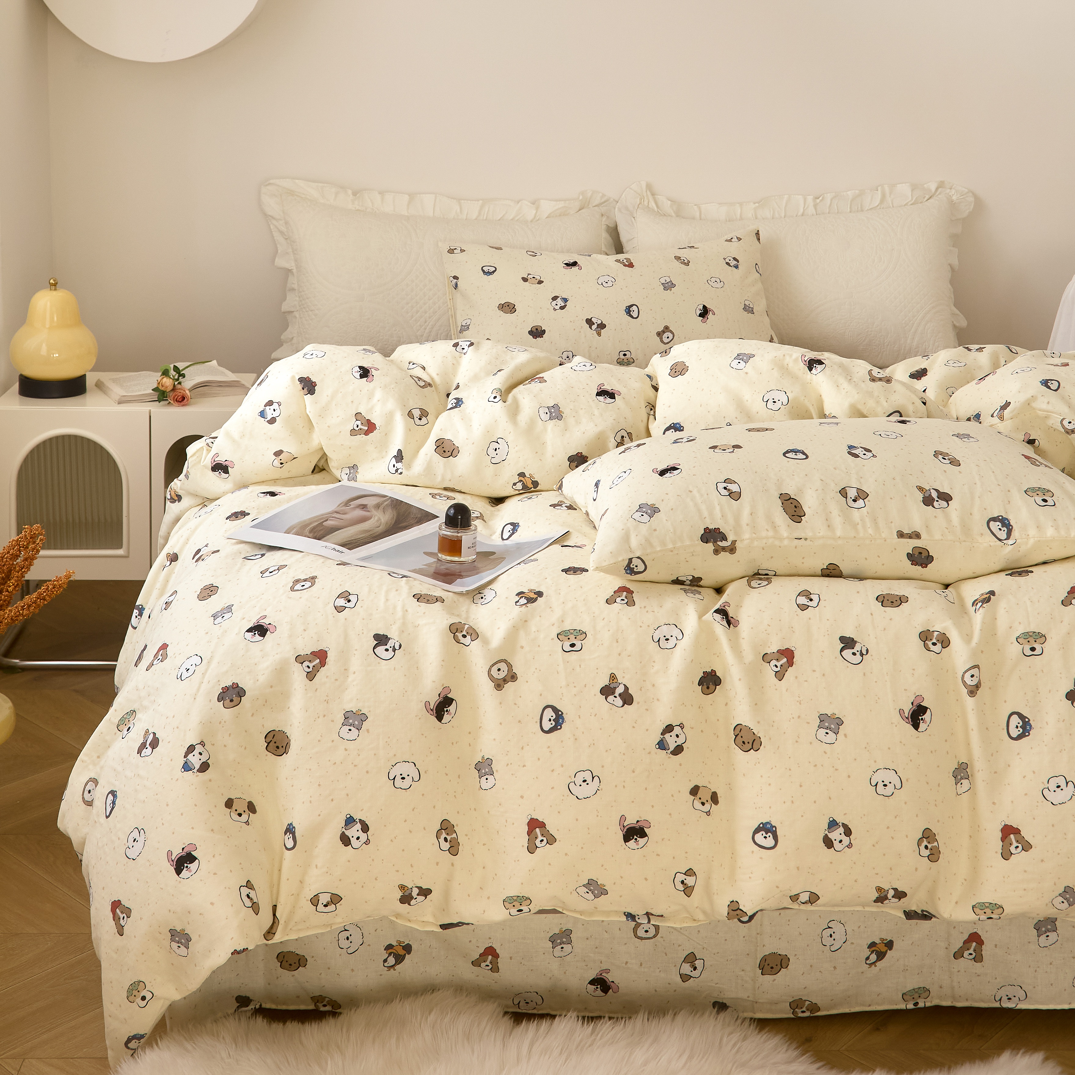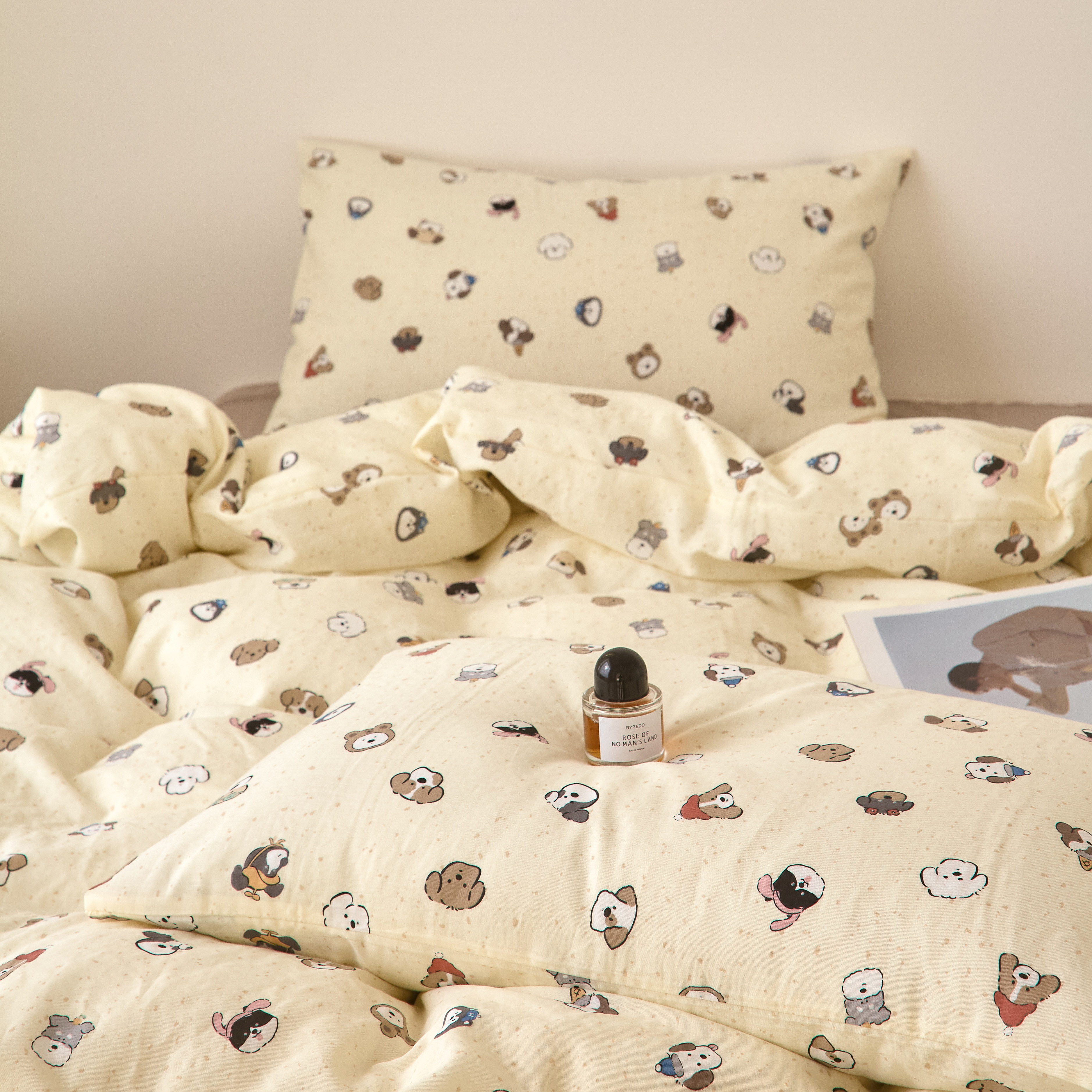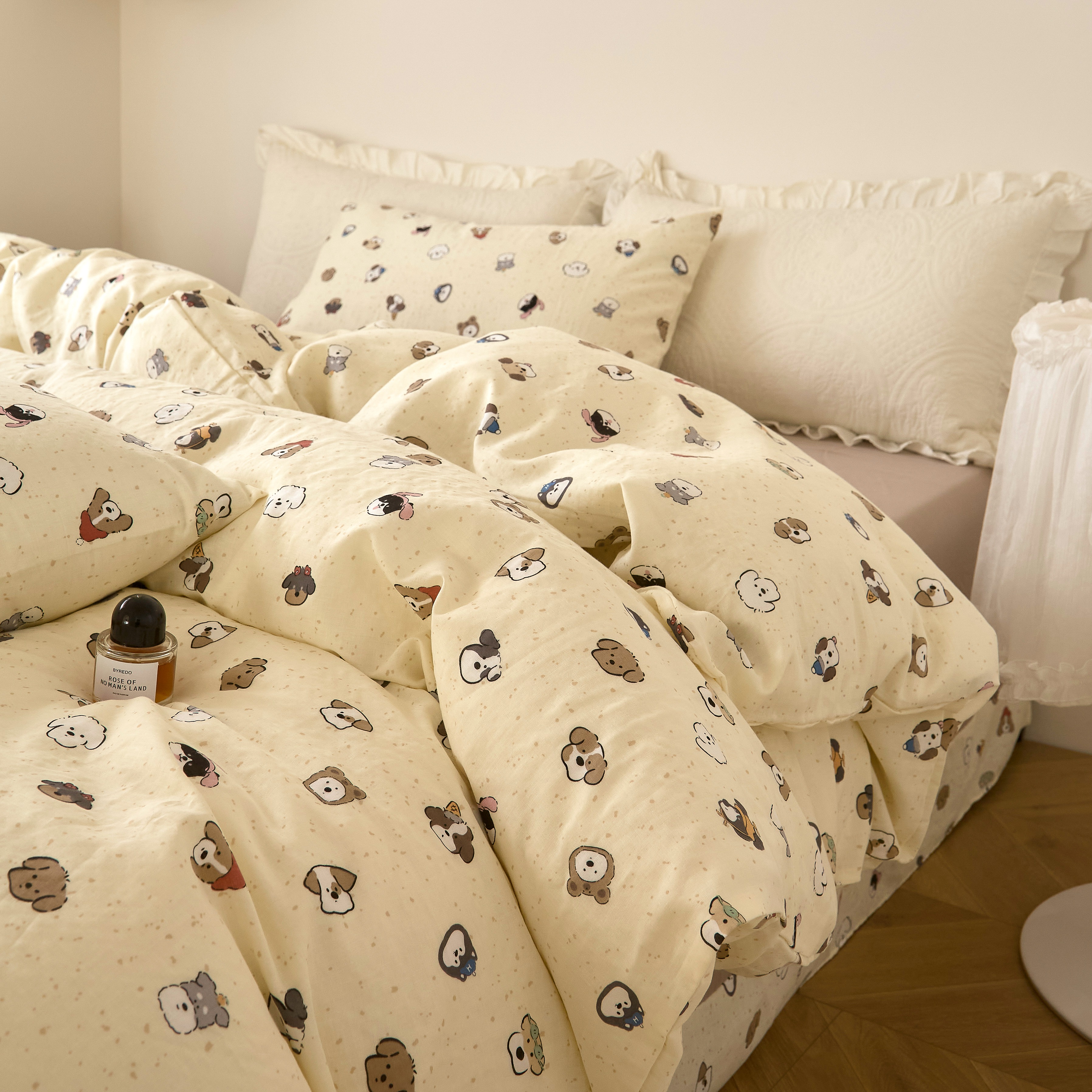 商品名称:嘉汀兰家居 2025新款圆角花边款全棉纯棉A类母婴级有氧全棉双层纱亲肤全棉小清新印花四件套 动物乐园