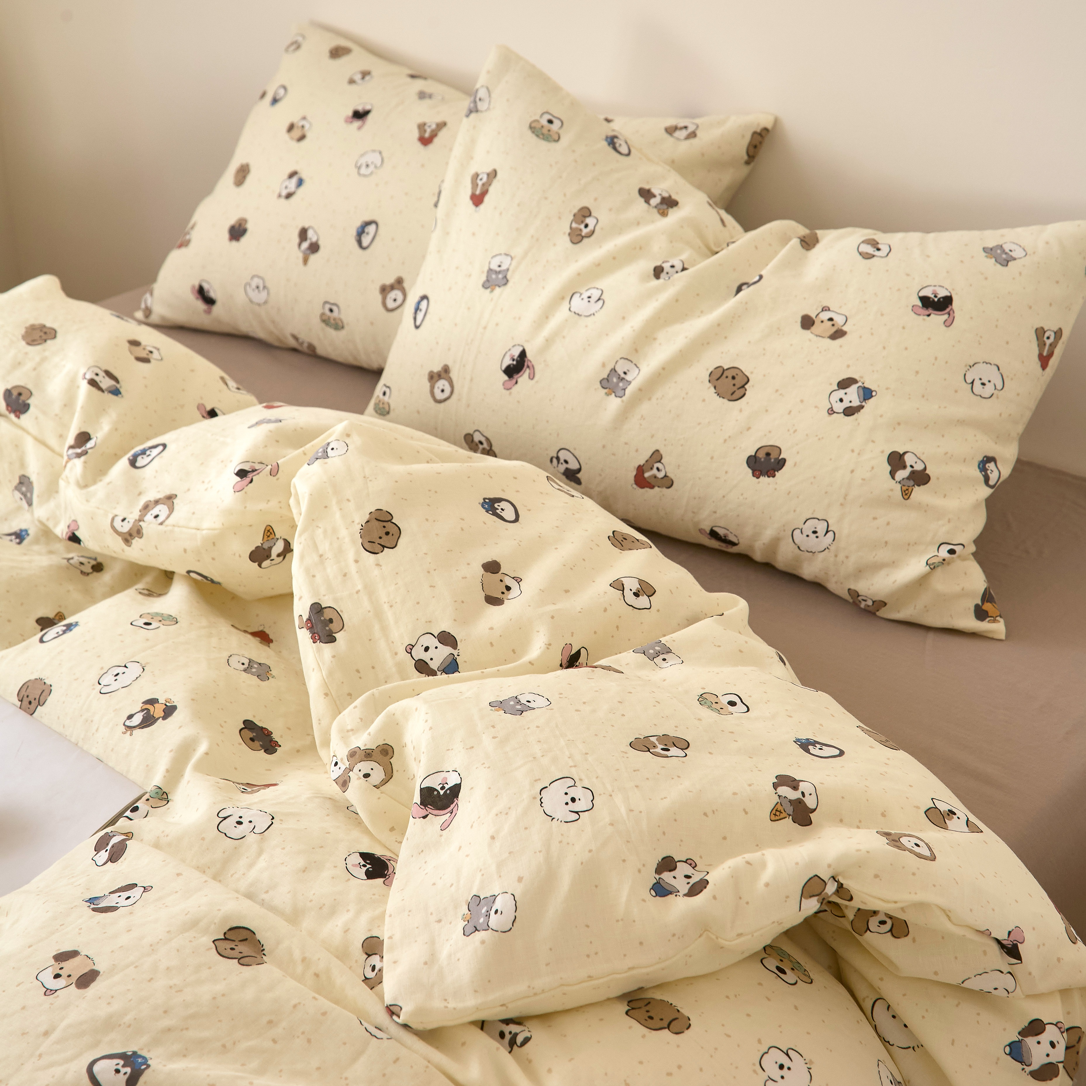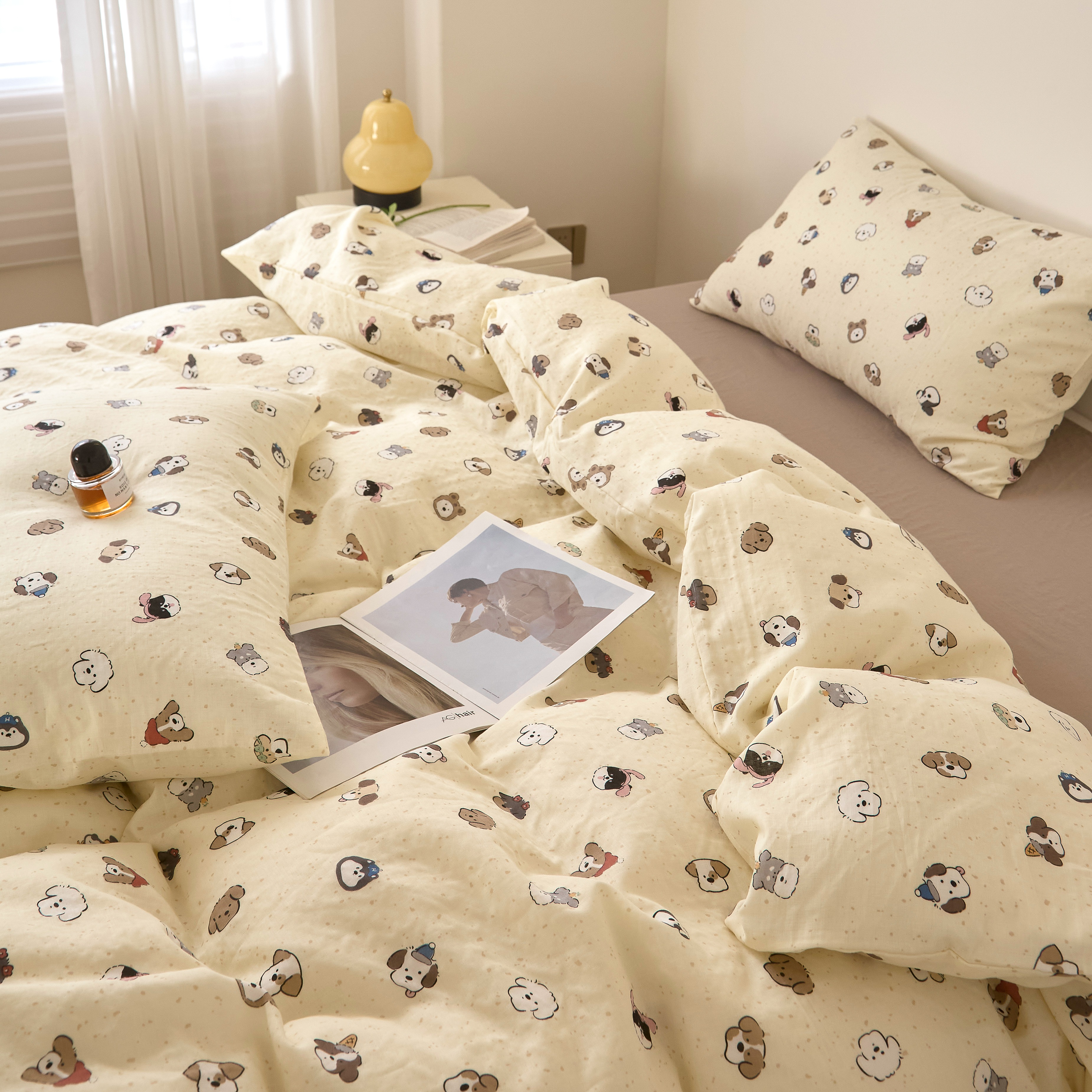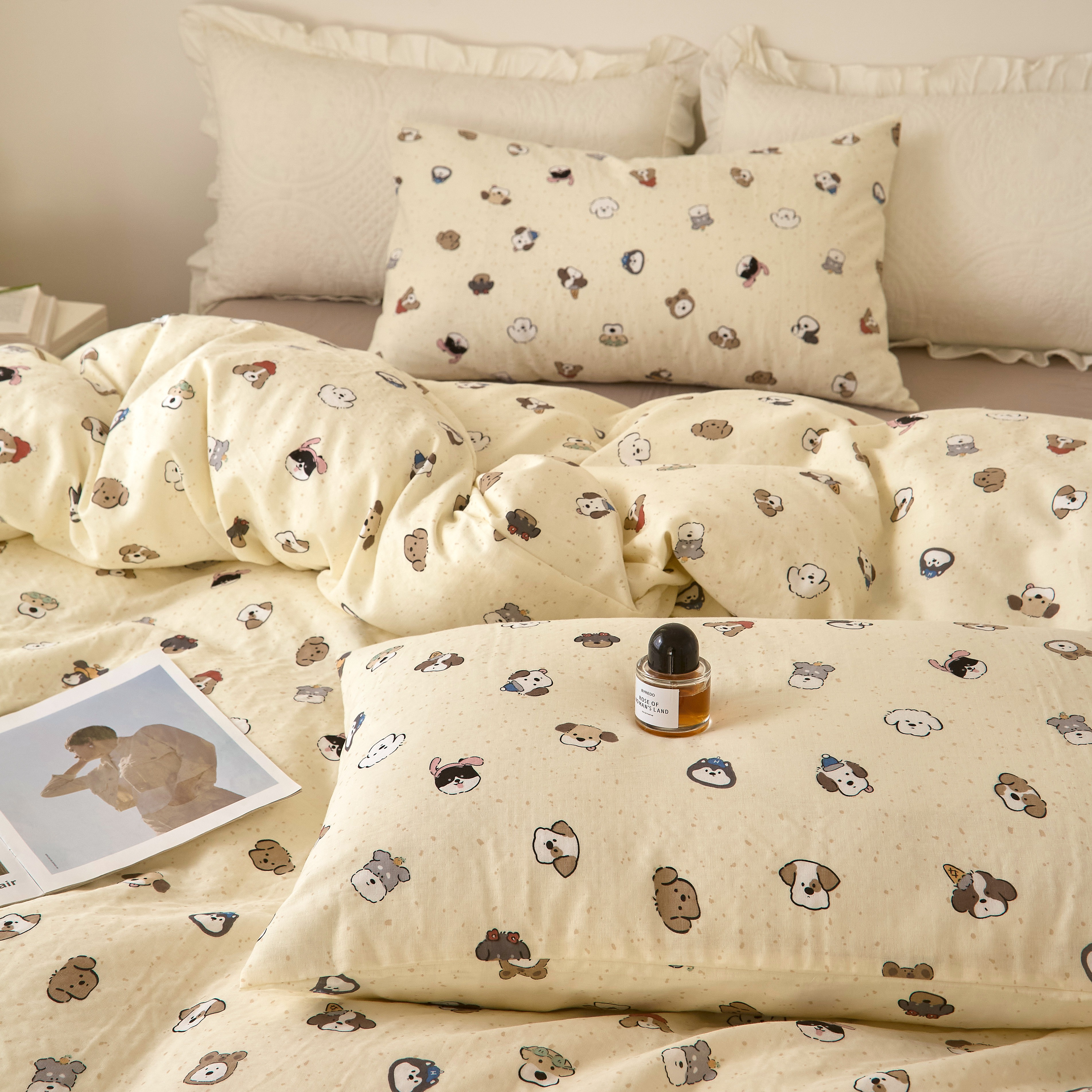 商品名称:嘉汀兰家居 2025新款圆角花边款全棉纯棉A类母婴级有氧全棉双层纱亲肤全棉小清新印花四件套 动物乐园