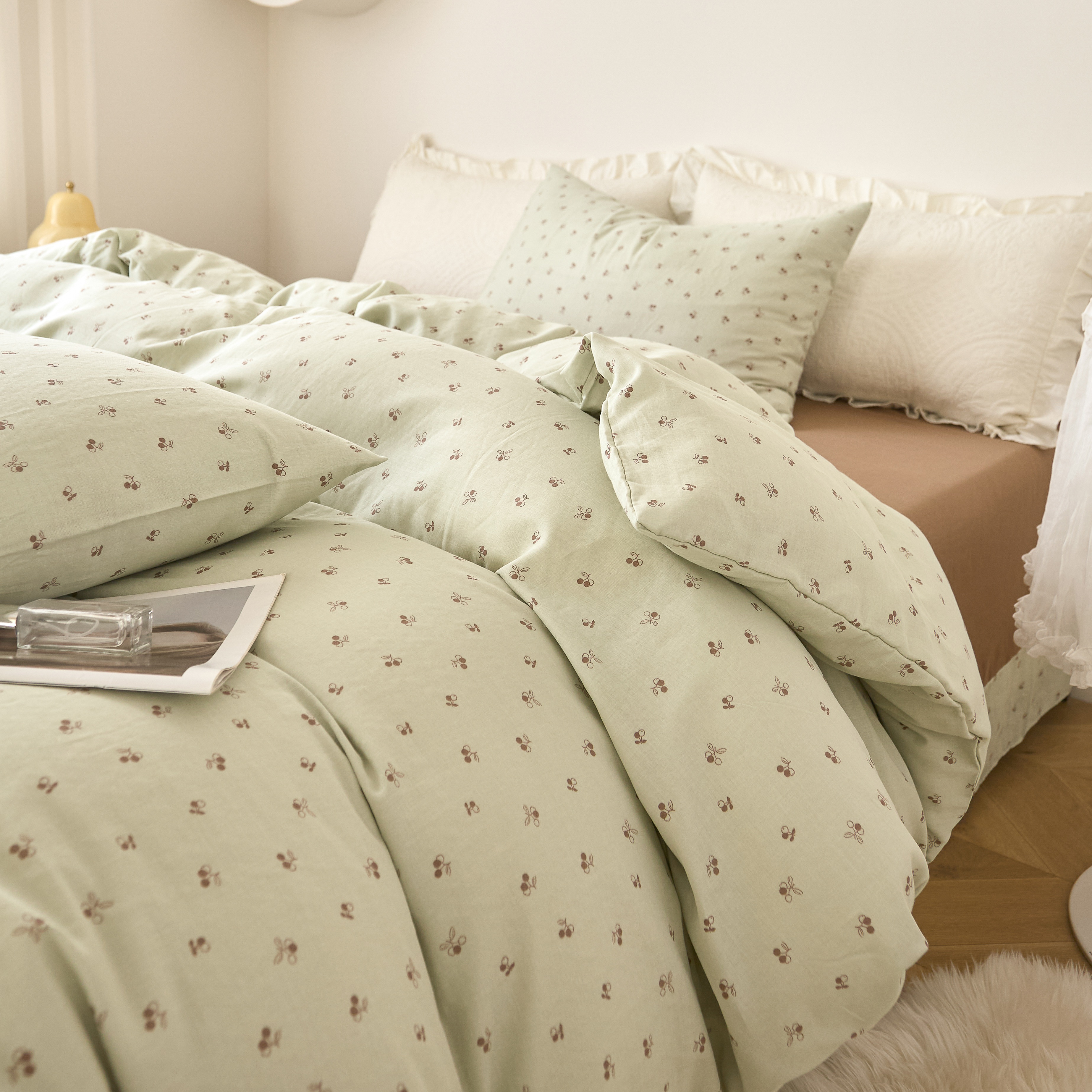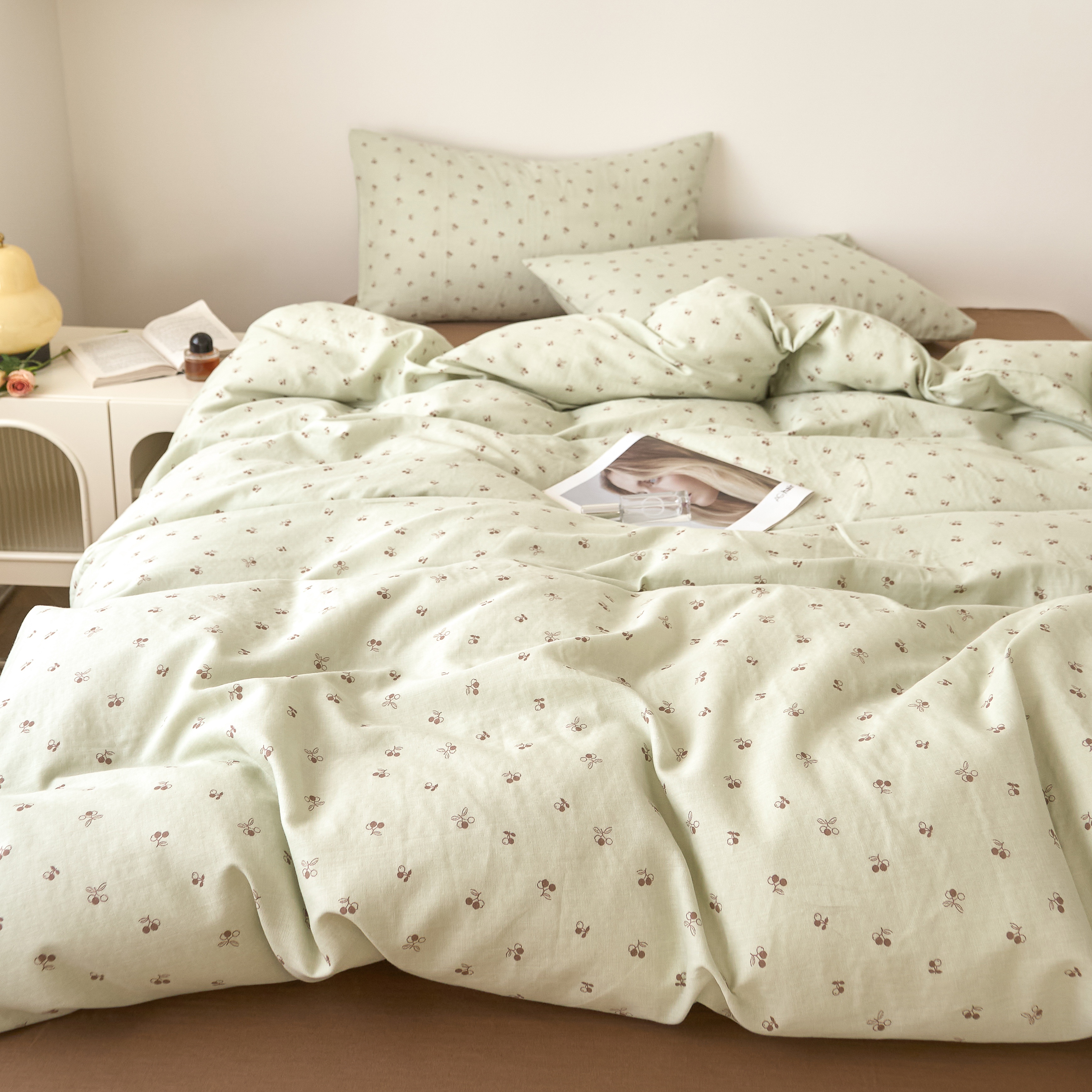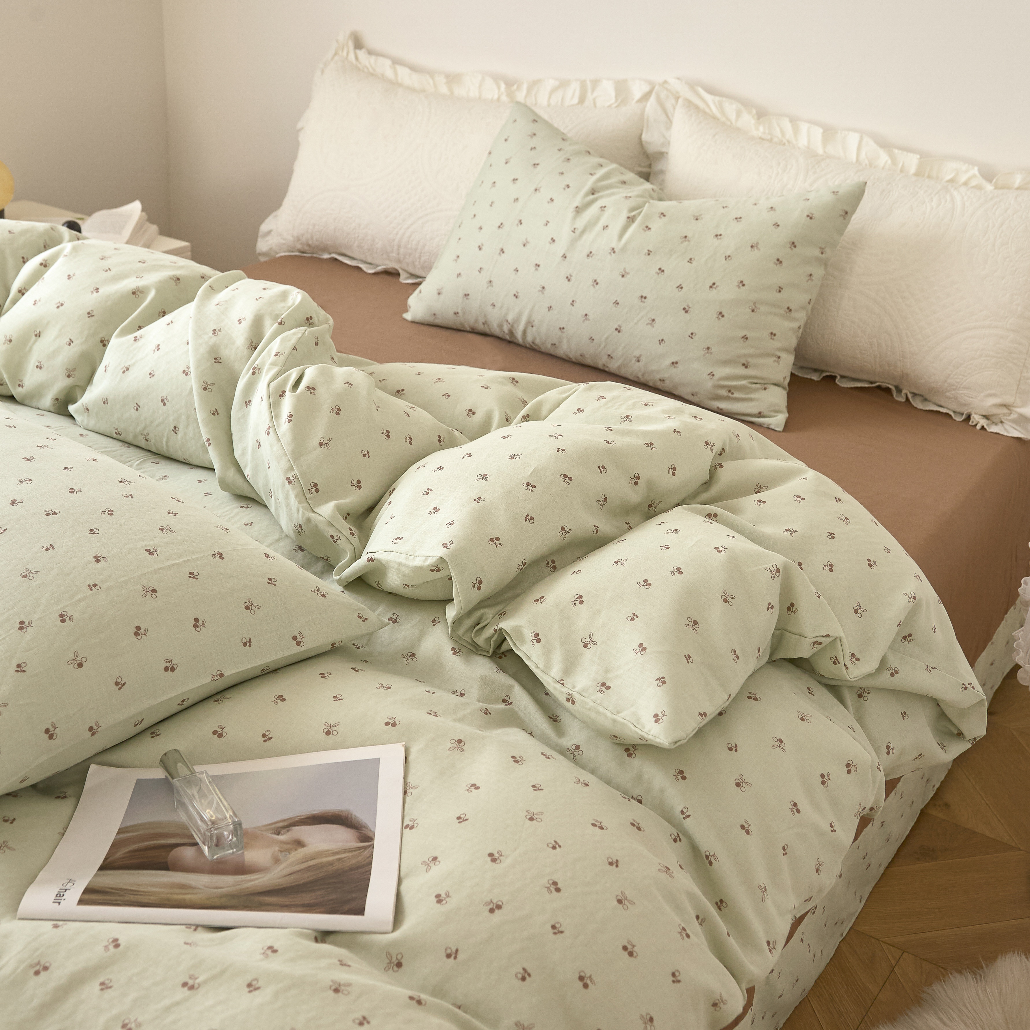 商品名称:嘉汀兰家居 2025新款圆角花边款全棉纯棉A类母婴级有氧全棉双层纱亲肤全棉小清新印花四件套 小樱桃
