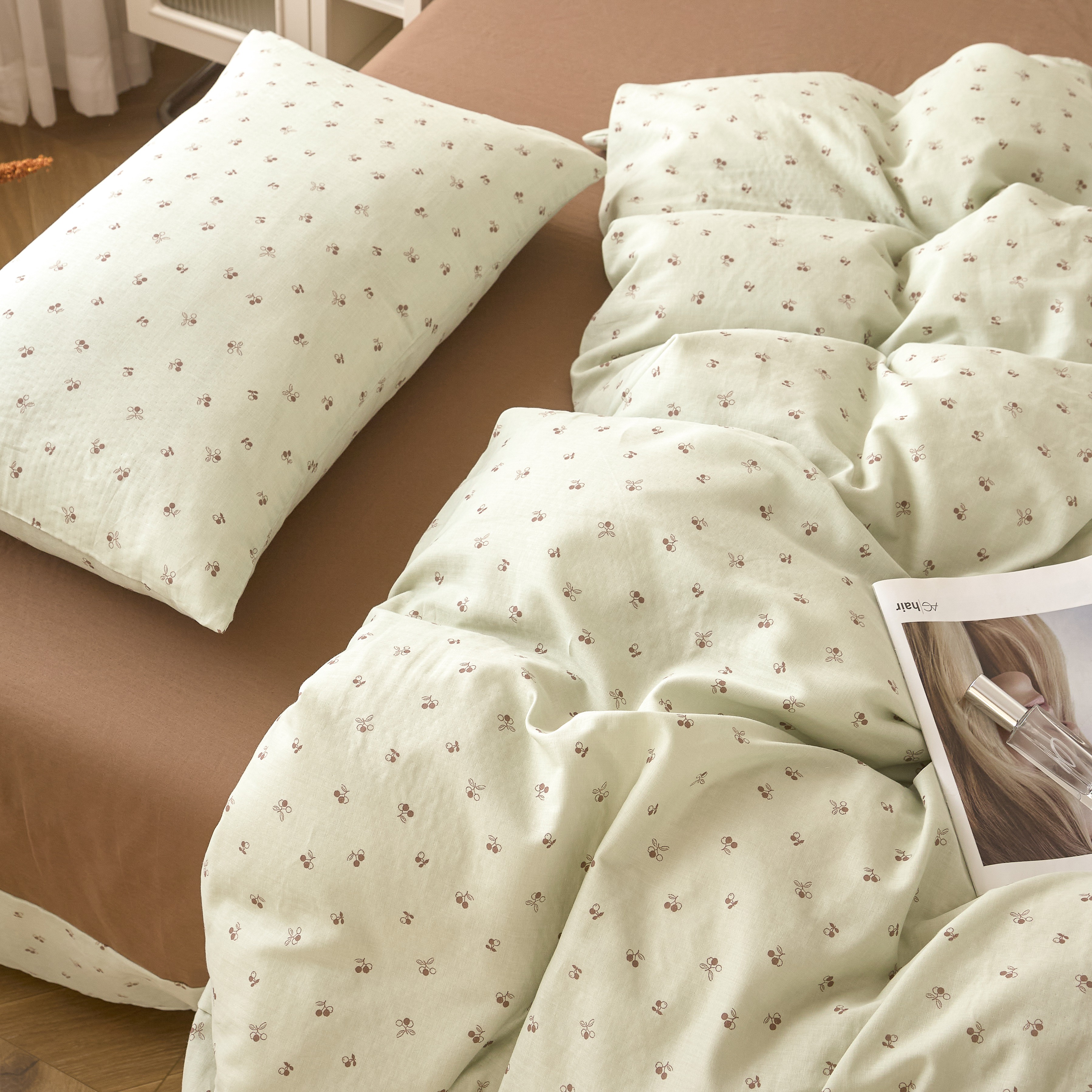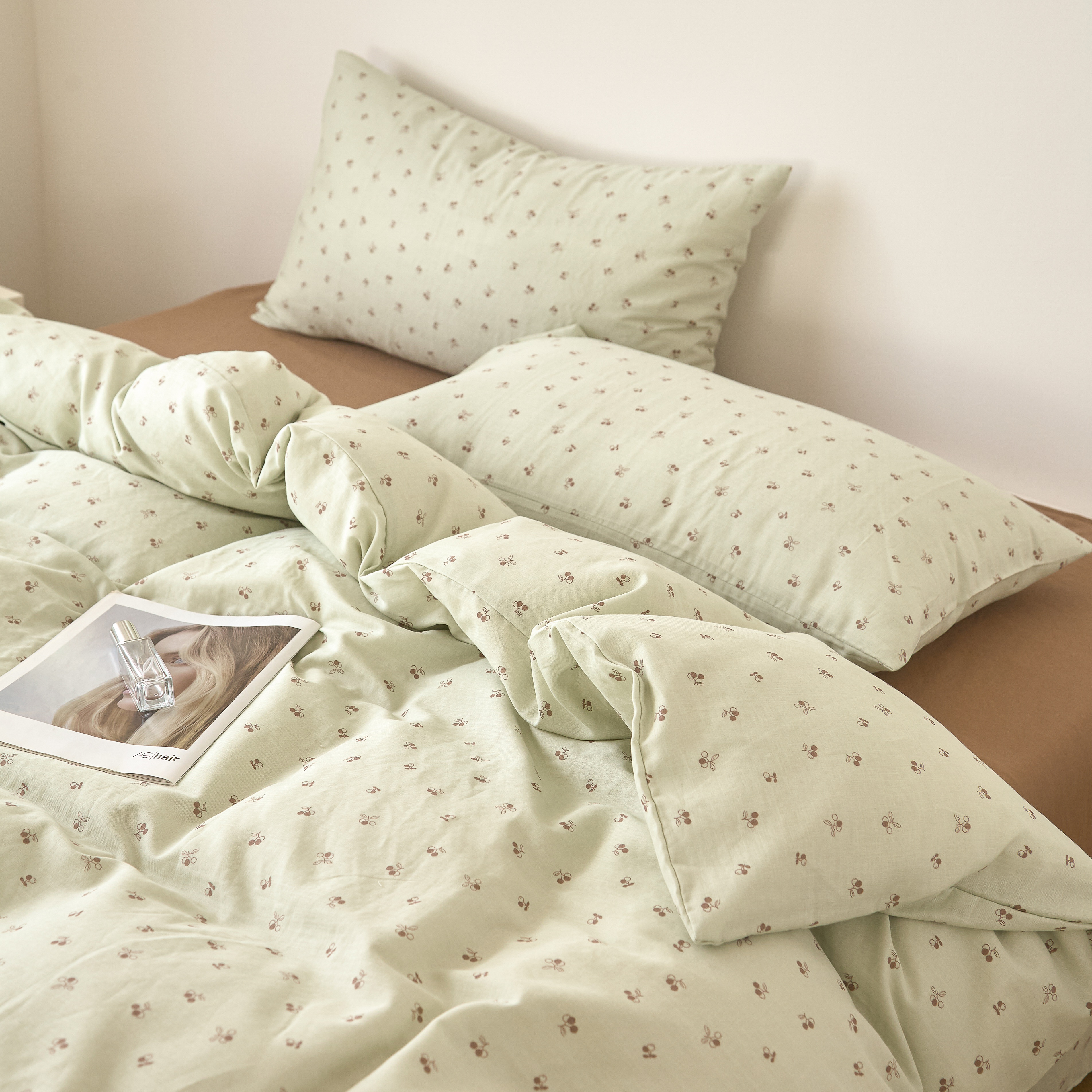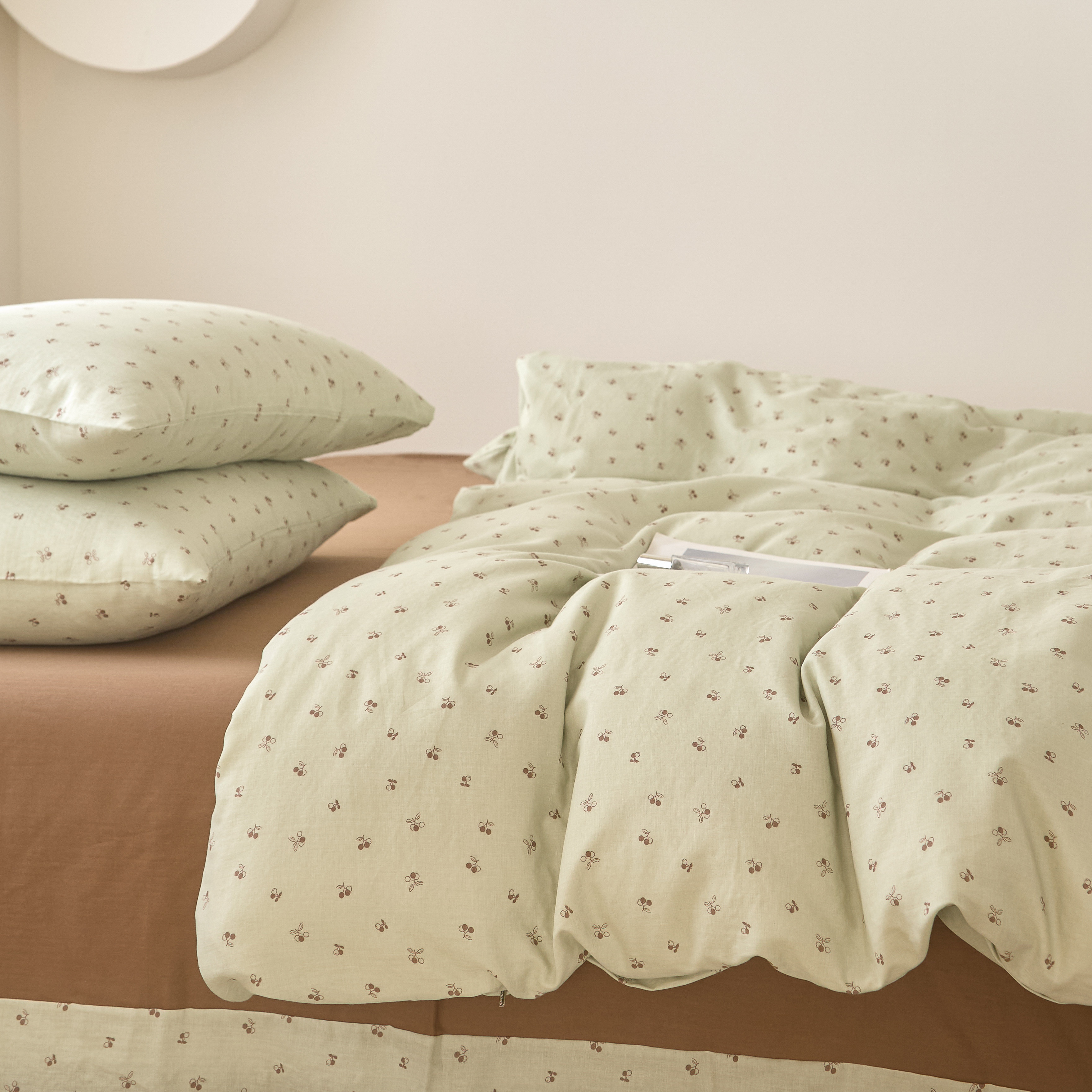 商品名称:嘉汀兰家居 2025新款圆角花边款全棉纯棉A类母婴级有氧全棉双层纱亲肤全棉小清新印花四件套 小樱桃