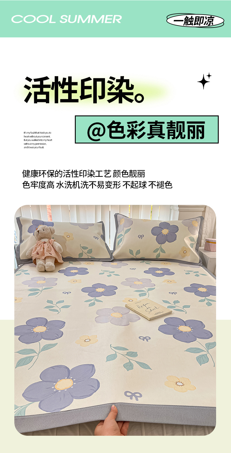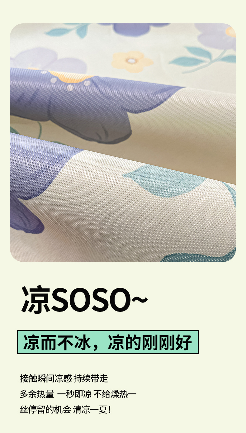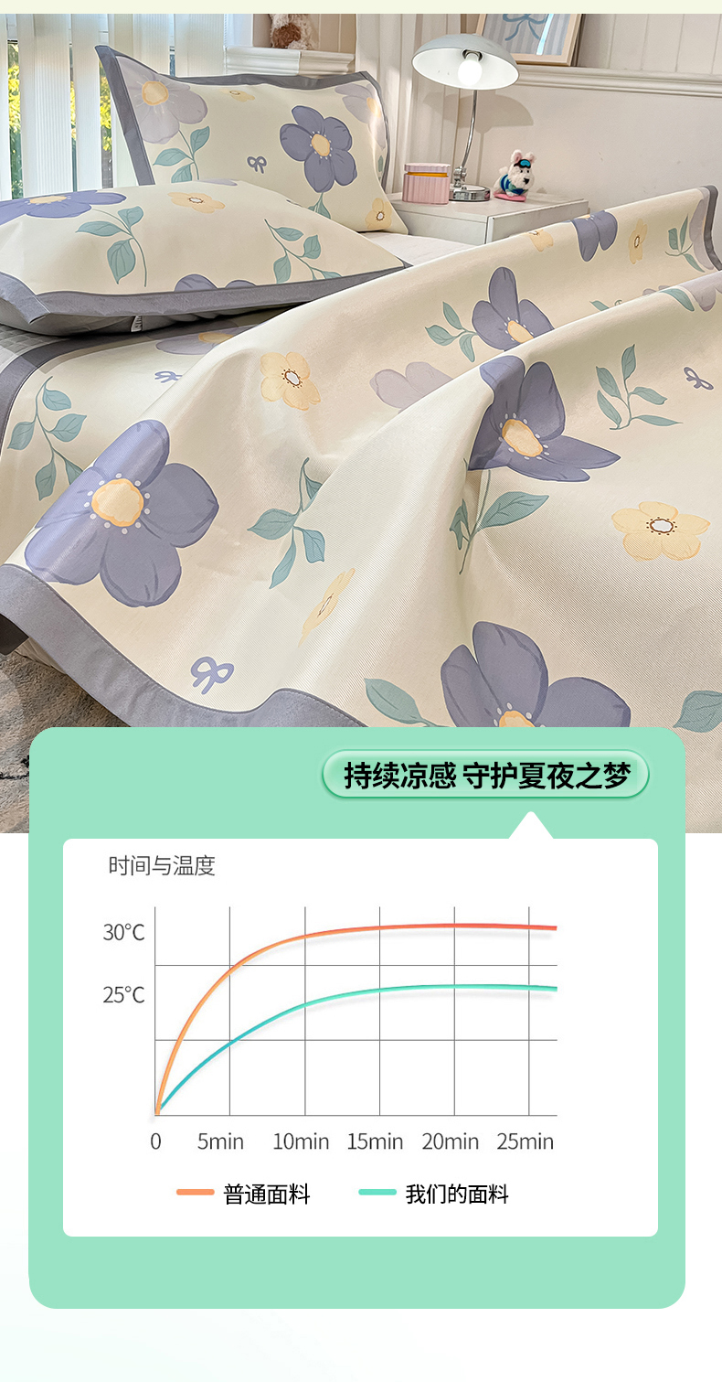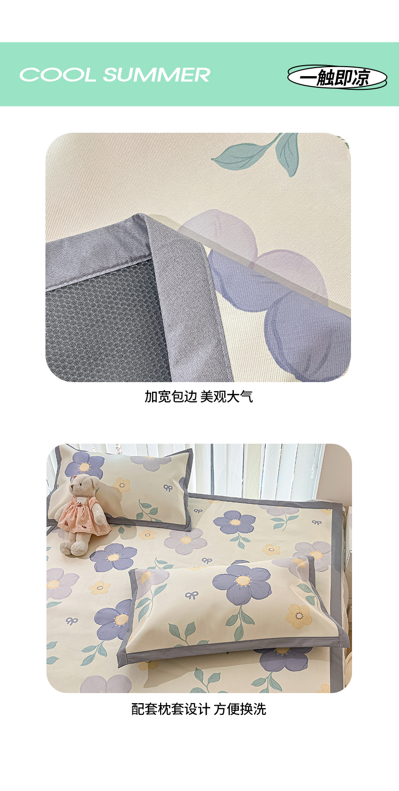 商品名称:川悦生活 2025新款600D立体宽边冰丝印花凉席 香芋花花