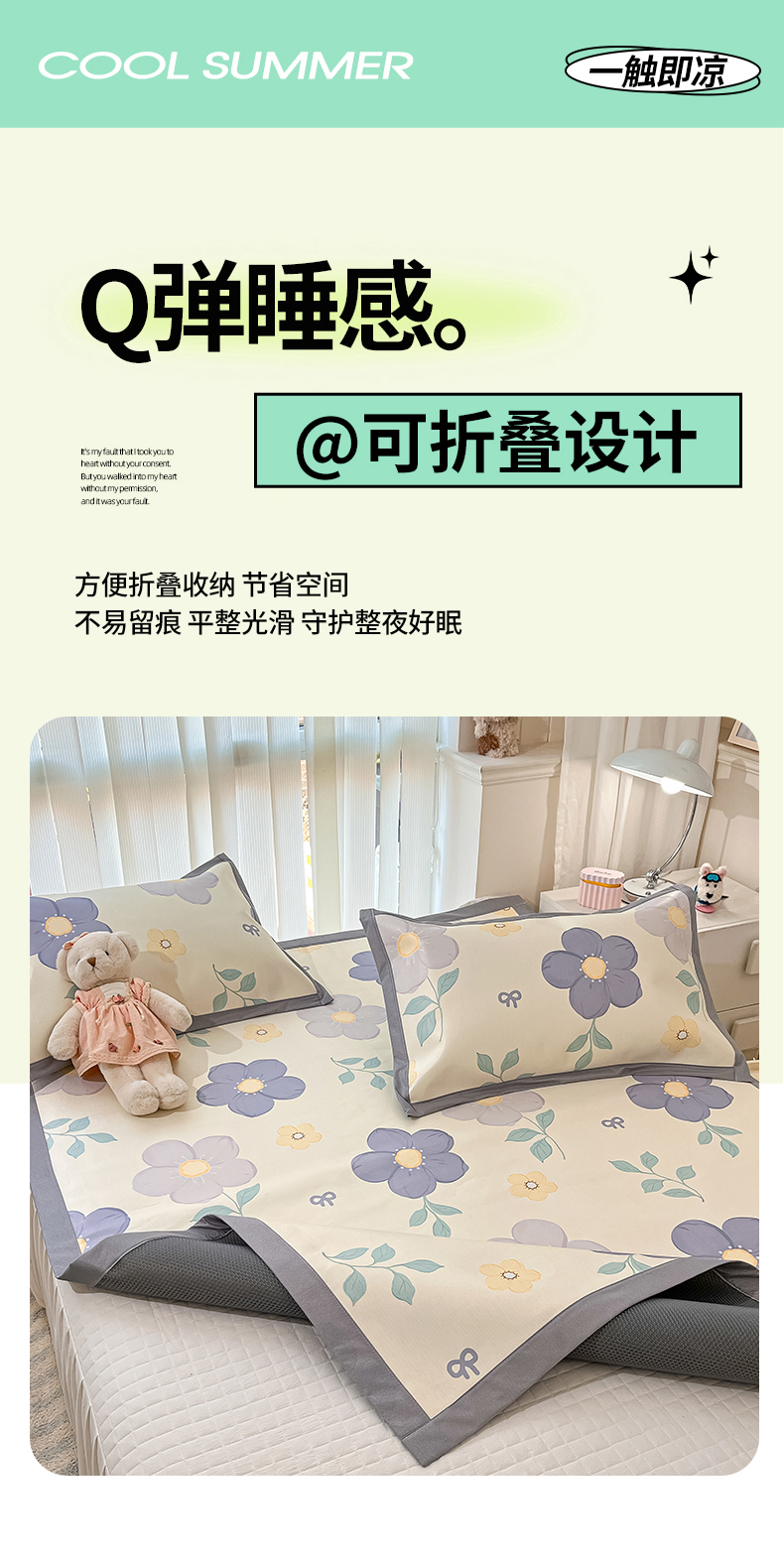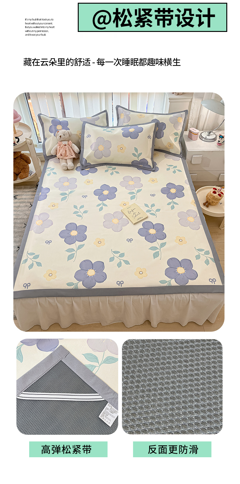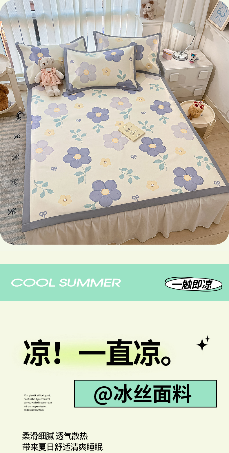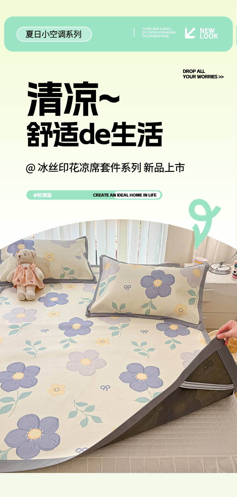 商品名称:川悦生活 2025新款600D立体宽边冰丝印花凉席 香芋花花
