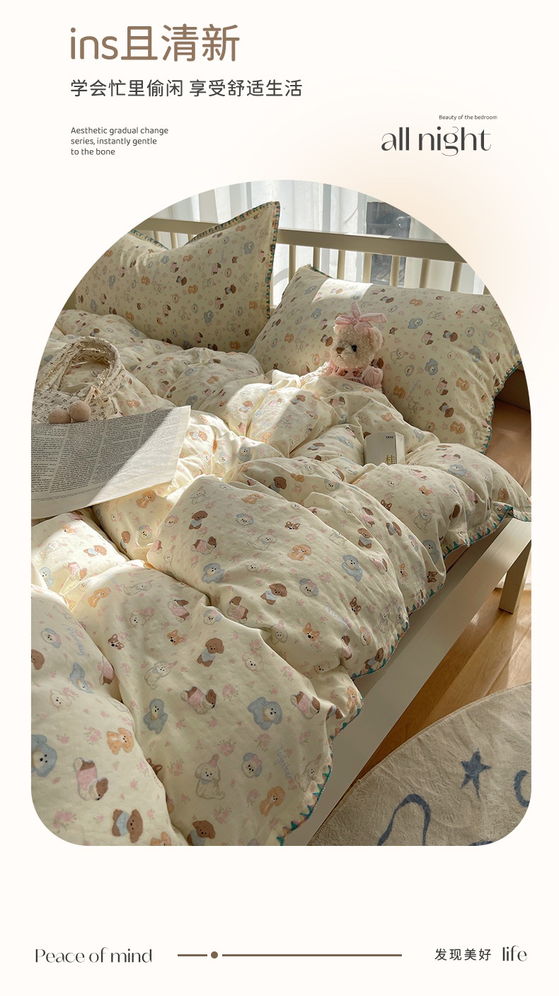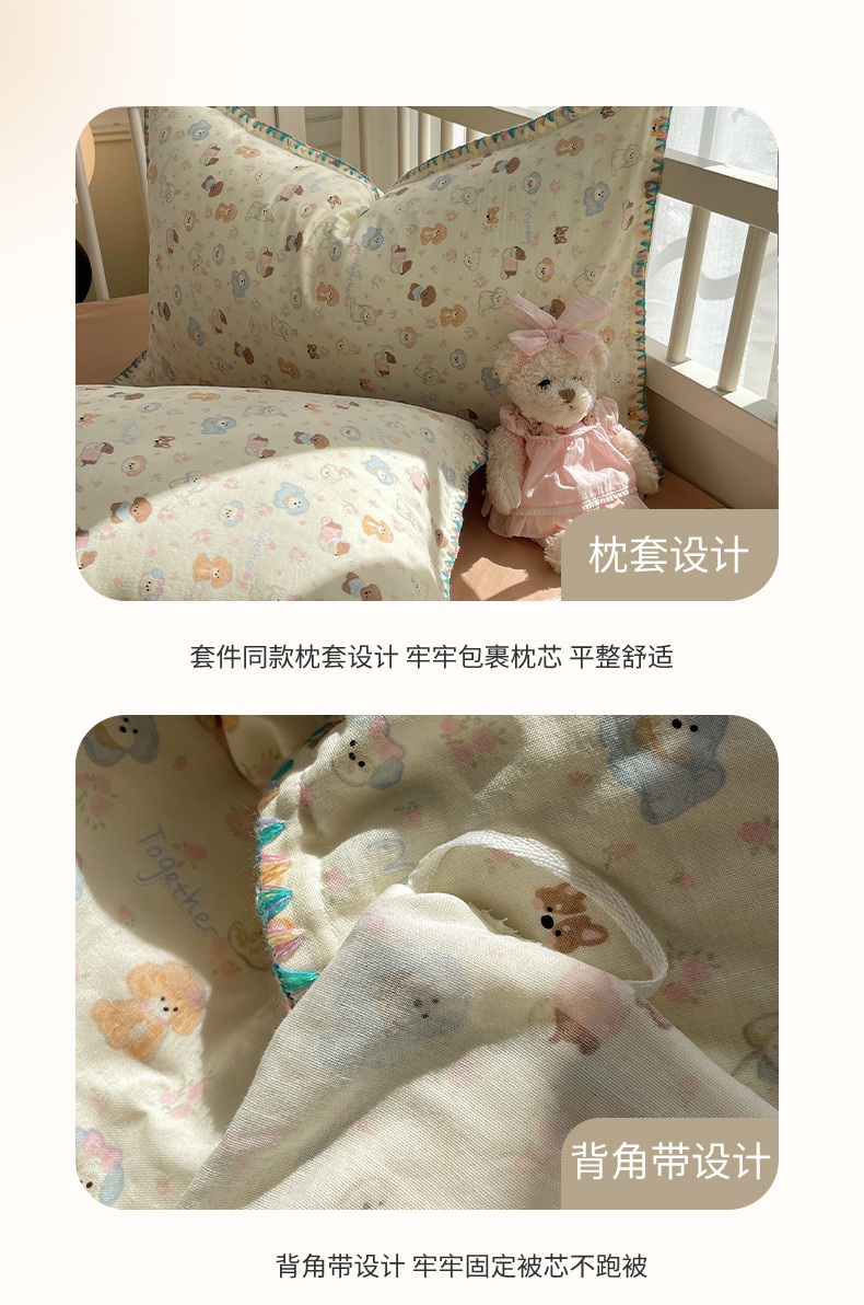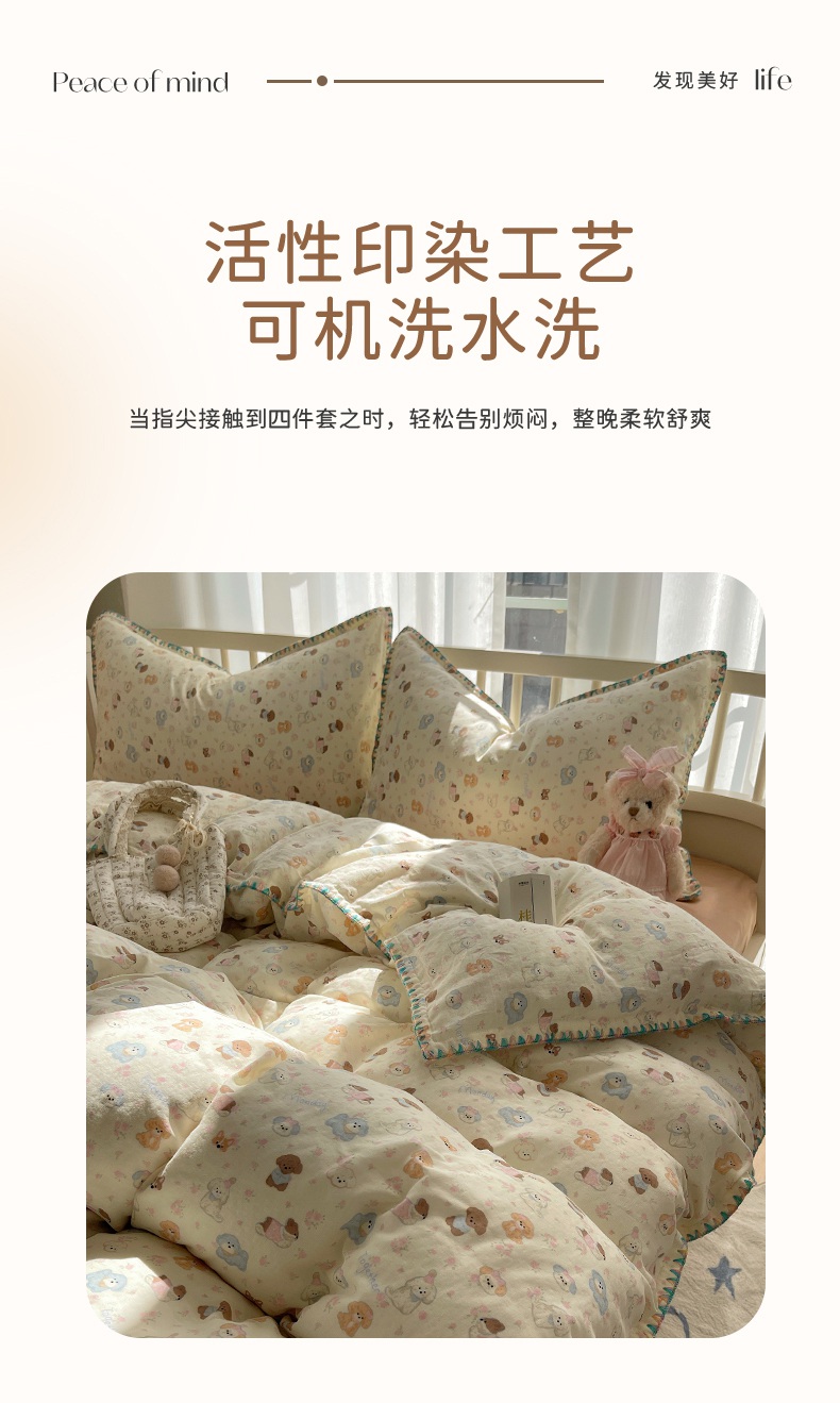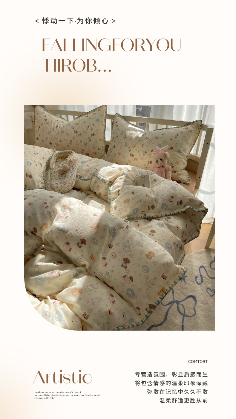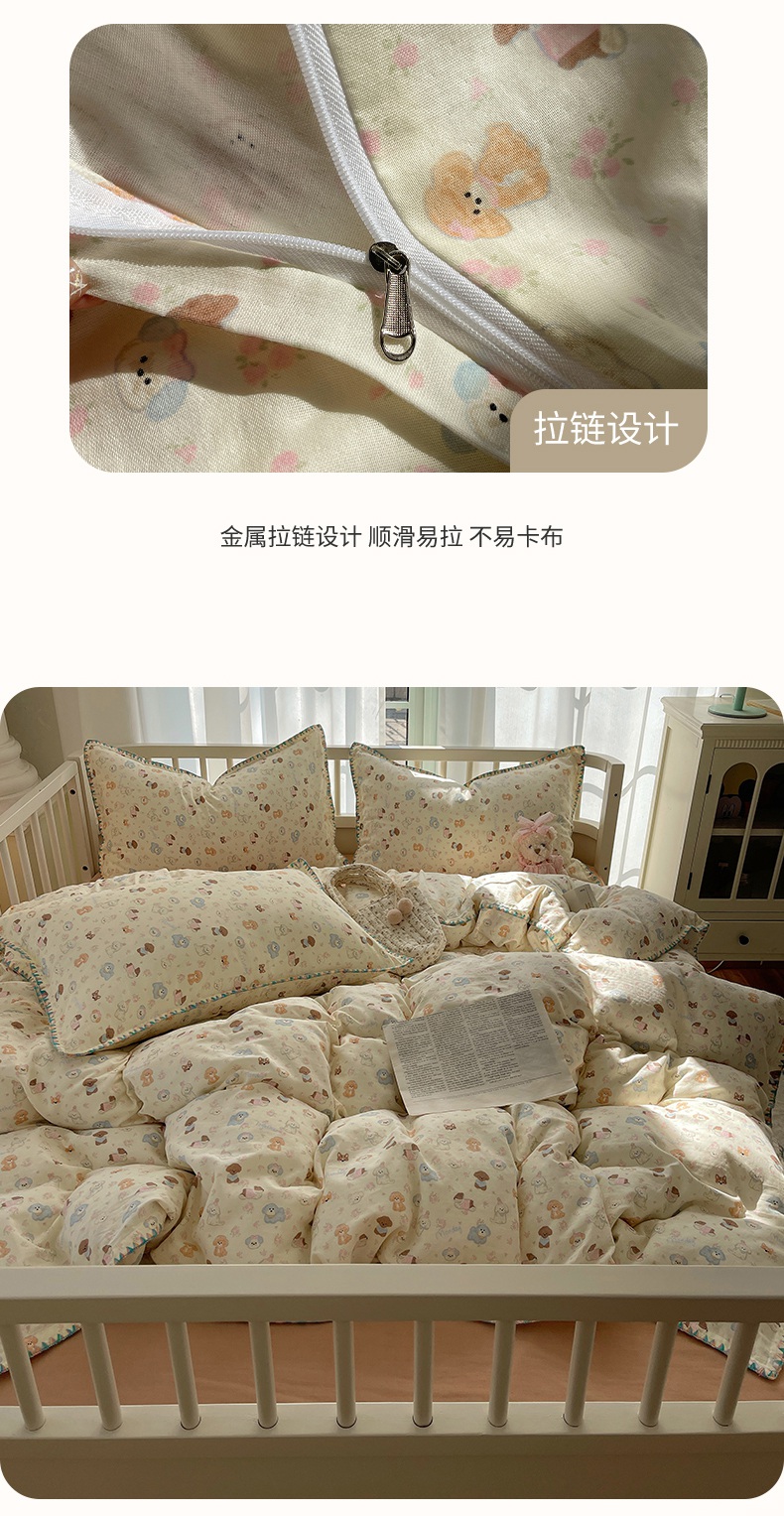 (总)瑞莱 2025夏季新款全棉纯棉有氧双层纱四件套,格子狗(粉),春日女孩,格子狗(蓝),功夫熊猫,何枝小兔,花园小狗,萝莉兔,萌萌狮,梦幻花园兔,少女象(绿),熊孩子,原宿小兔
