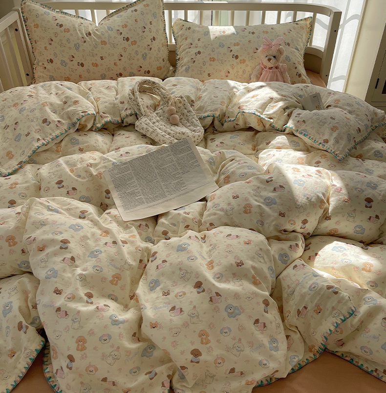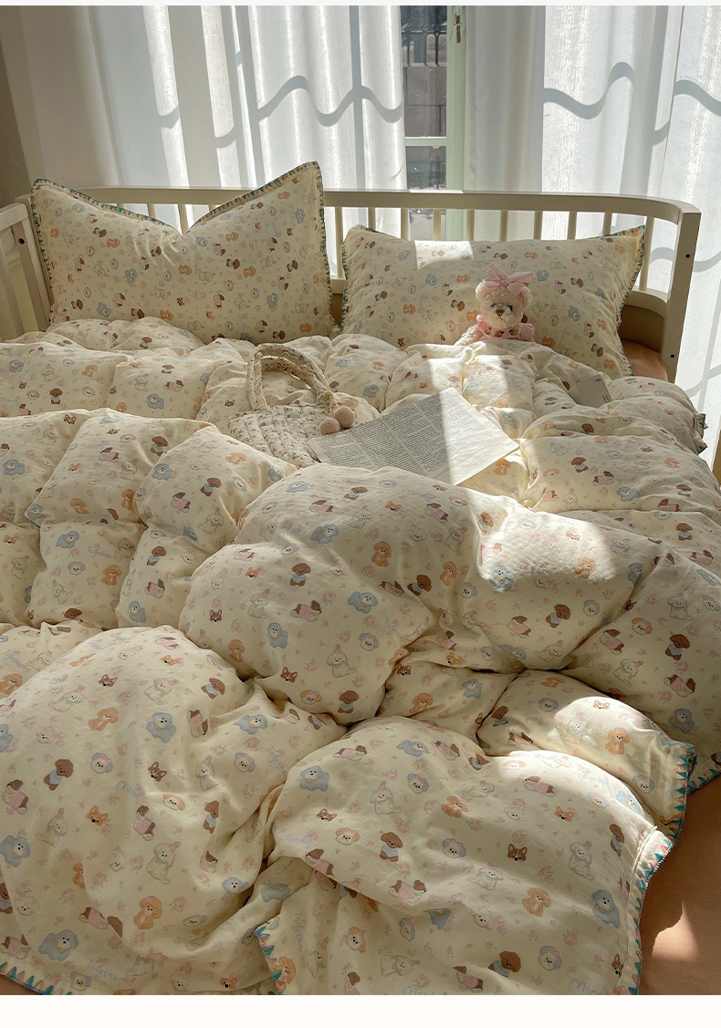 商品名称:瑞莱 2025新款13372全棉有氧双层纱四件套 狗狗派对