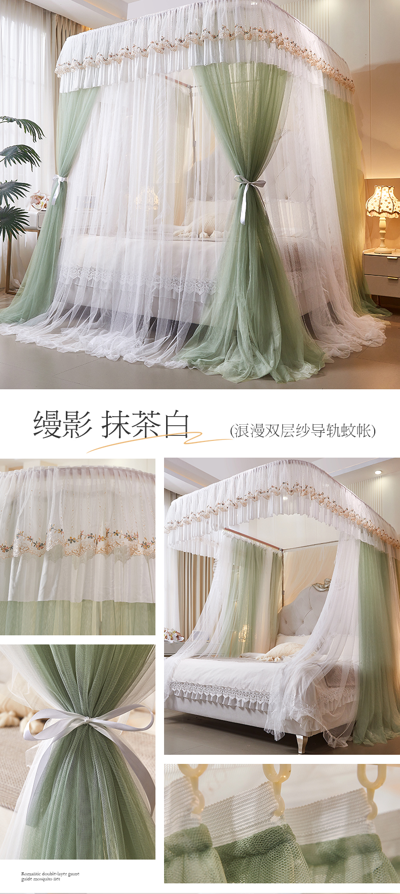 商品名称:艺利轩 2025新款双层纱导轨蚊帐 缦影 抹茶白