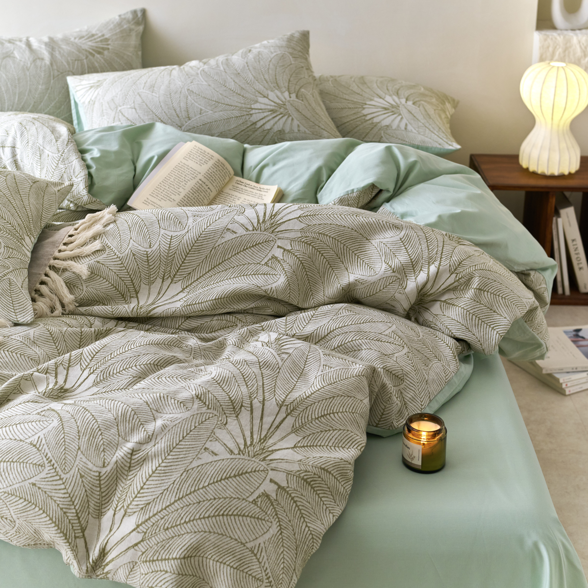 当前位置: 91家纺网 > 商品网购 > 床品套件 > 四件套 > 全棉普通四件套 > 金丝鸟2025新款全棉纯棉三层纱提花四件套 耶鲁斯绿