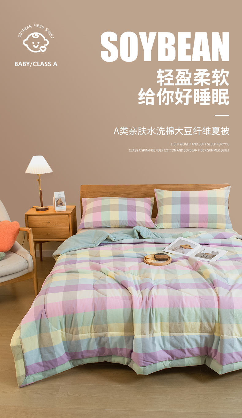 慕木家纺 2025春夏新款A类亲肤水洗棉大豆纤维夏被夏凉被空调被 诺卡