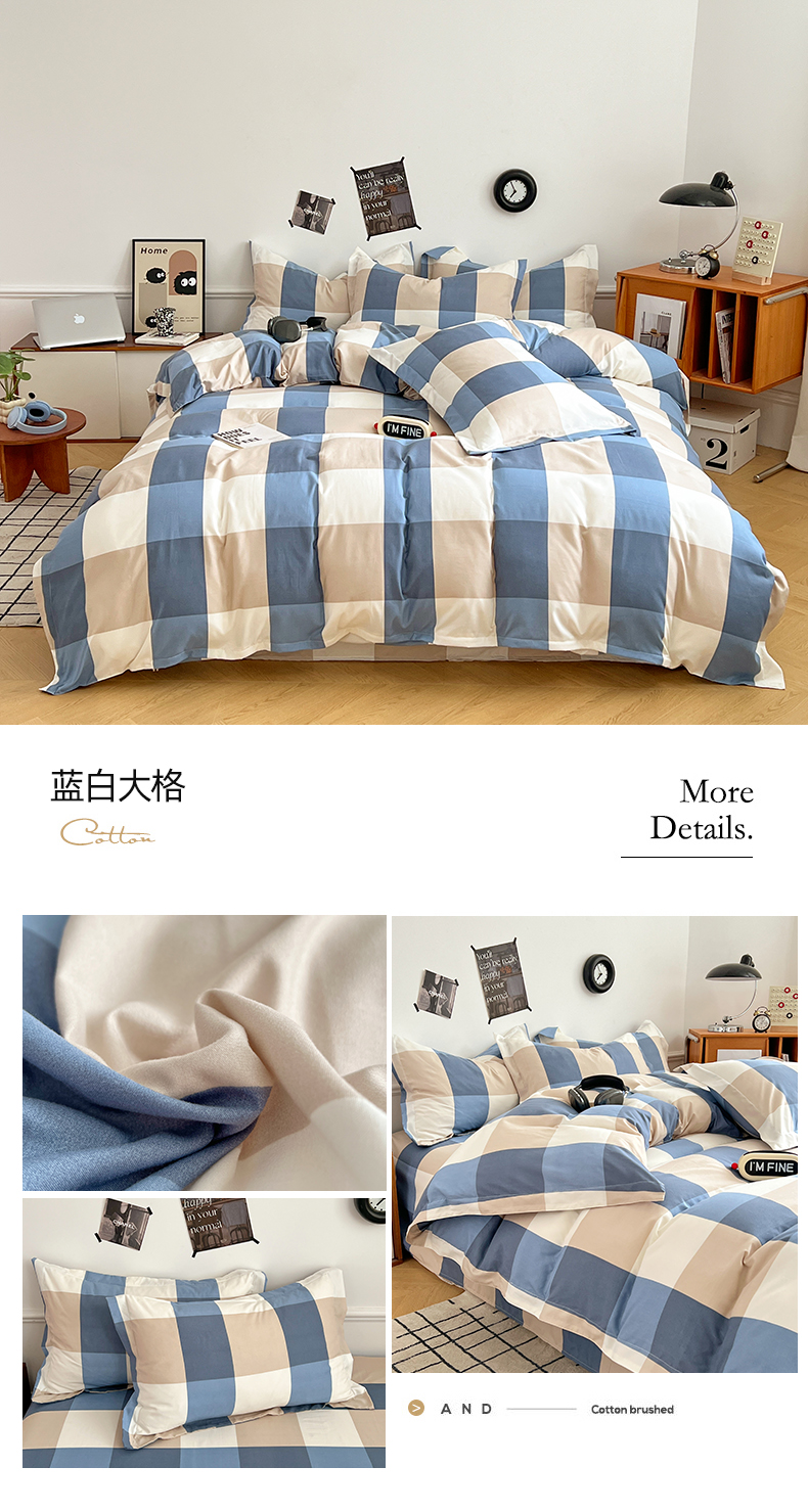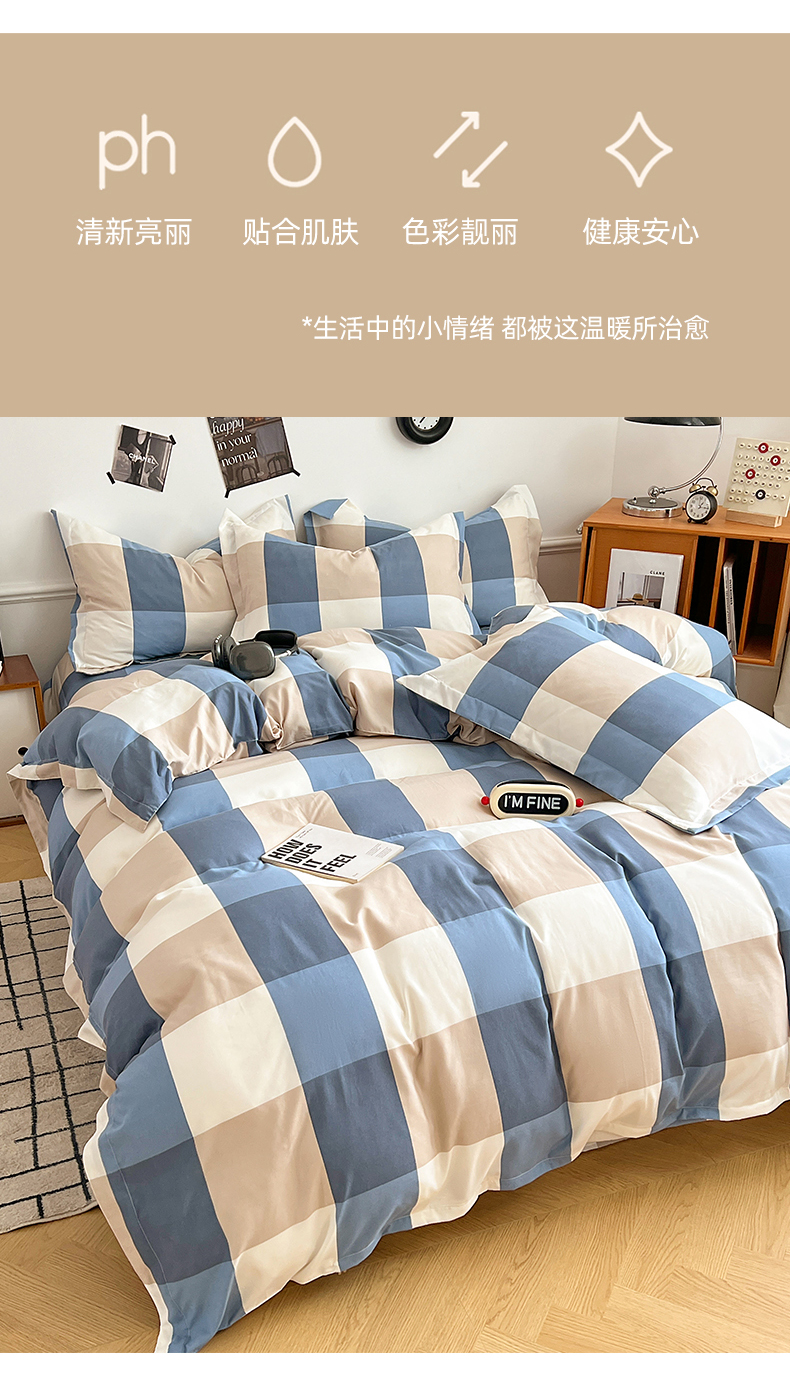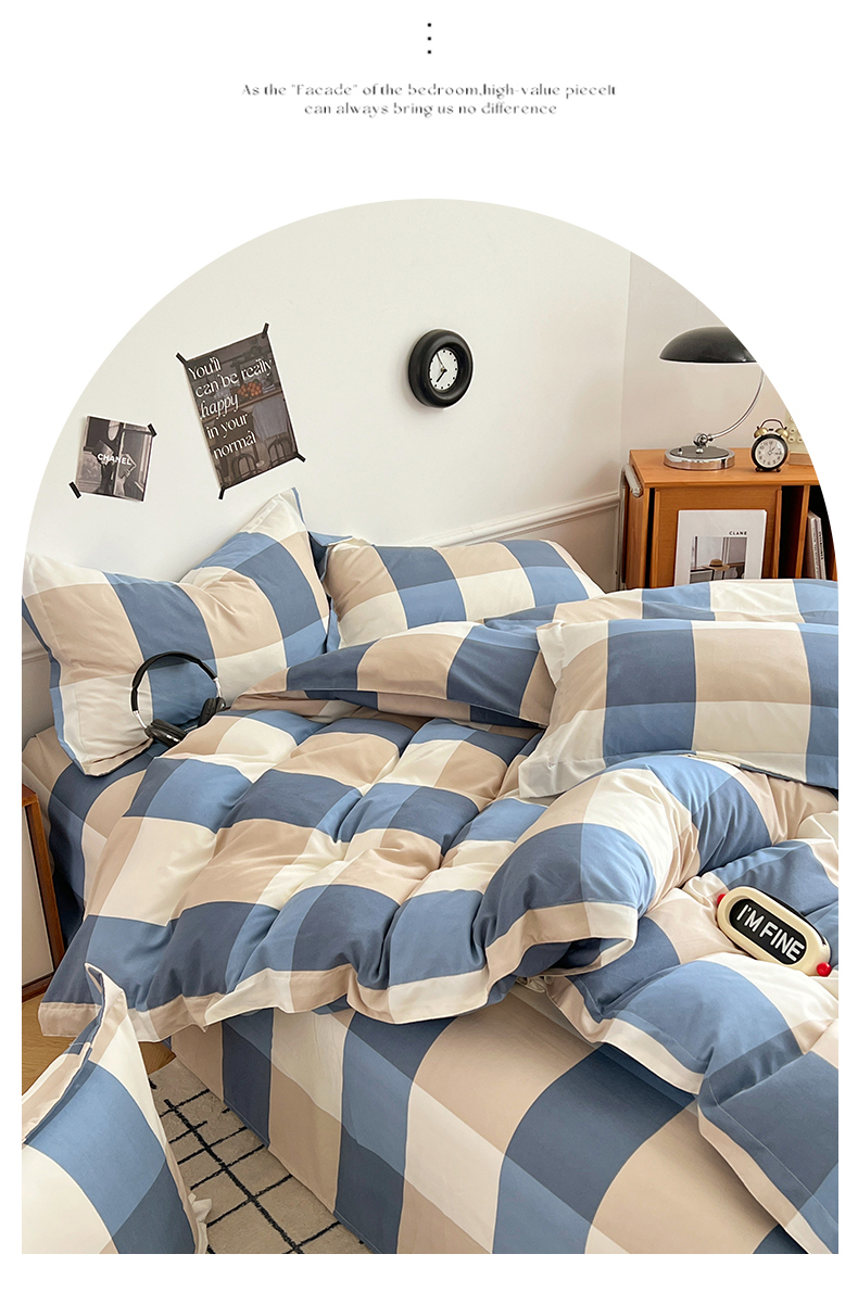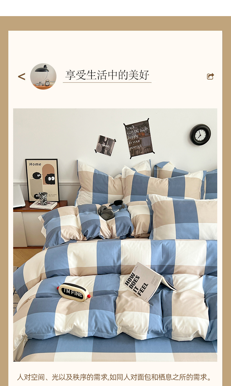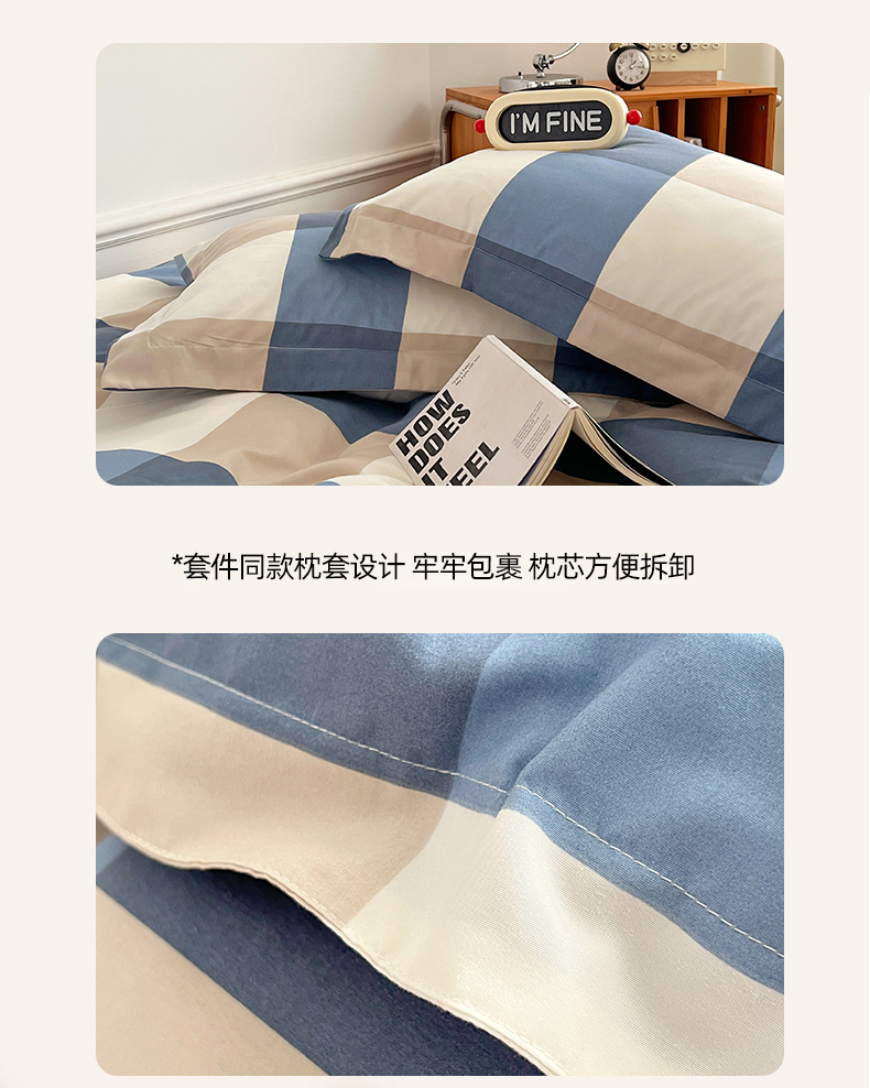 当前位置: 91家纺网 > 商品网购 > 床品套件 > 四件套 > 普通磨毛四件套 > 罗菲尼酒店用品 2025新款磨毛亲肤飞边款四件套 蓝白大格