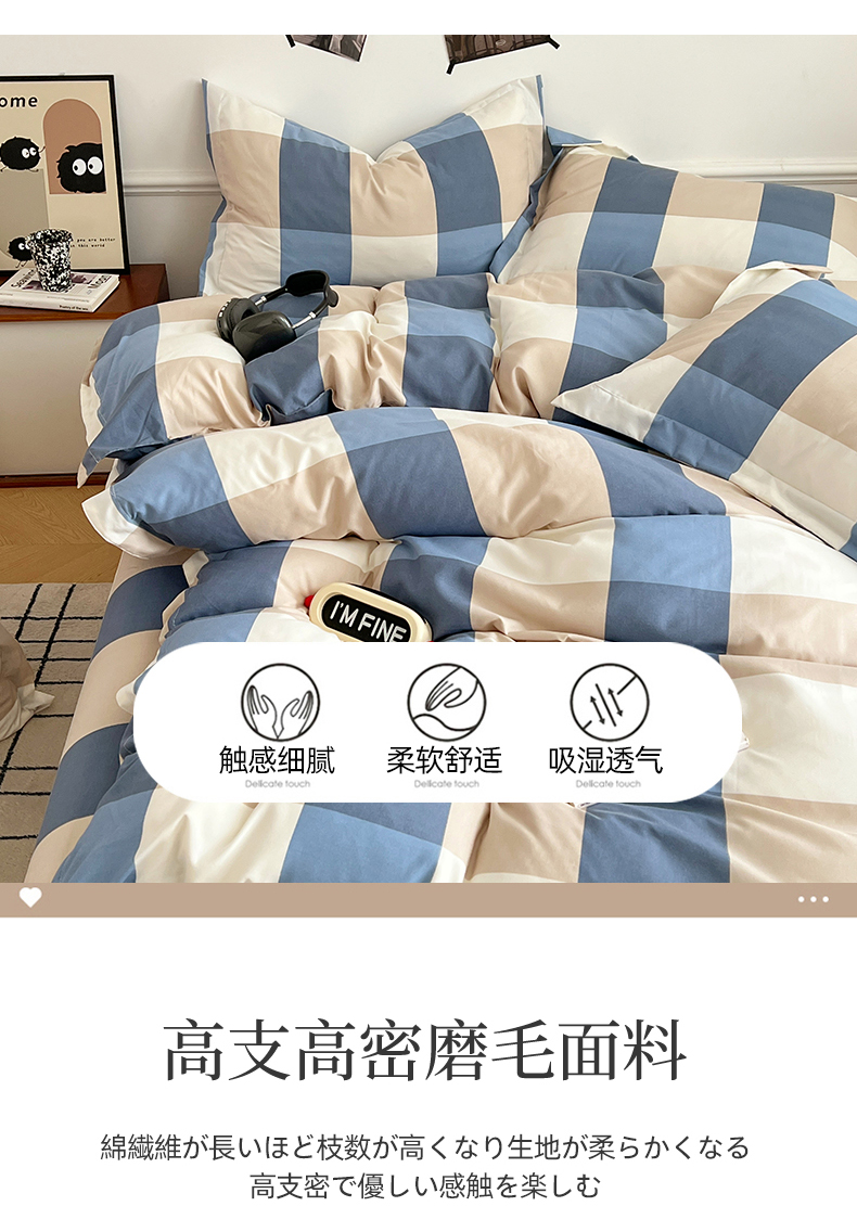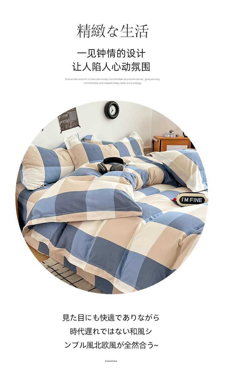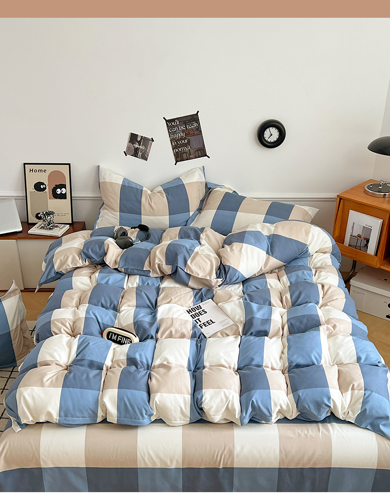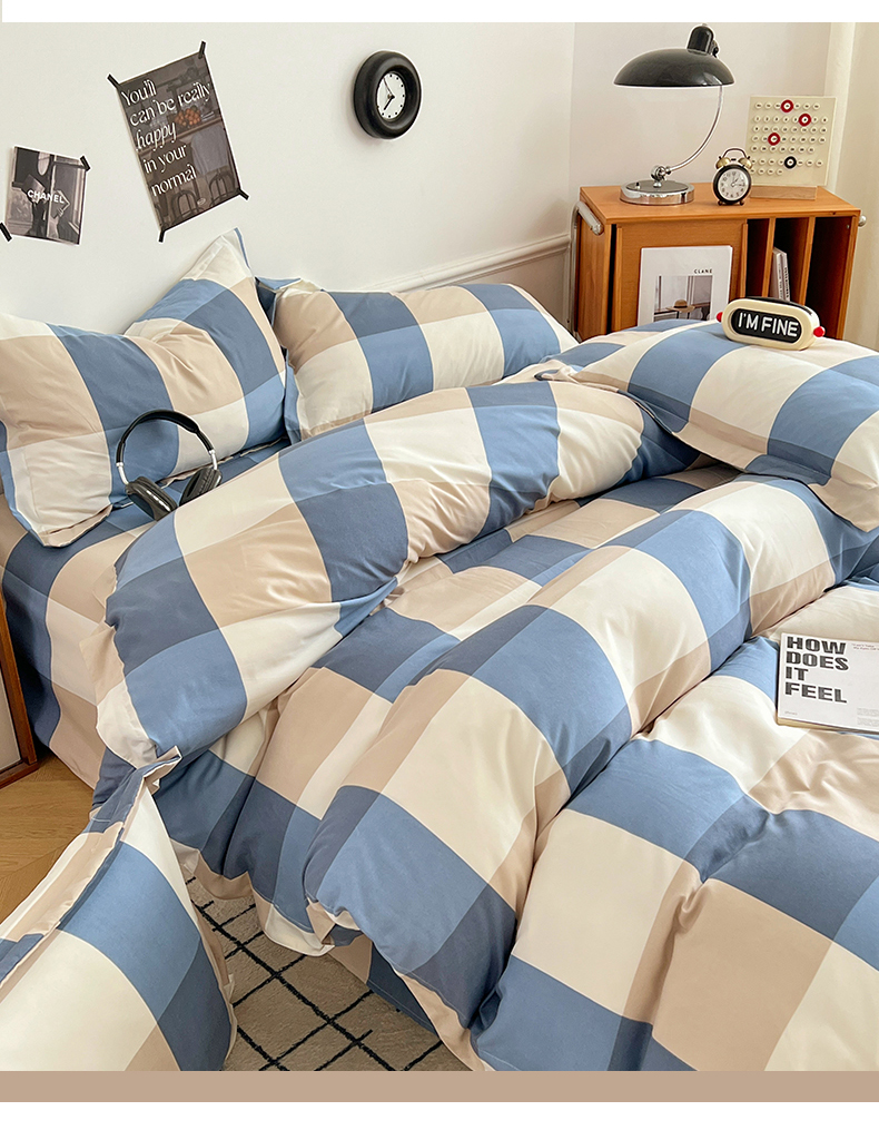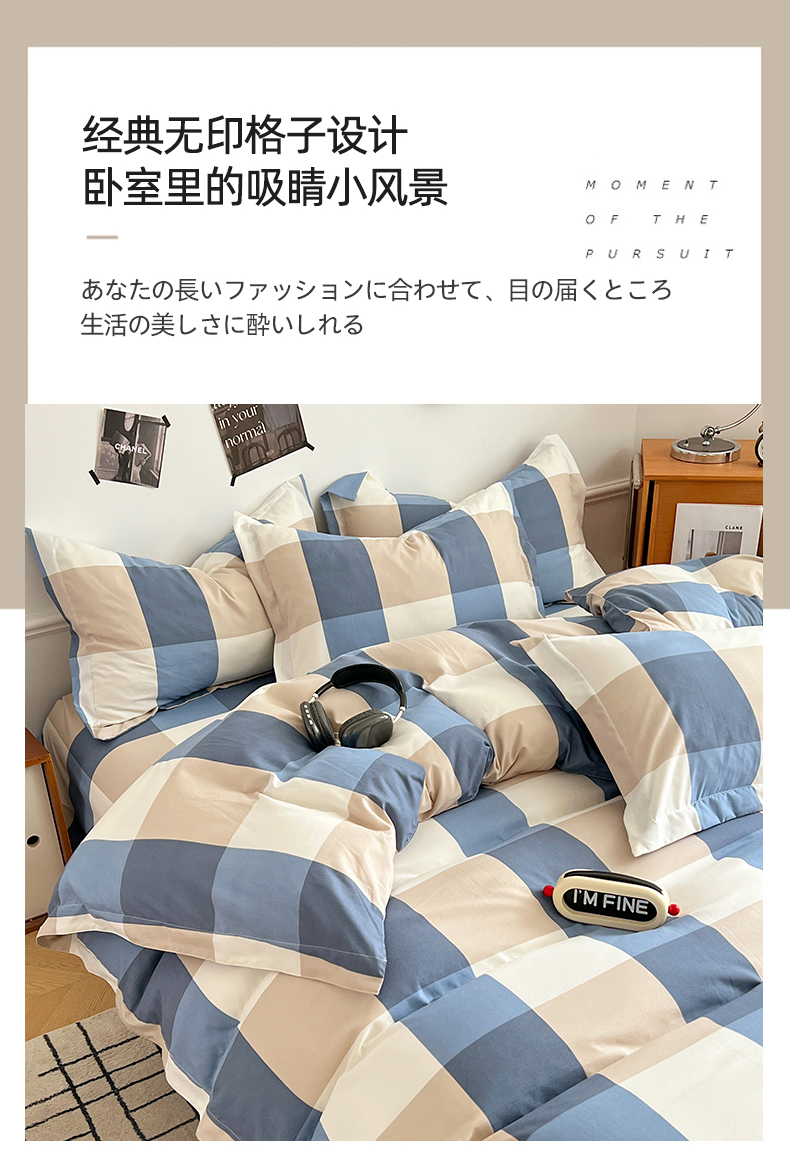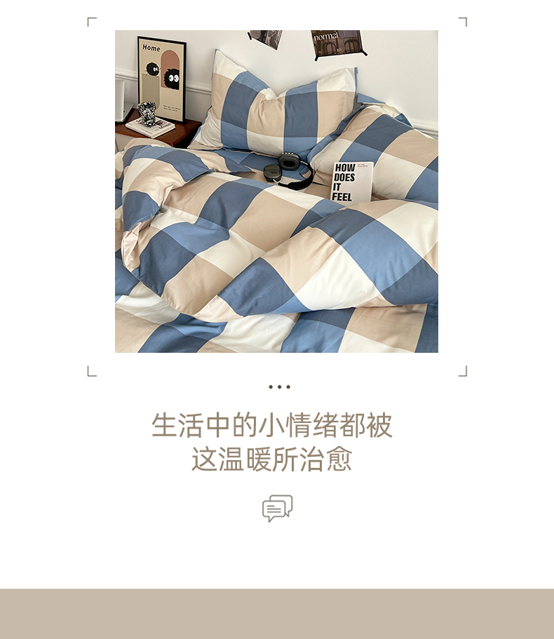 当前位置: 91家纺网 > 商品网购 > 床品套件 > 四件套 > 普通磨毛四件套 > 罗菲尼酒店用品 2025新款磨毛亲肤飞边款四件套 蓝白大格