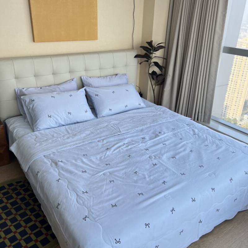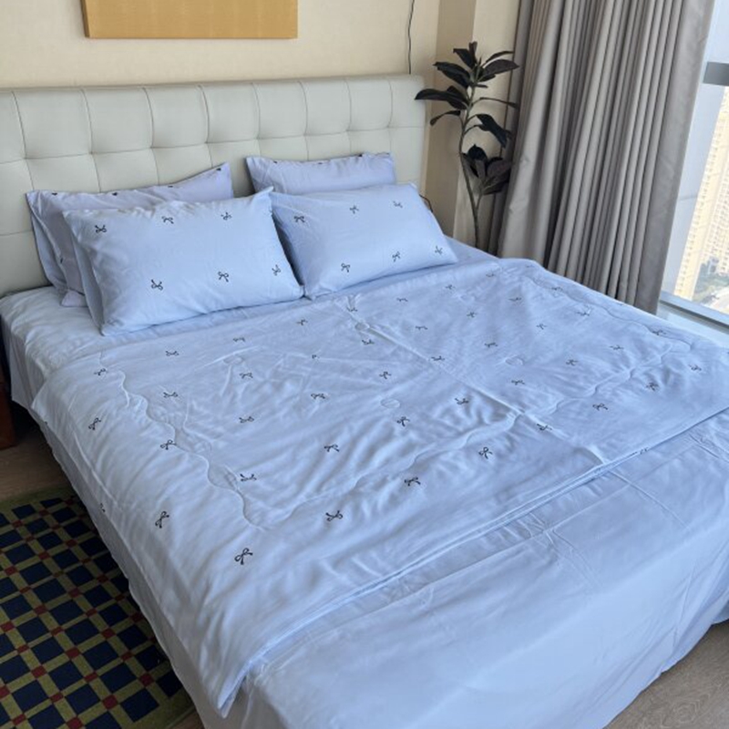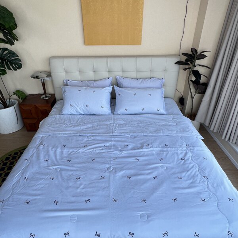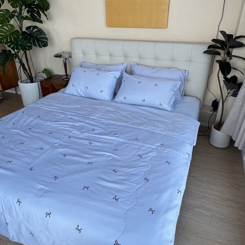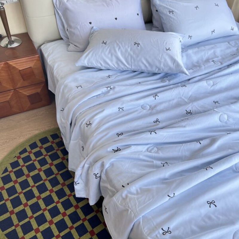 商品名称:棉生活家纺 2025新款ins小清新水洗冰丝夏被四件套 心动蓝莓 兰