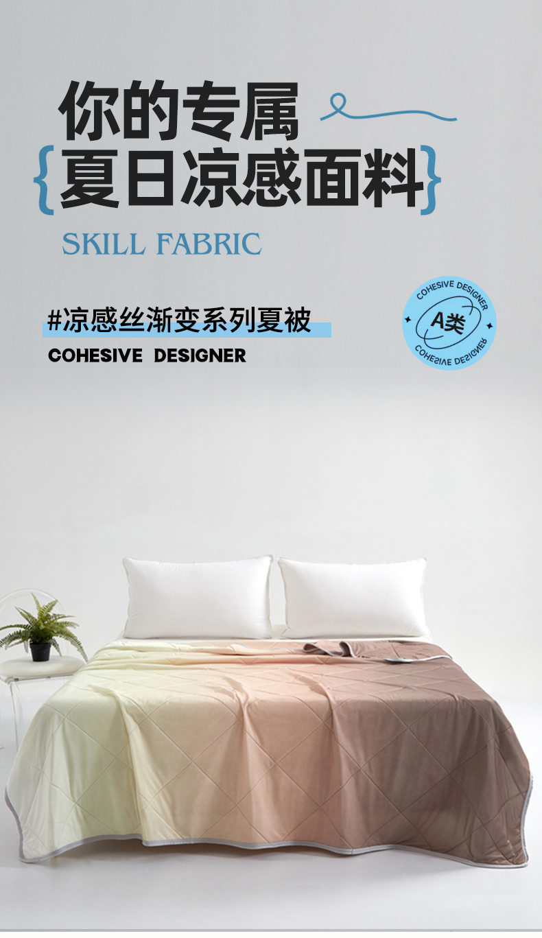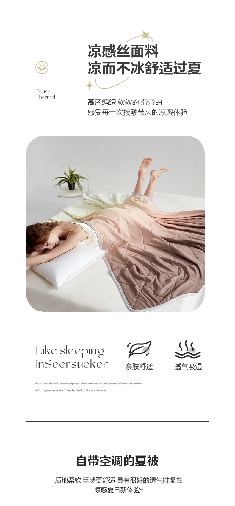 (总)安琪家纺 【跨境希音temu】2025新款凉感丝渐变系列夏凉被,宝石蓝,高级灰,焦糖色,孔雀蓝,米蓝色