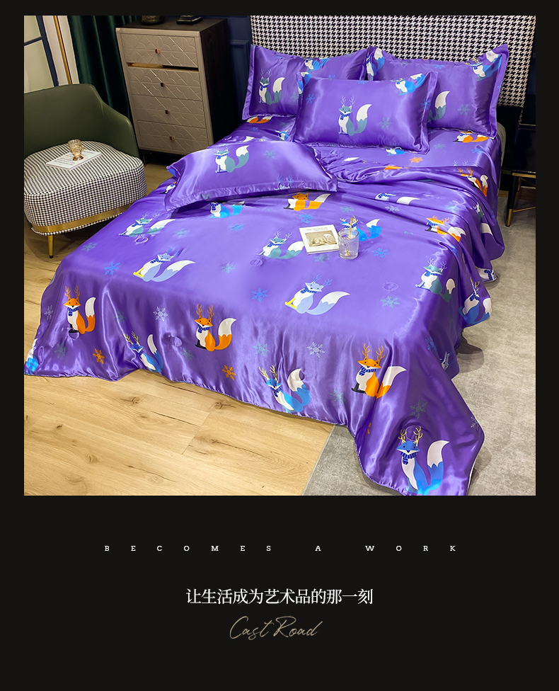 当前位置: 91家纺网 > 商品网购 > 床品套件 > 四件套 > 夏被四件套 > 经年 2025新款丝绸印花夏被四件套 猫星人-夏被