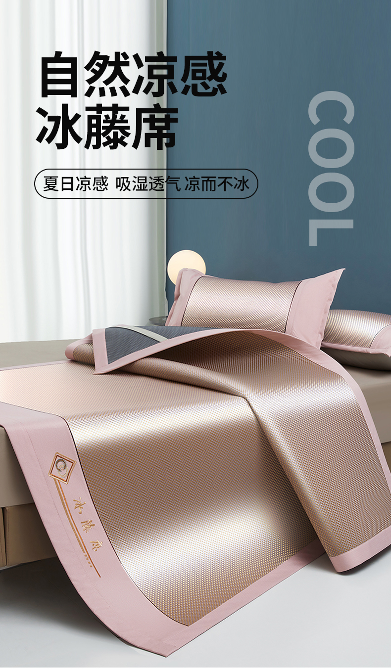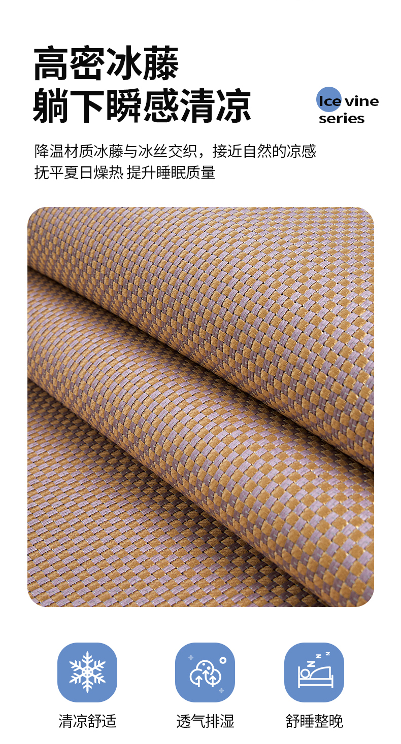 (总)琪琪阁 2026新款冰藤三明治凉席,小米花-灰色,小米花-金色,小米花-绿色,星星-浅灰,星星-深咖,星星-水绿,星星-雾蓝,星星-樱粉